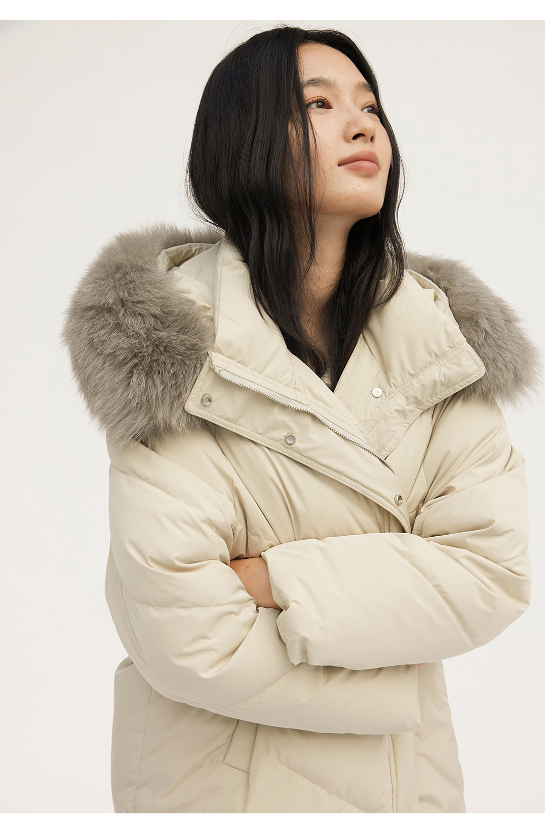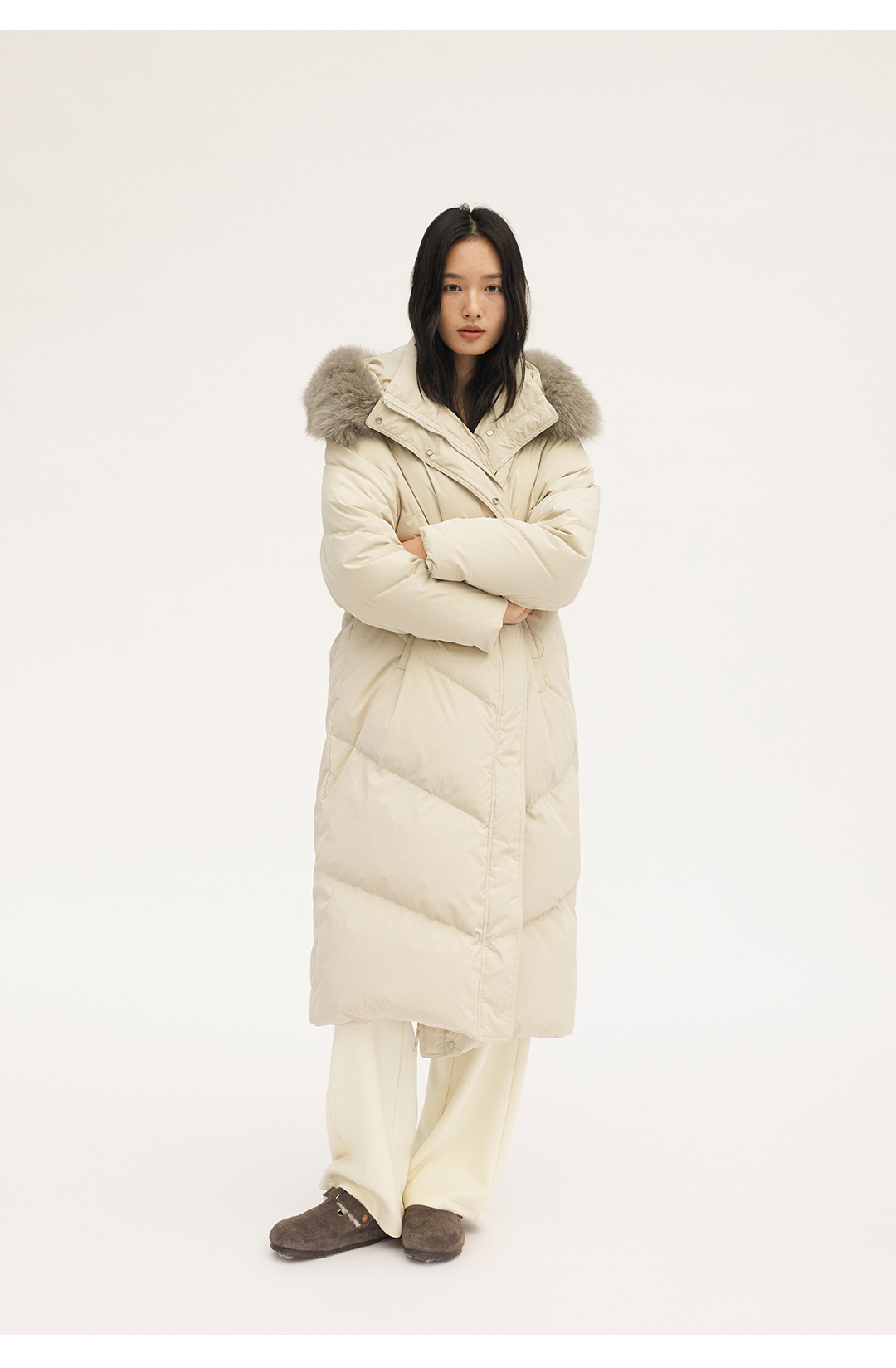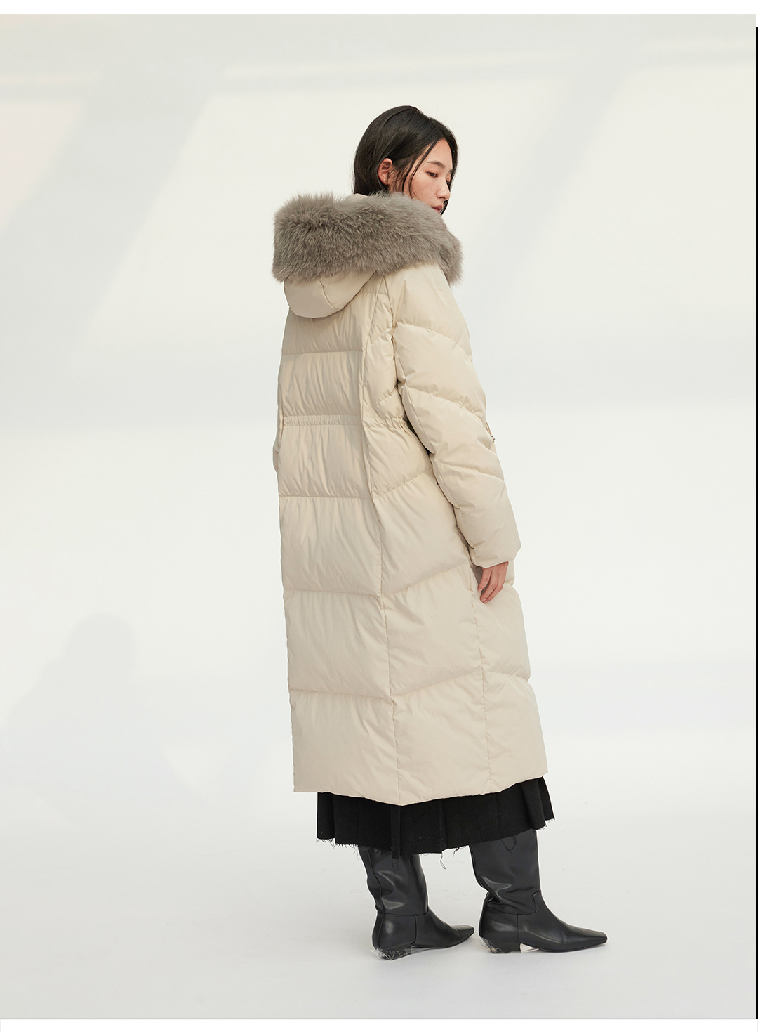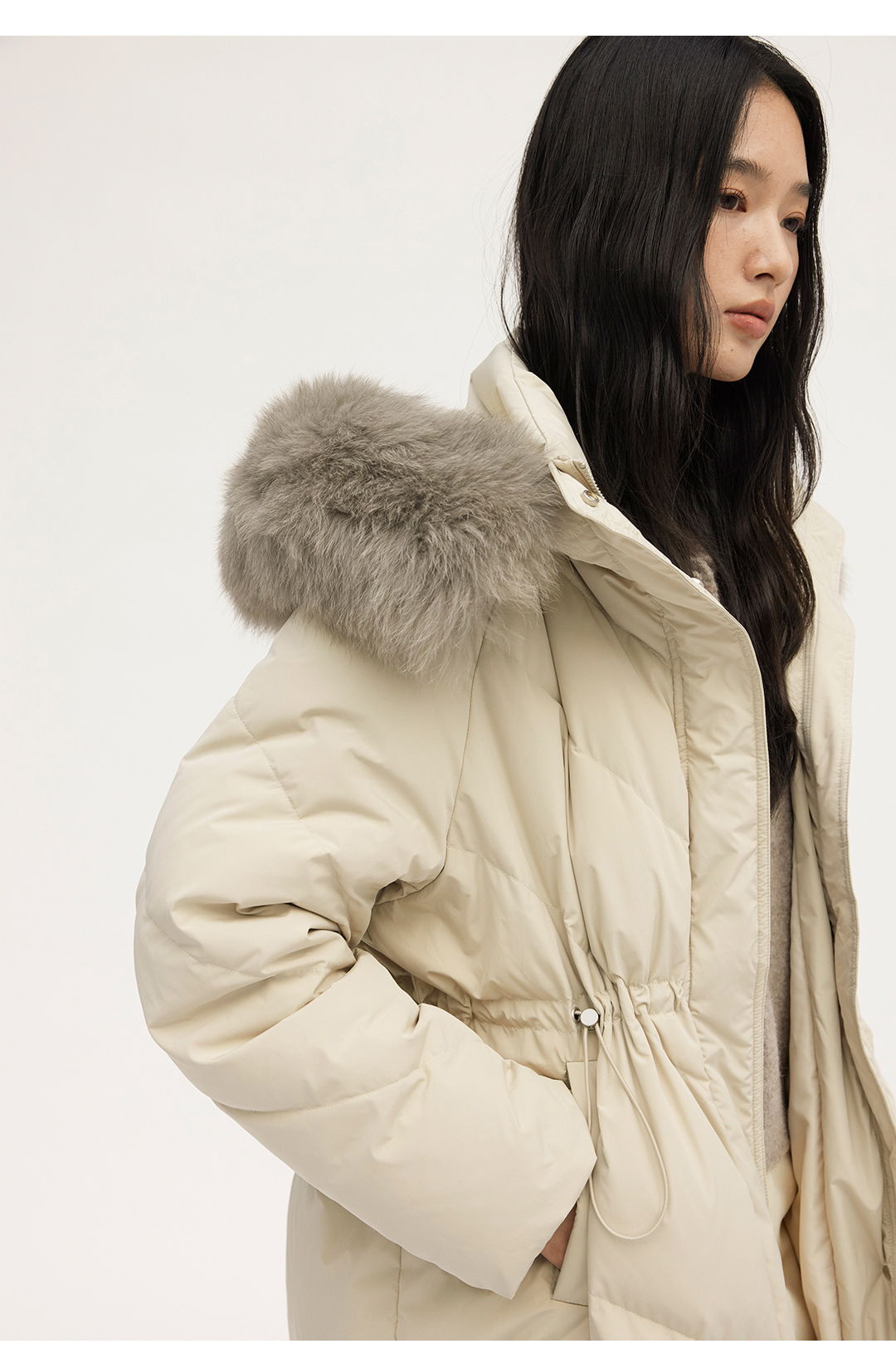 HeyDress毛领长款腰抽绳加厚羽绒服