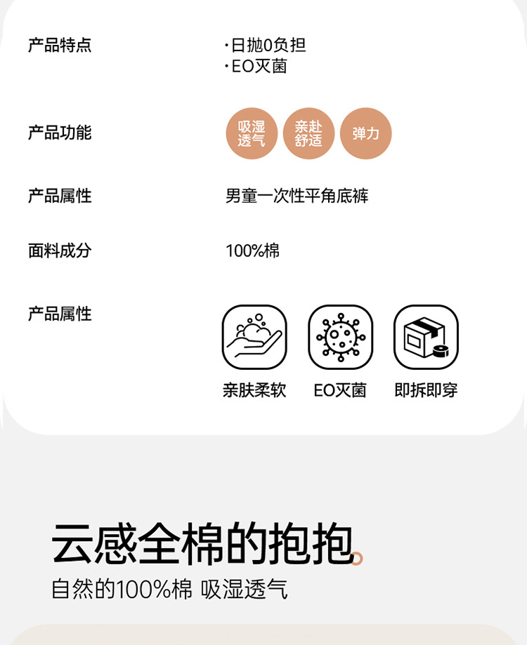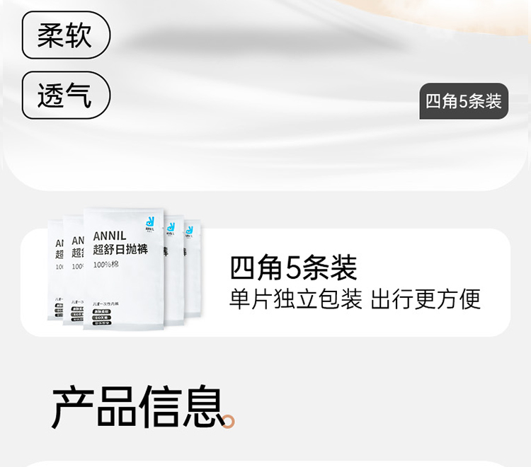【旅行必备】【5条装】【100%纯棉EO灭菌】一次性内裤纯棉便携免洗日抛EO灭菌平角底裤五件装男童亲子出差外出旅游