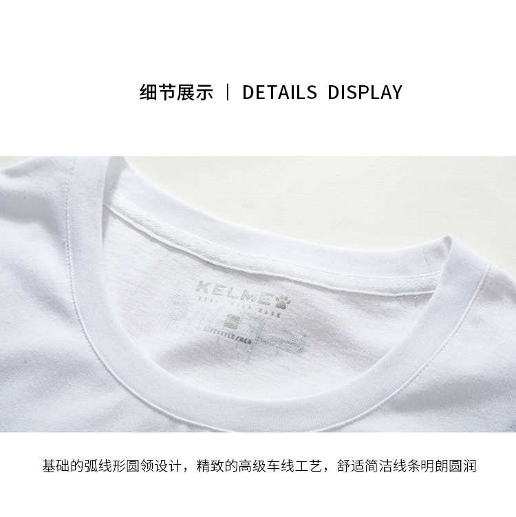 KELME 卡尔美短袖男新款夏季潮流衣服白色圆领纯棉短袖t恤 男