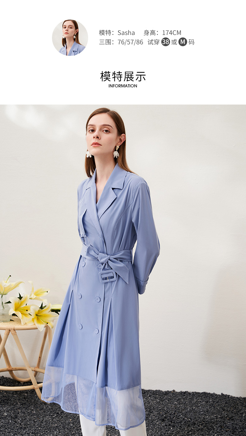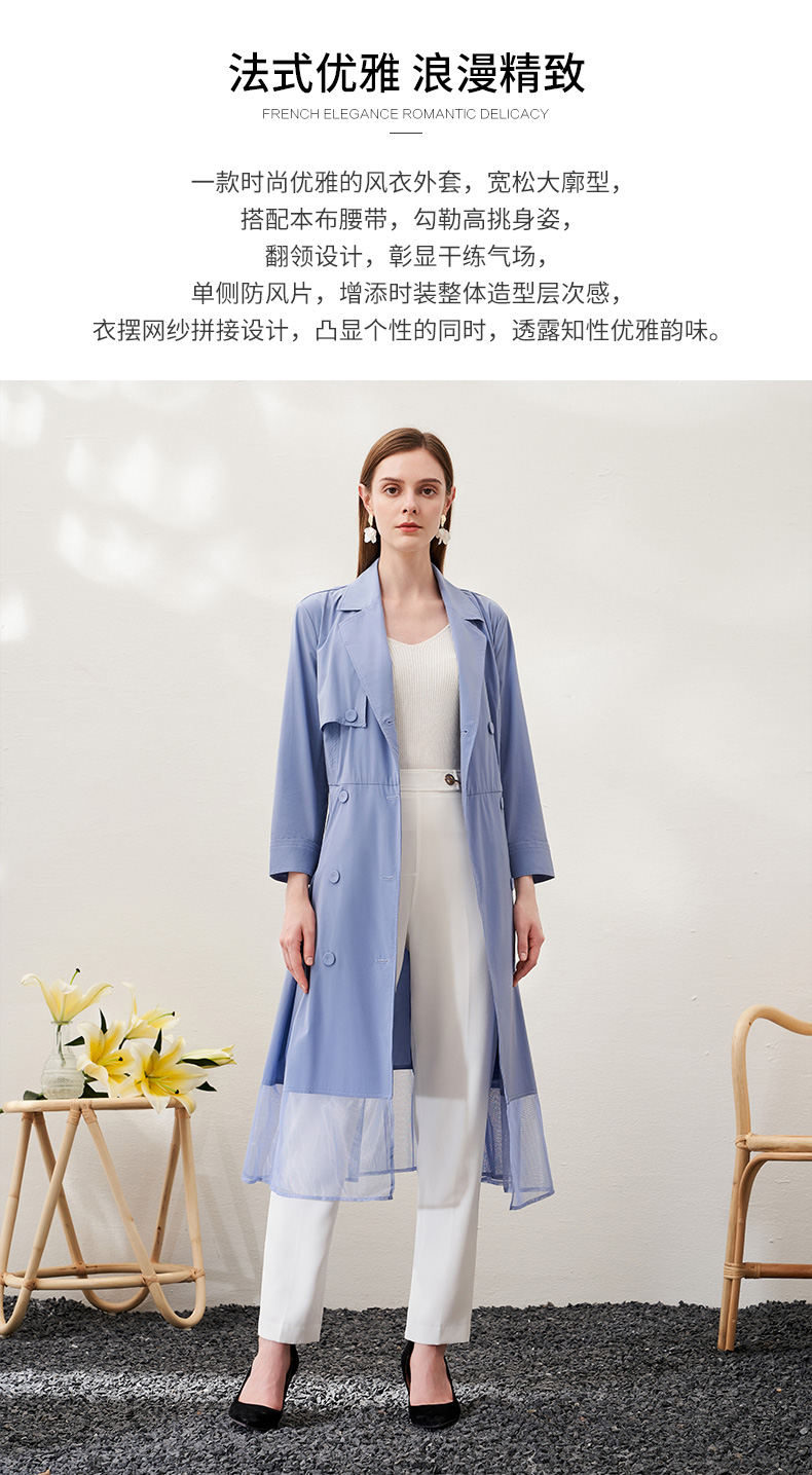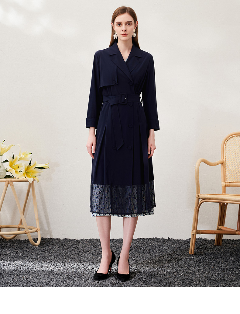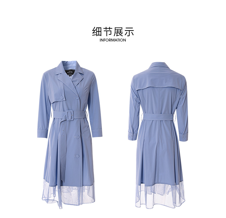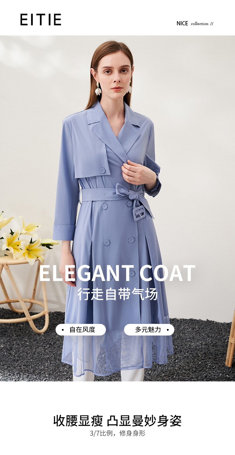 EITIE爱特爱春季新款优雅修身显瘦蕾丝拼接风衣女6904605