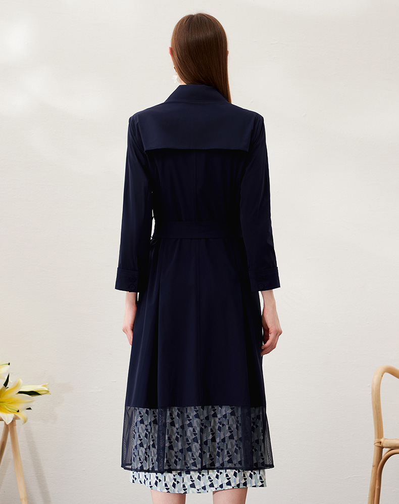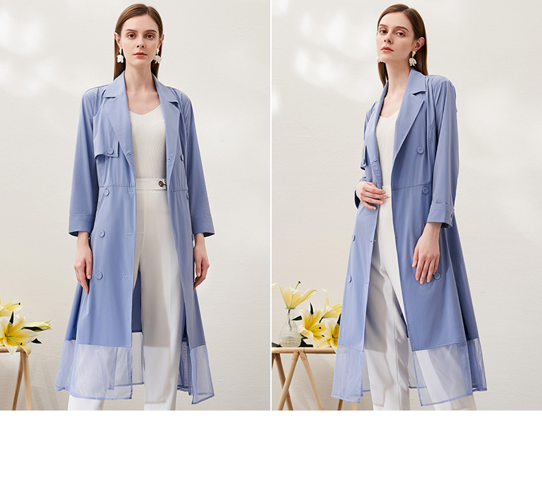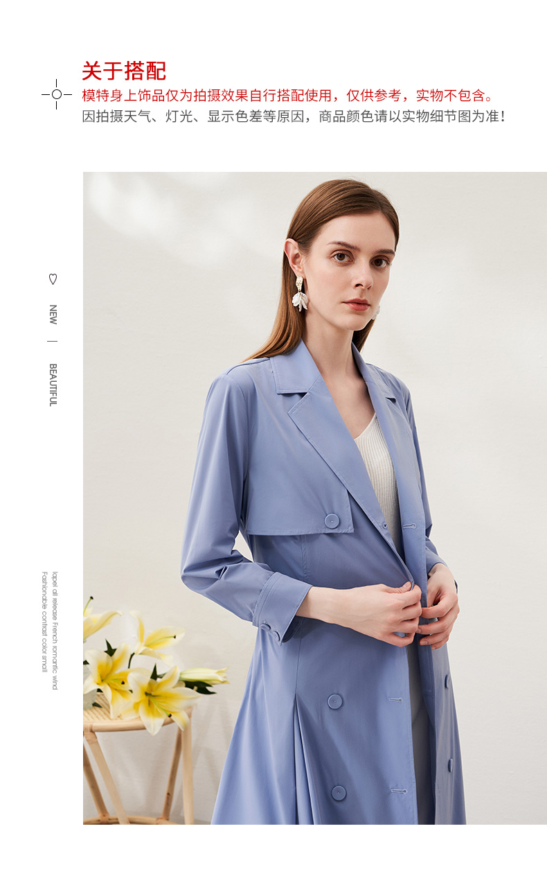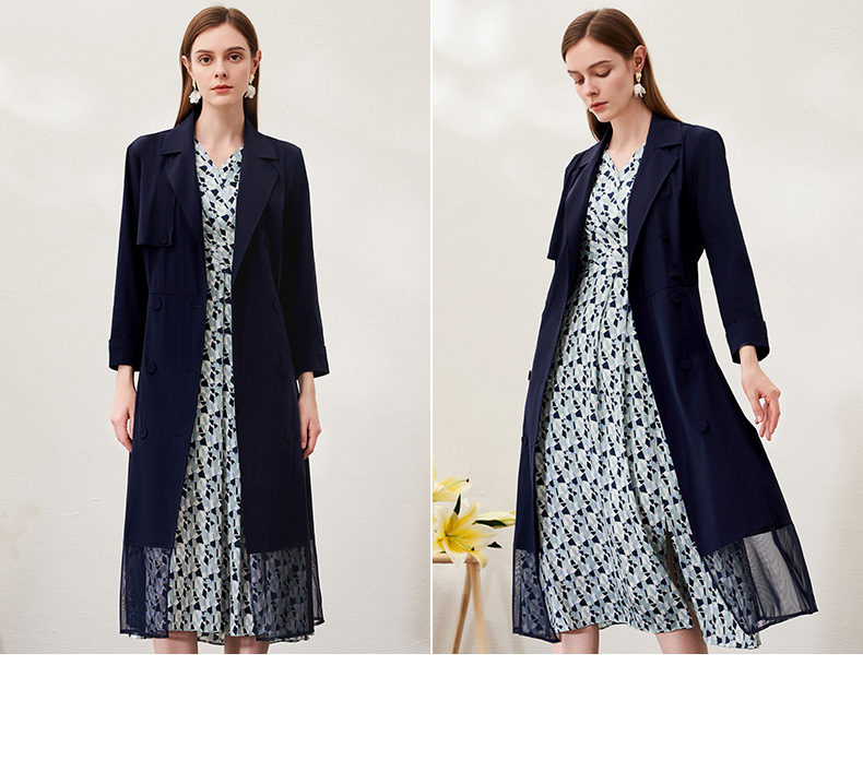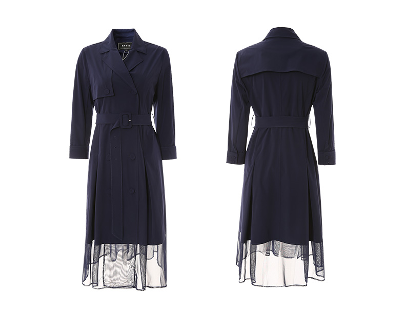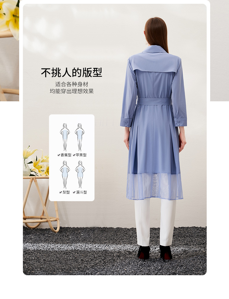 EITIE爱特爱春季新款优雅修身显瘦蕾丝拼接风衣女6904605