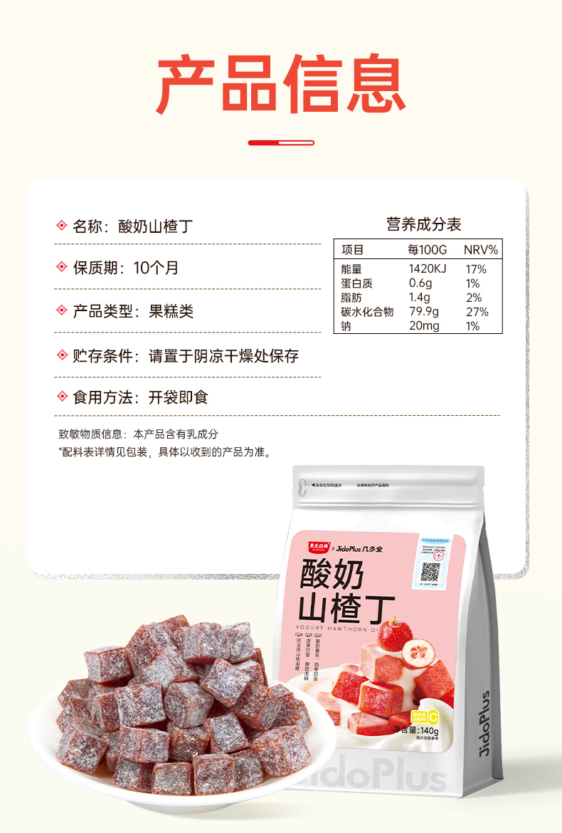 【鲜食新品】黑色经典X几多全酸奶山楂丁 140g