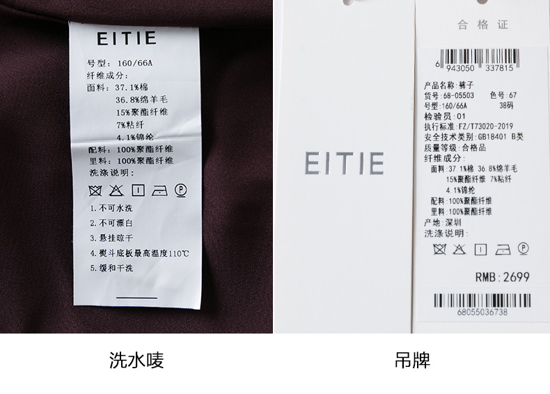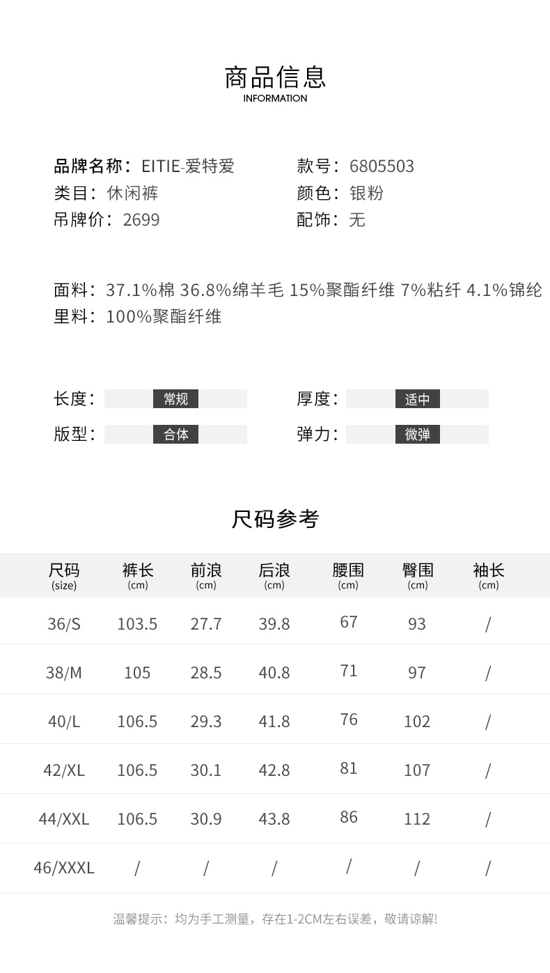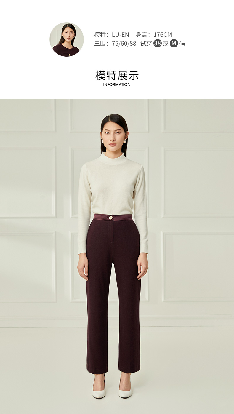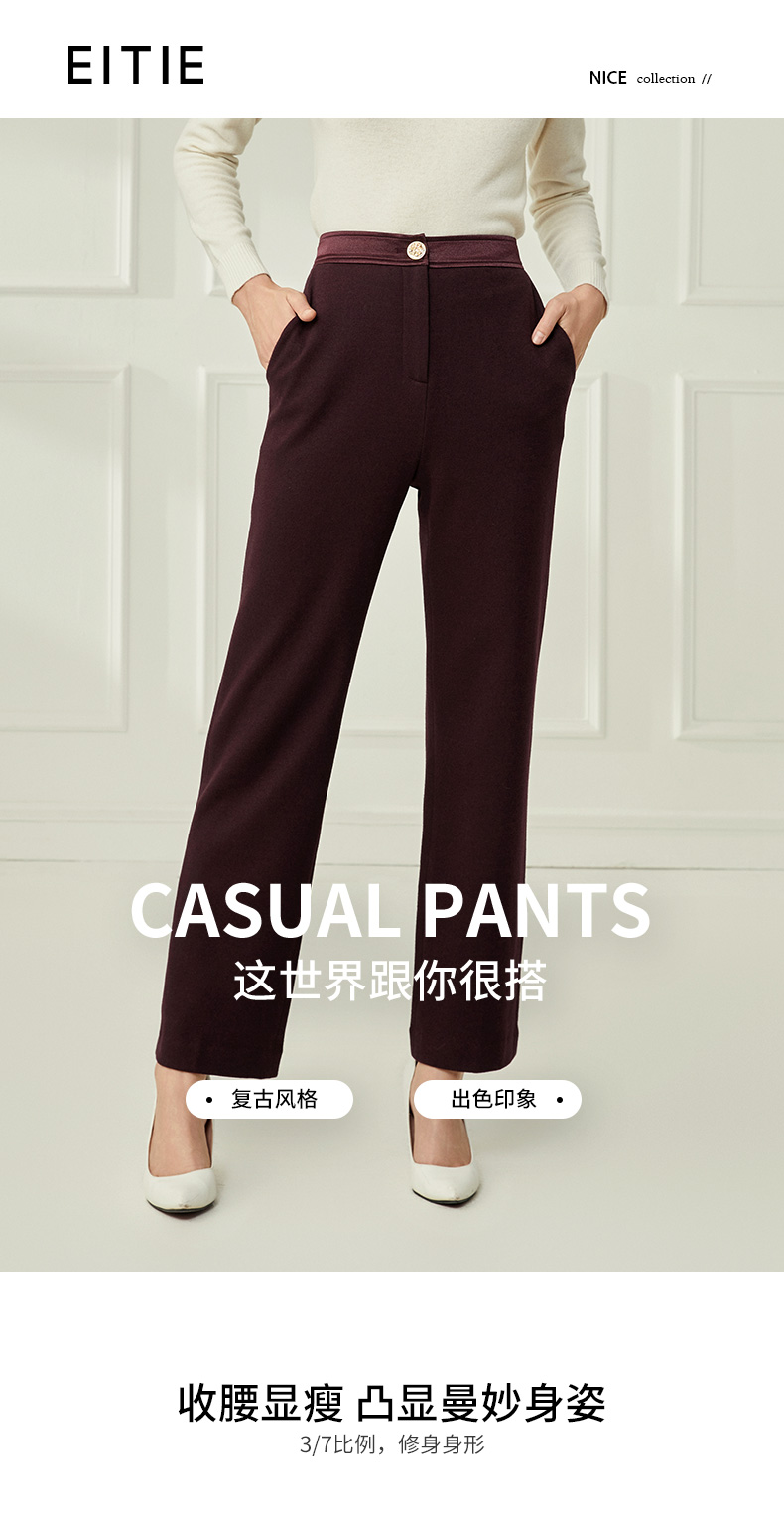 EITIE爱特爱冬季新款通勤职业干练时尚显瘦西装裤直筒长裤女裤子6805503
