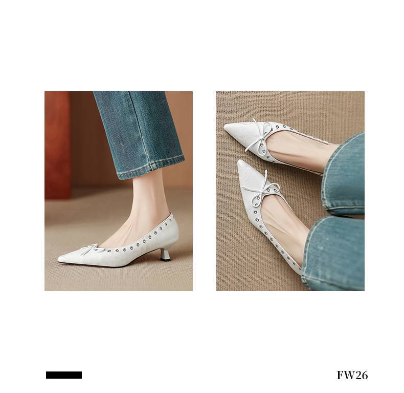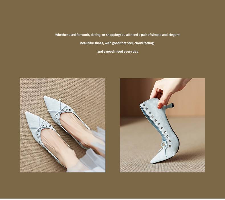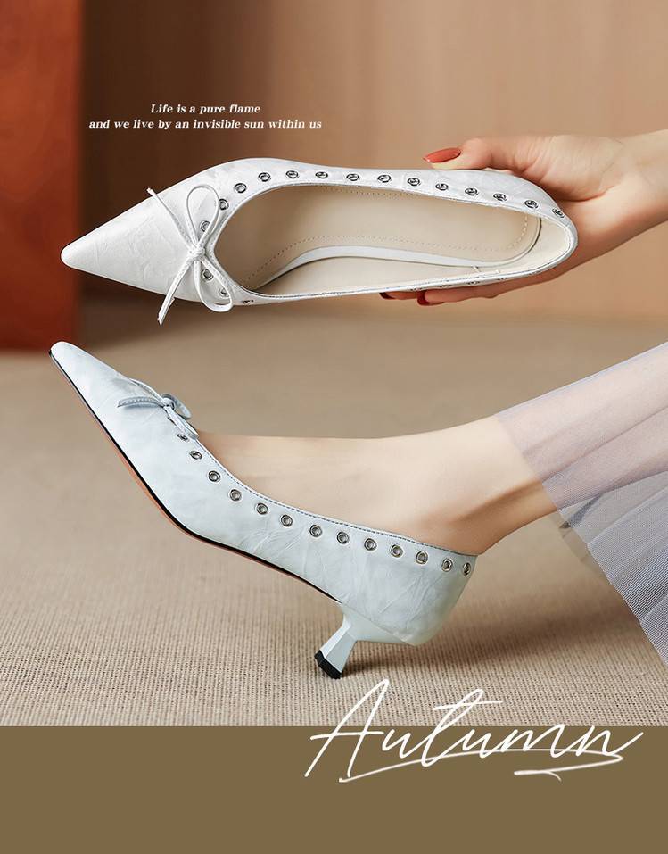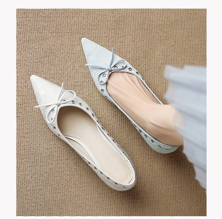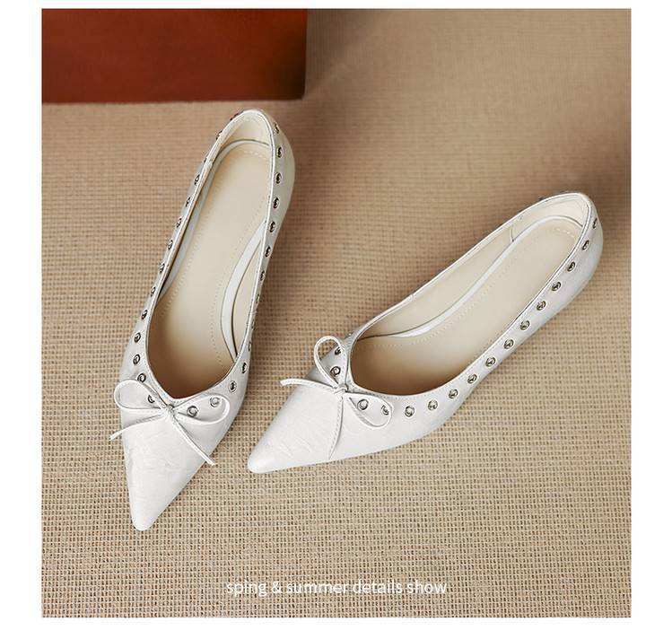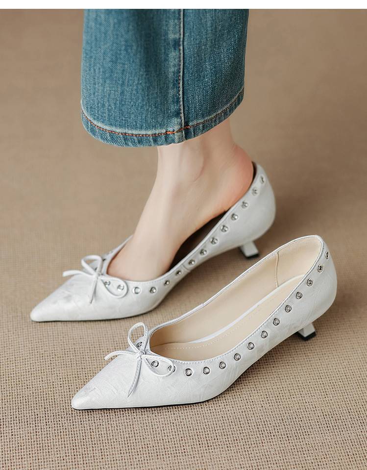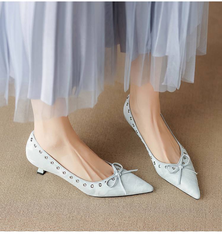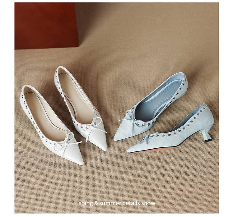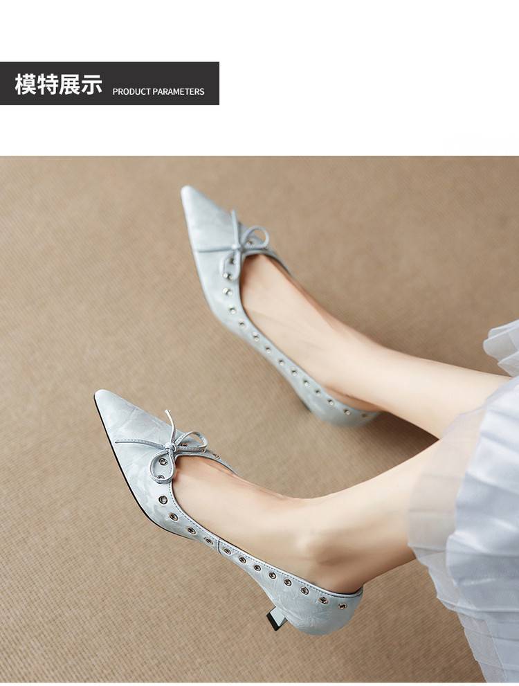 【预售5天】设计感小众铆钉浅口单鞋法式通勤蝴蝶结显瘦尖头小跟鞋DB&M6696