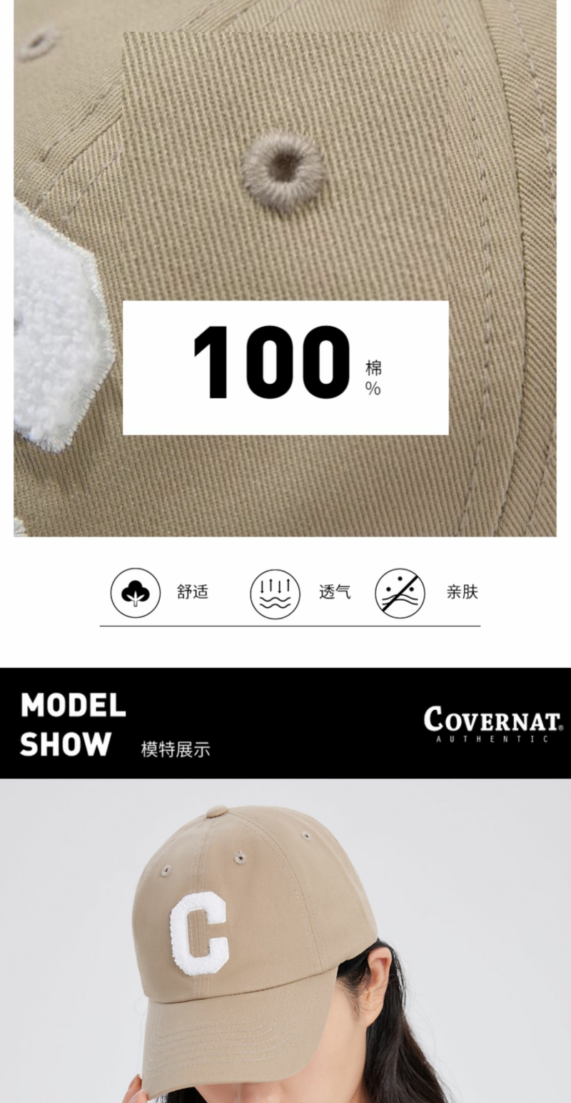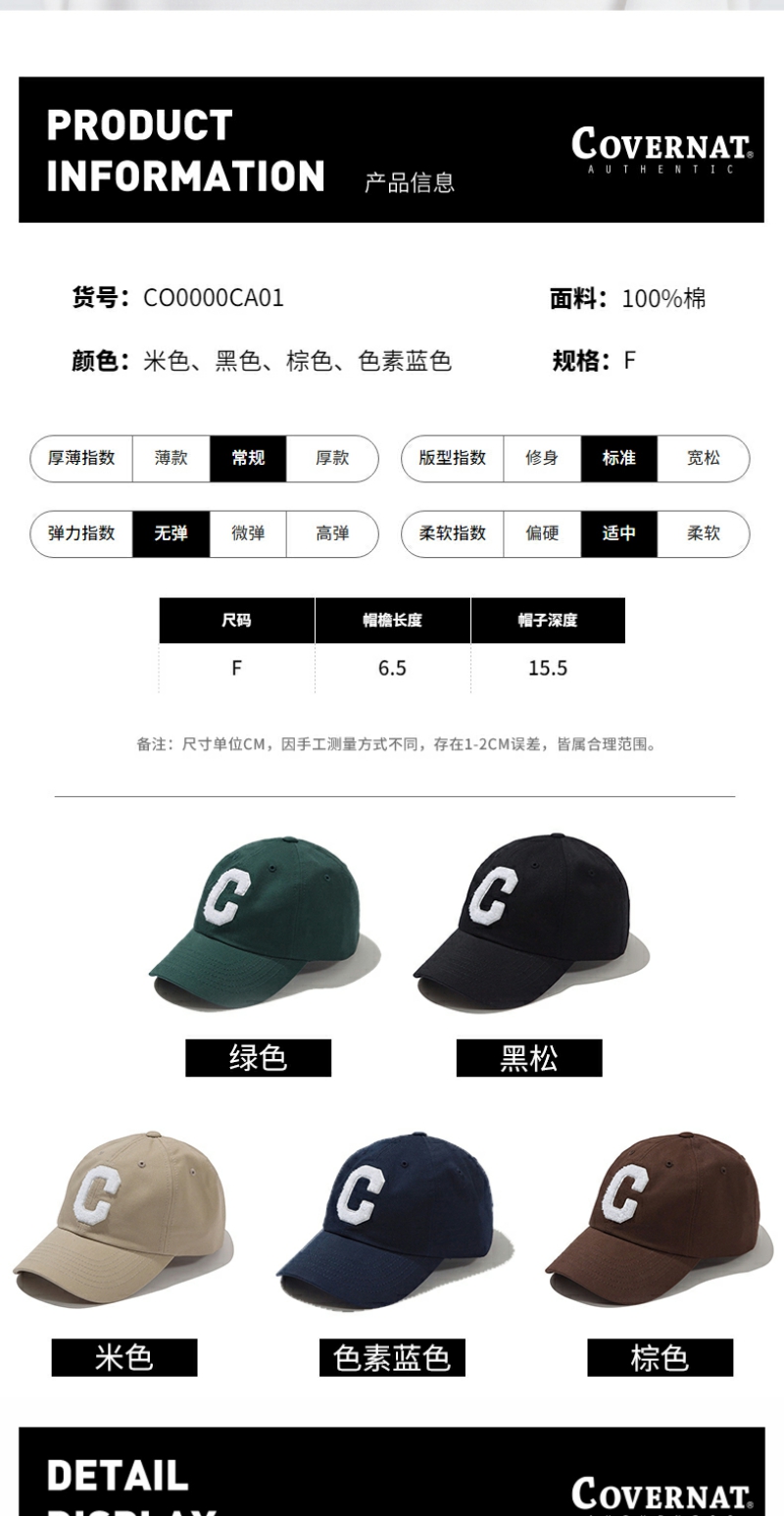 【限时秒杀】Covernat棒球帽大C标志鸭舌帽显脸小男女防晒遮阳帽CO0000CA01
