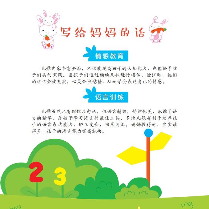 儿歌篇幅短小,易记易诵,读来朗朗上口,适合宝宝语言启蒙。诵读儿歌可以让宝宝认知生活中有趣的事物,感受传统文化并锻炼脸部肌肉,从而让身心得到全面发展。
