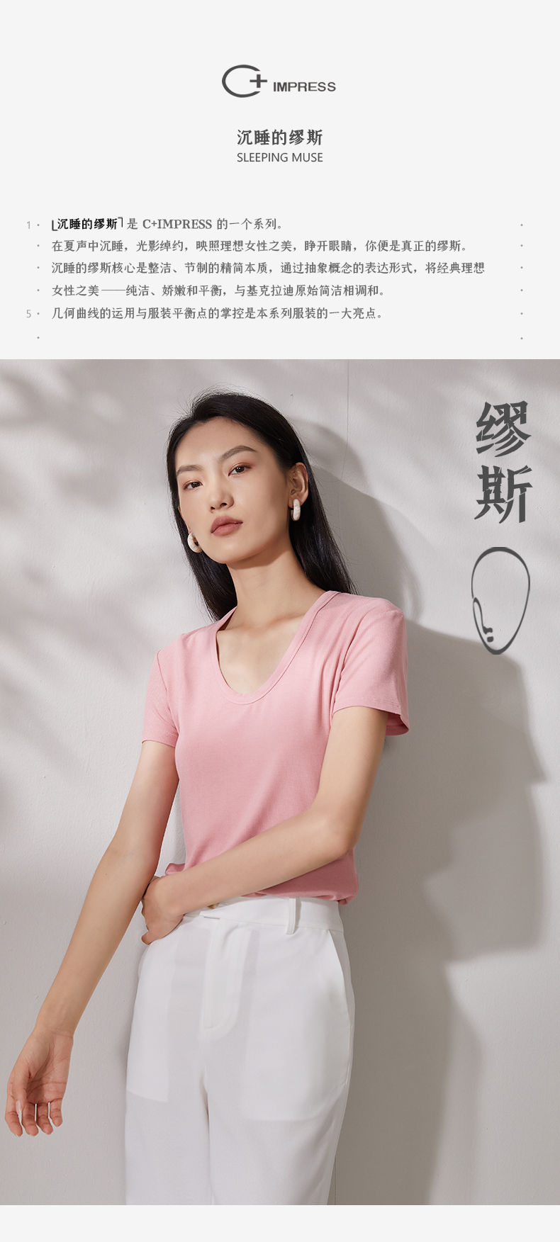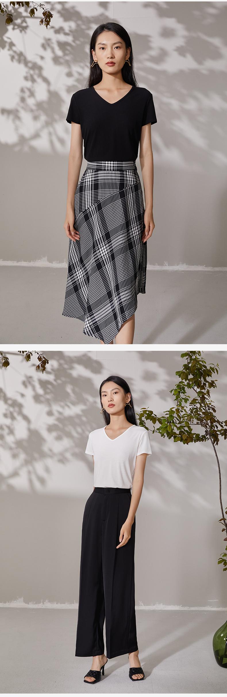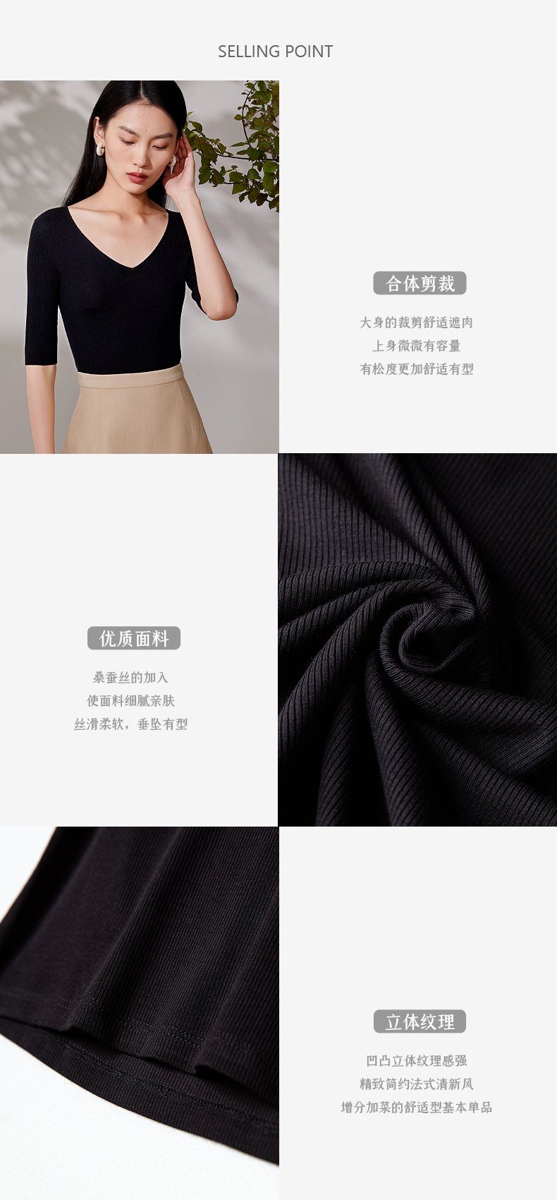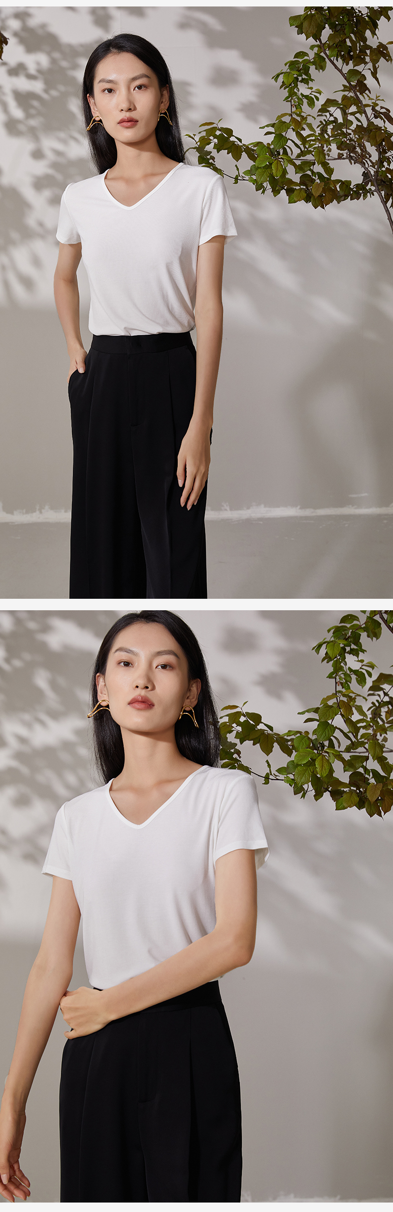 西嘉C+IMPRESS/西嘉桑蚕丝免烫 v领针织T法式修身t恤女夏2021新款T2102003