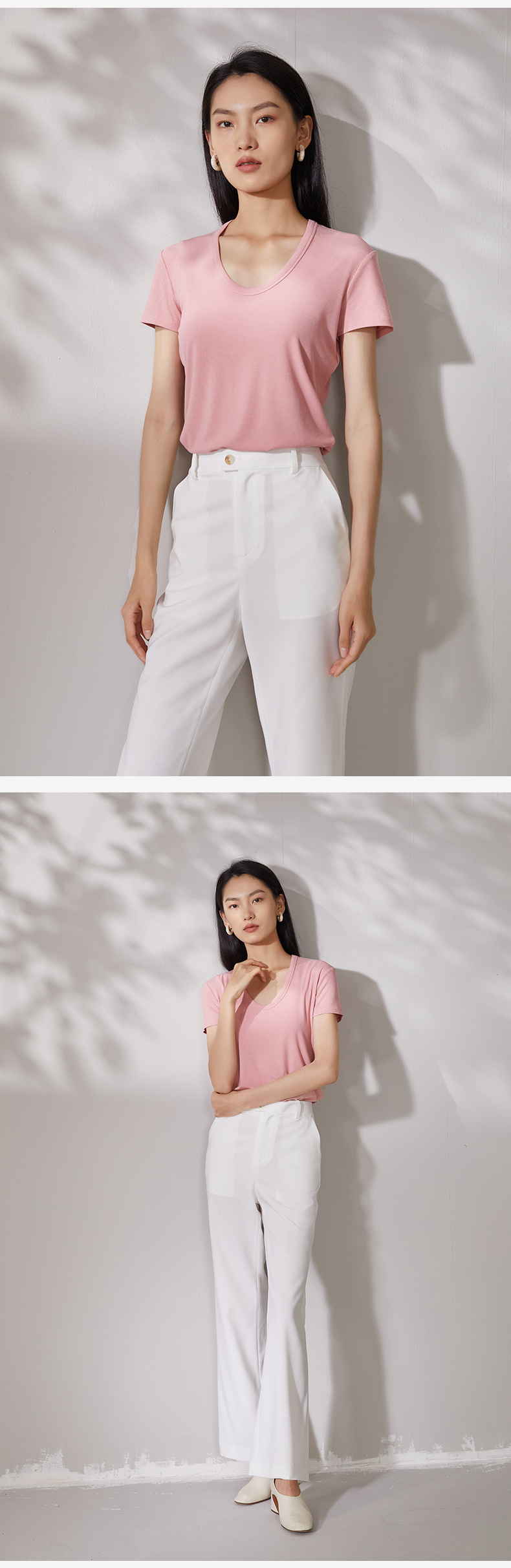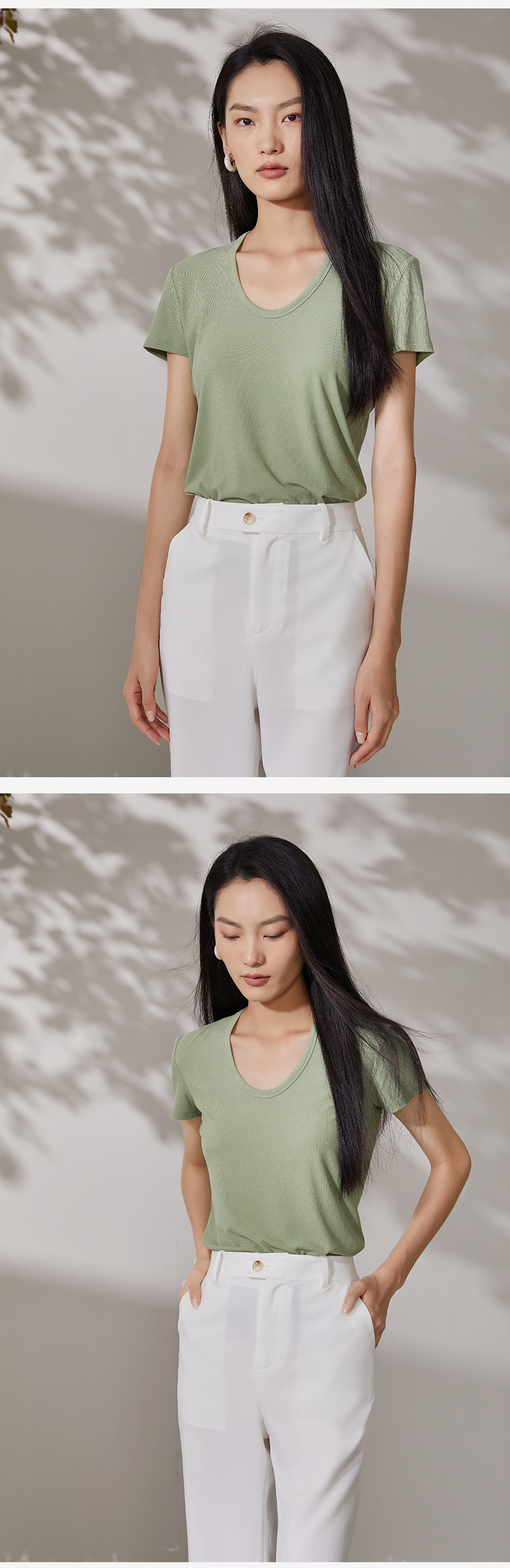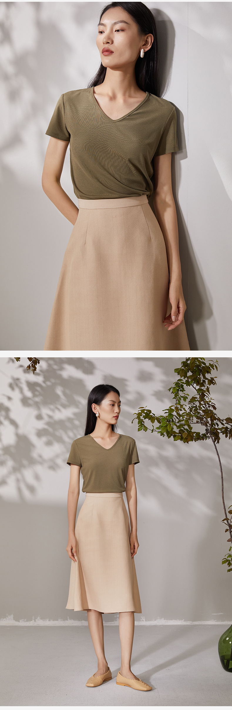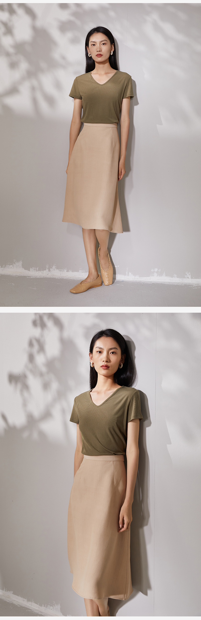 西嘉C+IMPRESS/西嘉桑蚕丝免烫 v领针织T法式修身t恤女夏2021新款T2102003