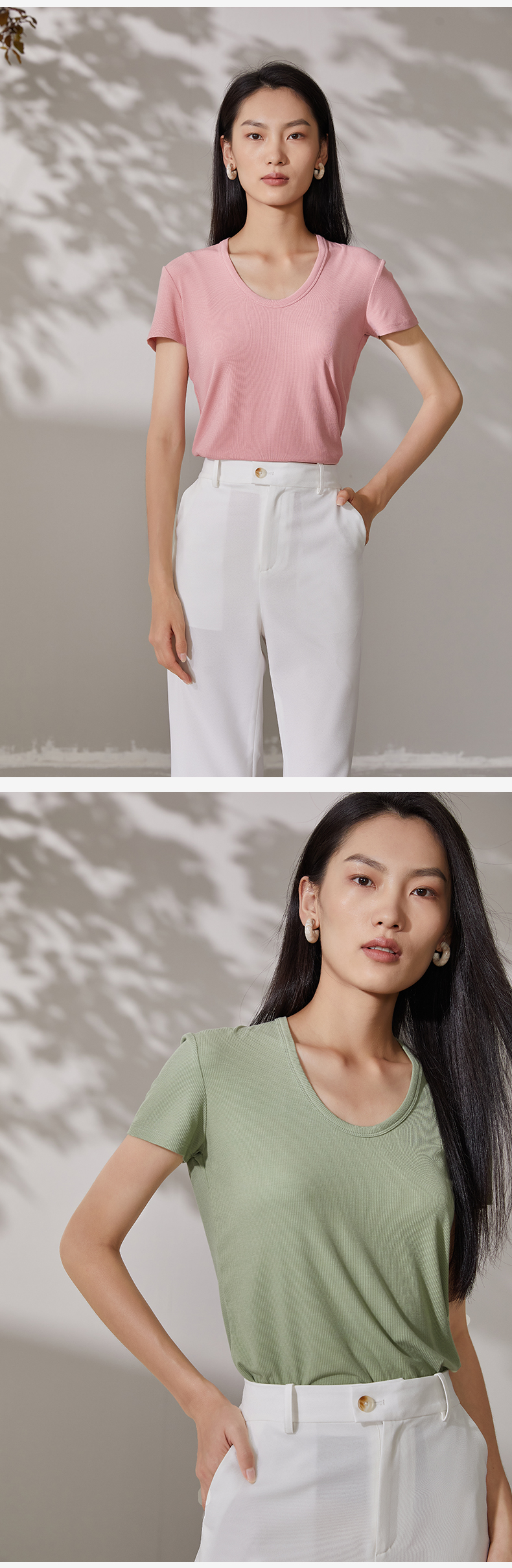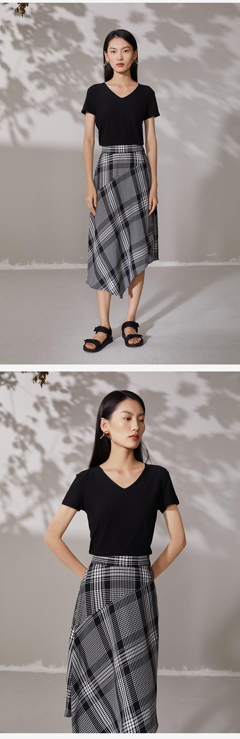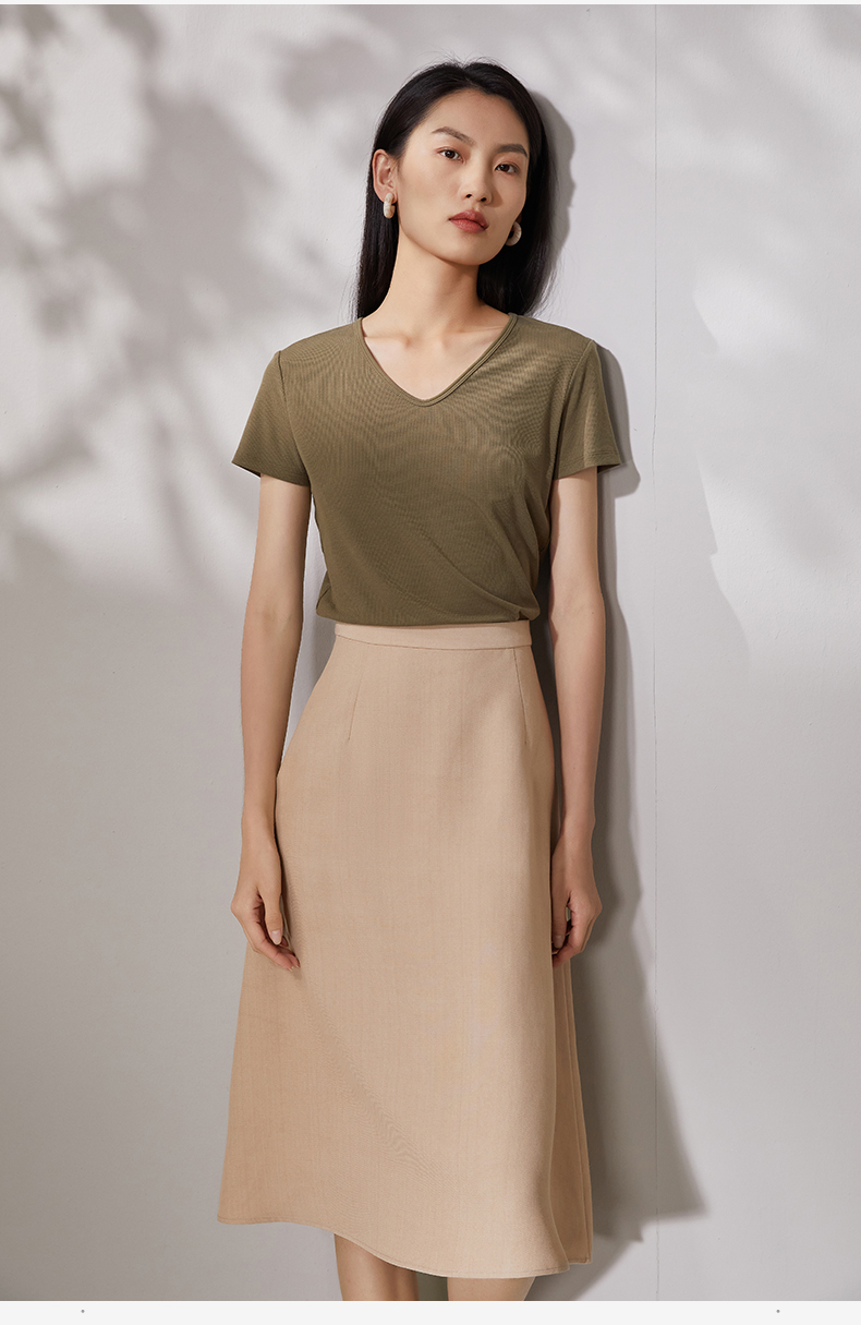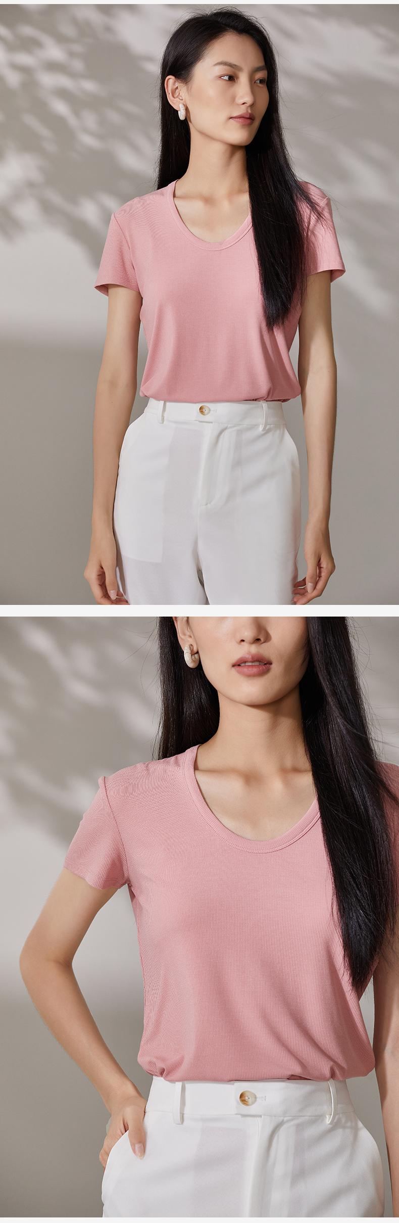 西嘉C+IMPRESS/西嘉桑蚕丝免烫 v领针织T法式修身t恤女夏2021新款T2102003