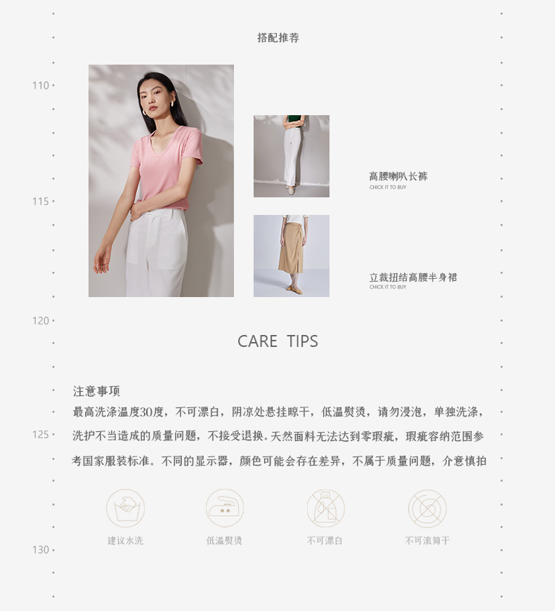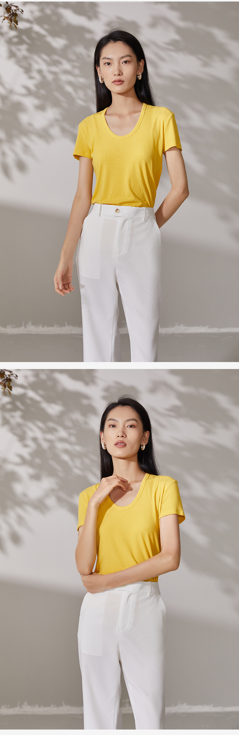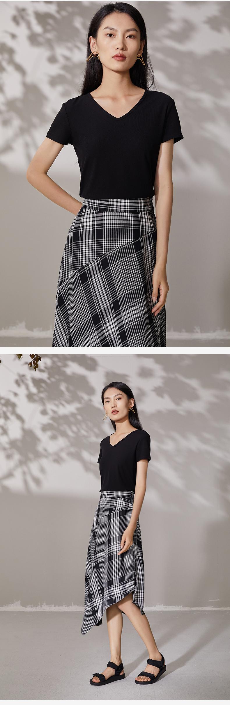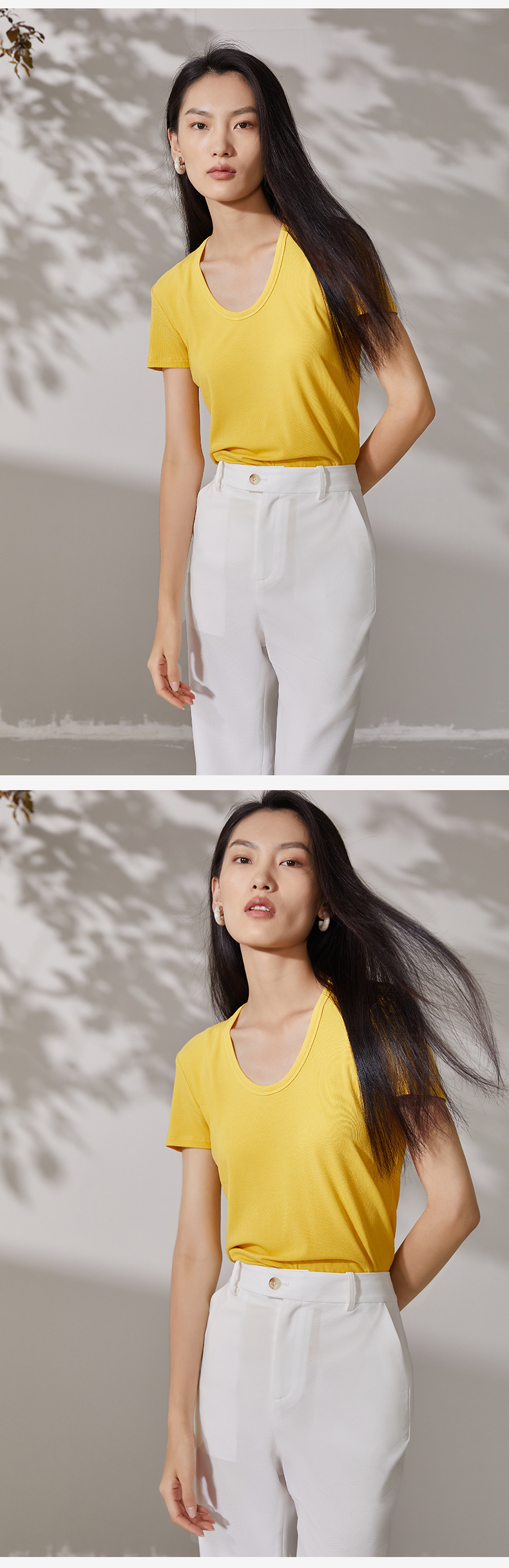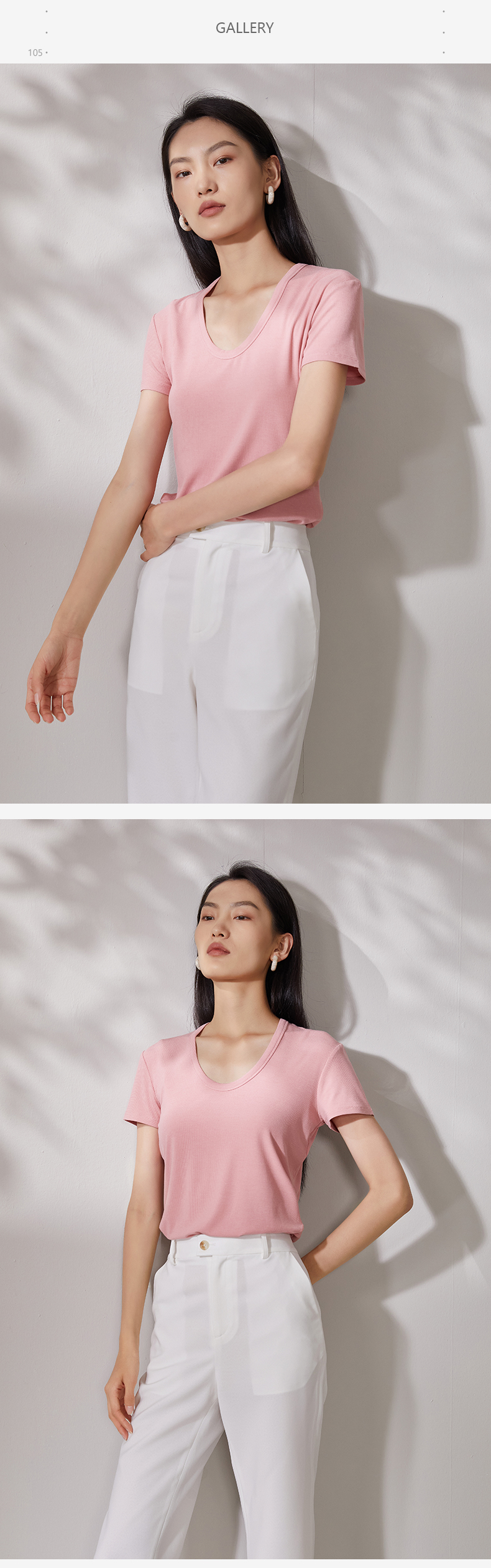 西嘉C+IMPRESS/西嘉桑蚕丝免烫 v领针织T法式修身t恤女夏2021新款T2102003