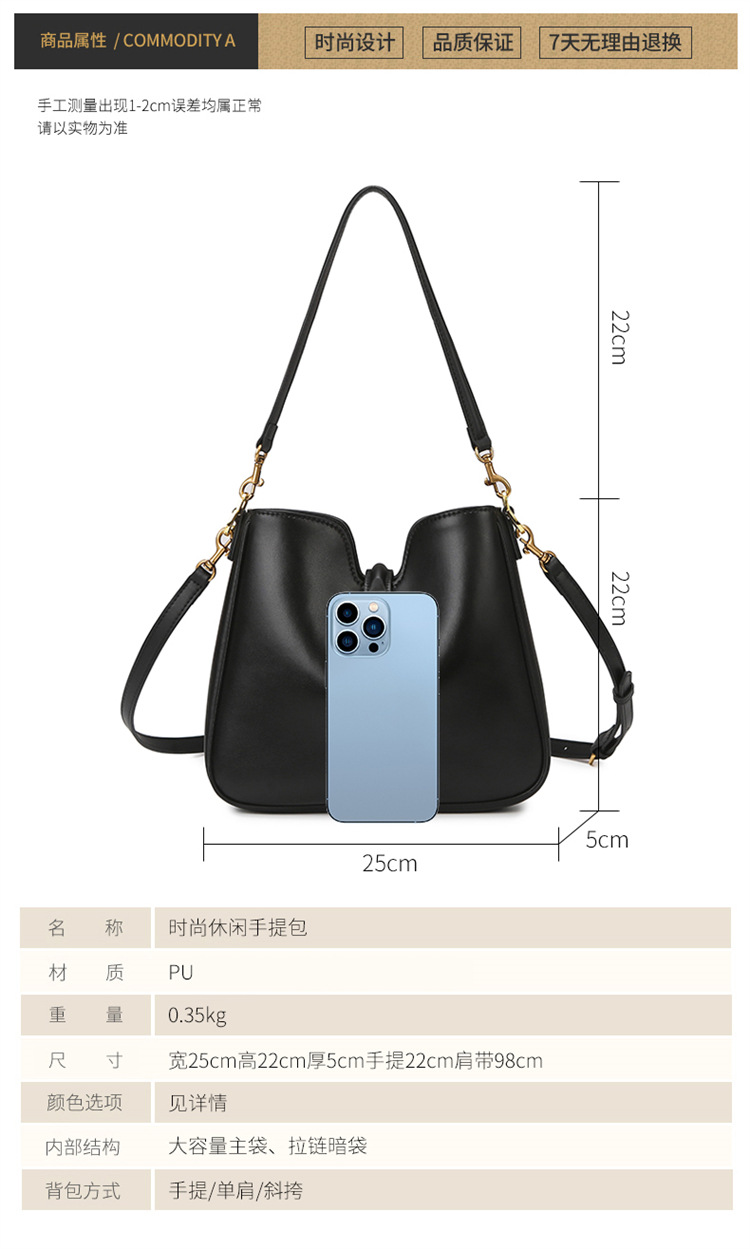 温馨提示:需要保留原包装不能损坏包包,不能影响二次销售,退回不可以发到付,拒收顺丰