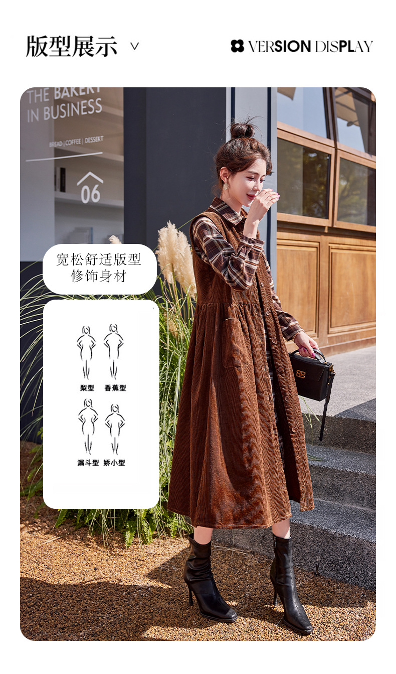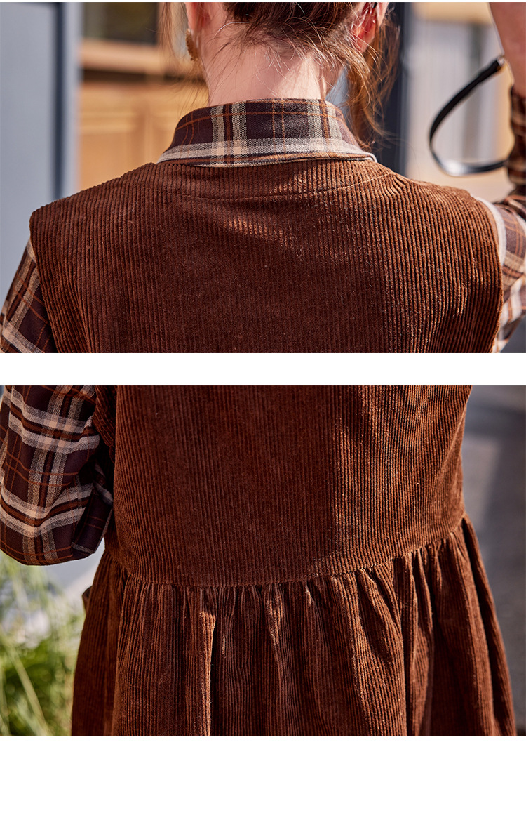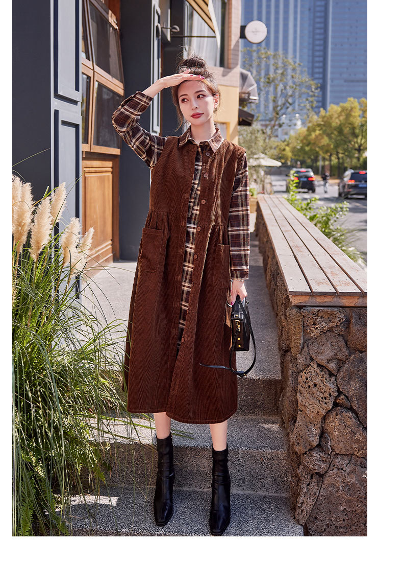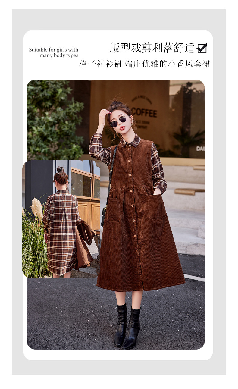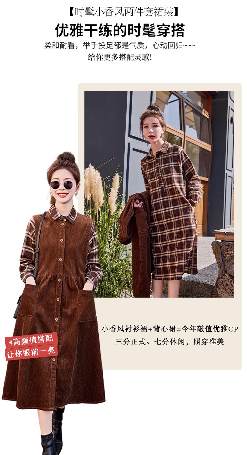 美拉德灯芯绒马甲连衣裙套装女2025年春季新款格子时尚高档两件套