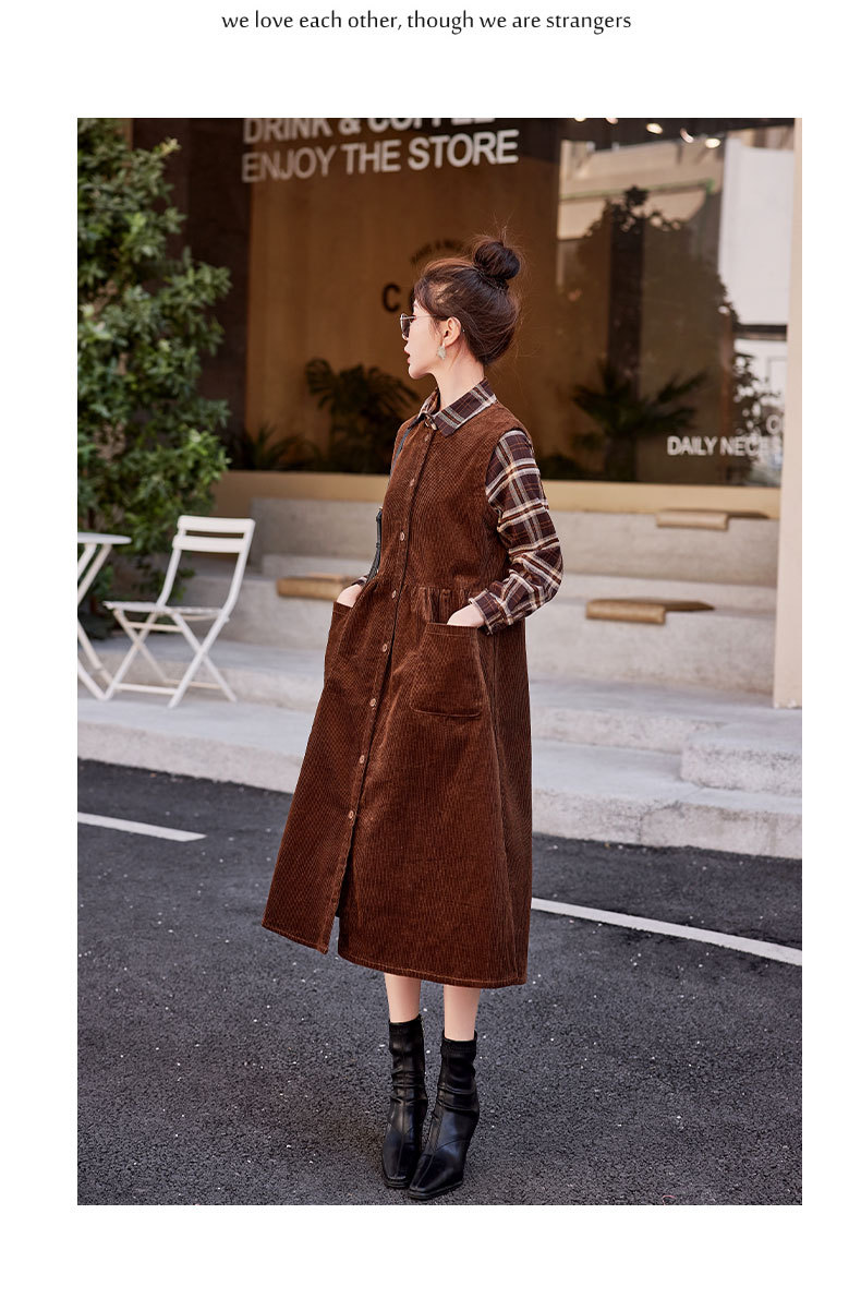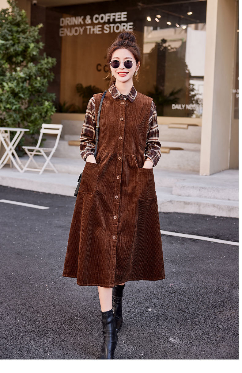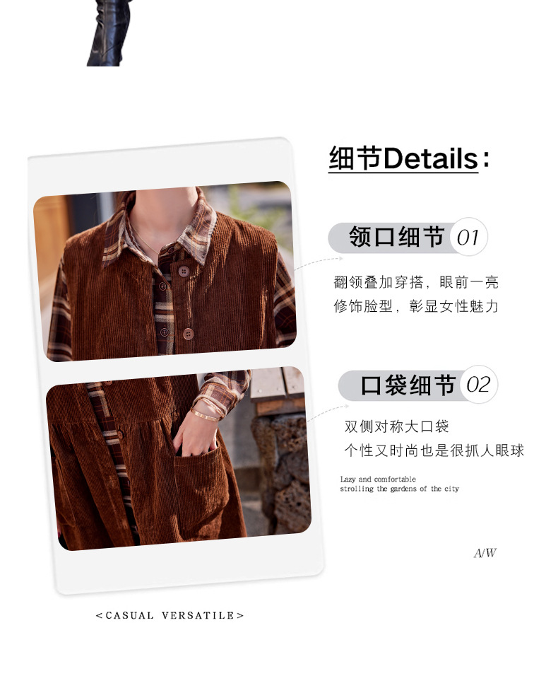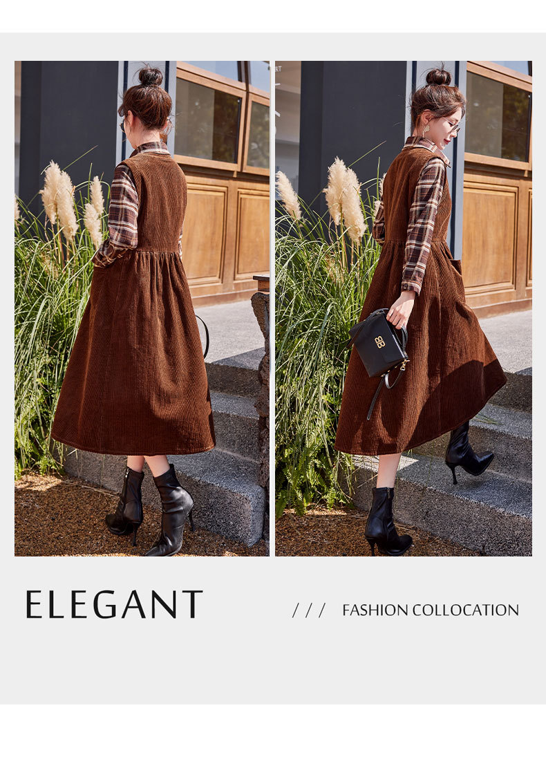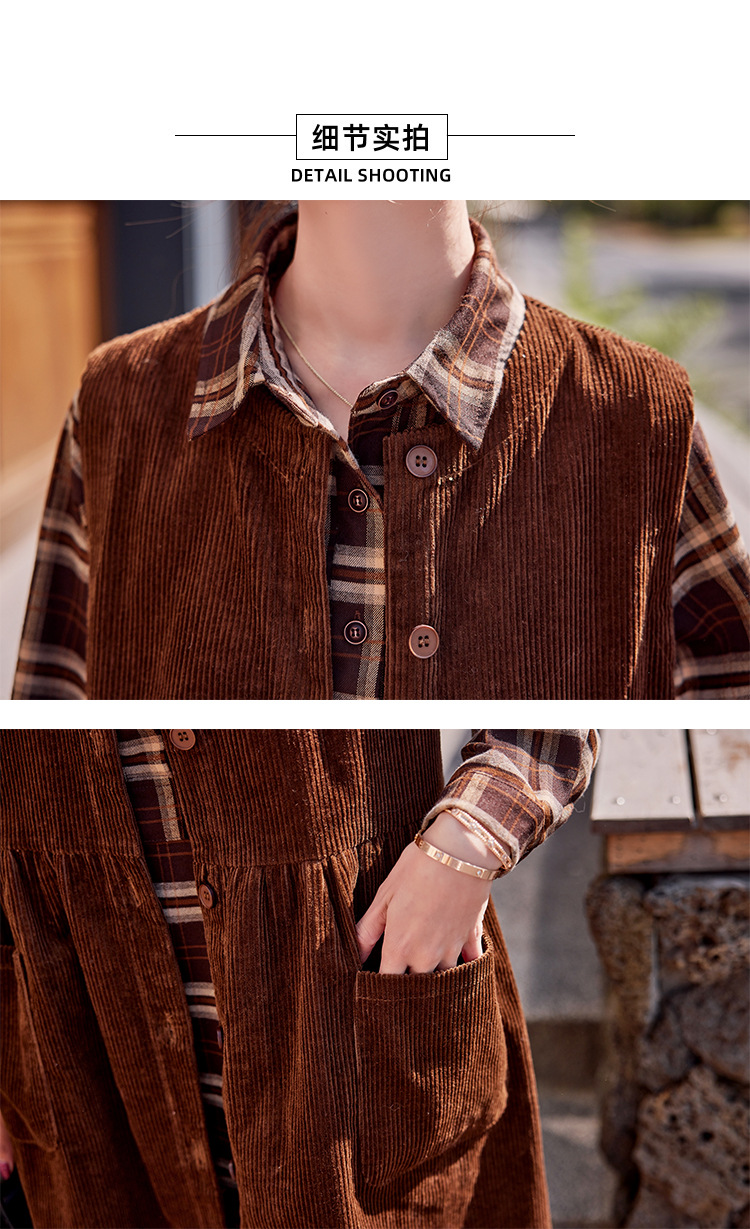 美拉德灯芯绒马甲连衣裙套装女2025年春季新款格子时尚高档两件套