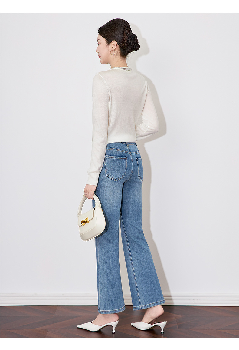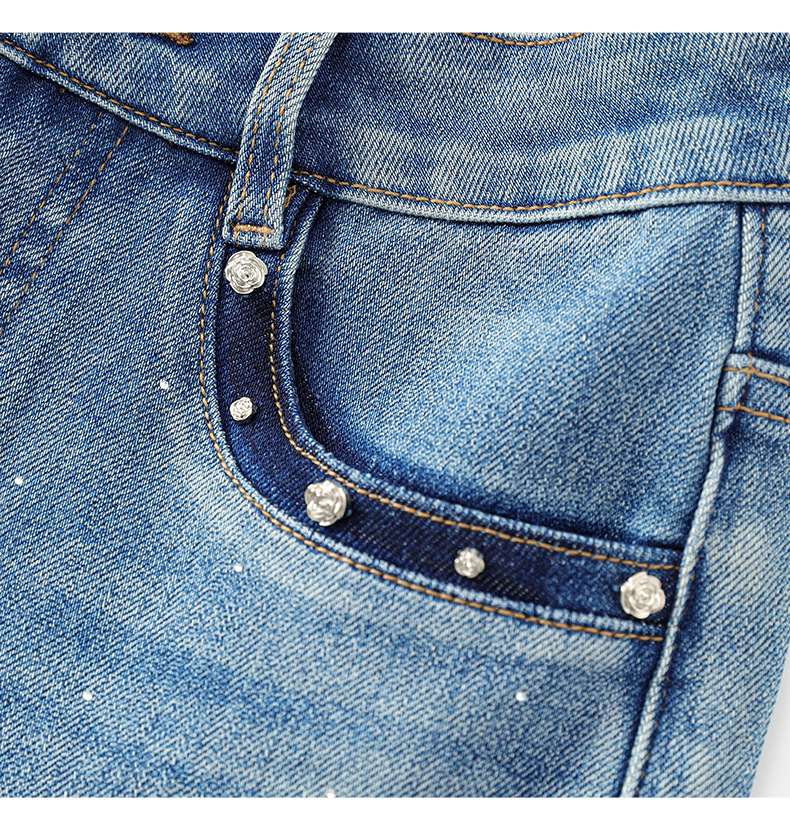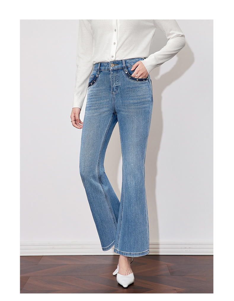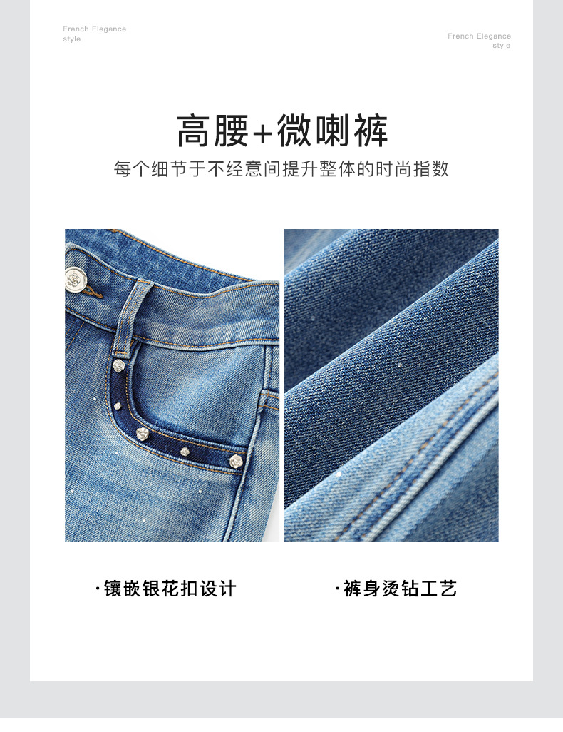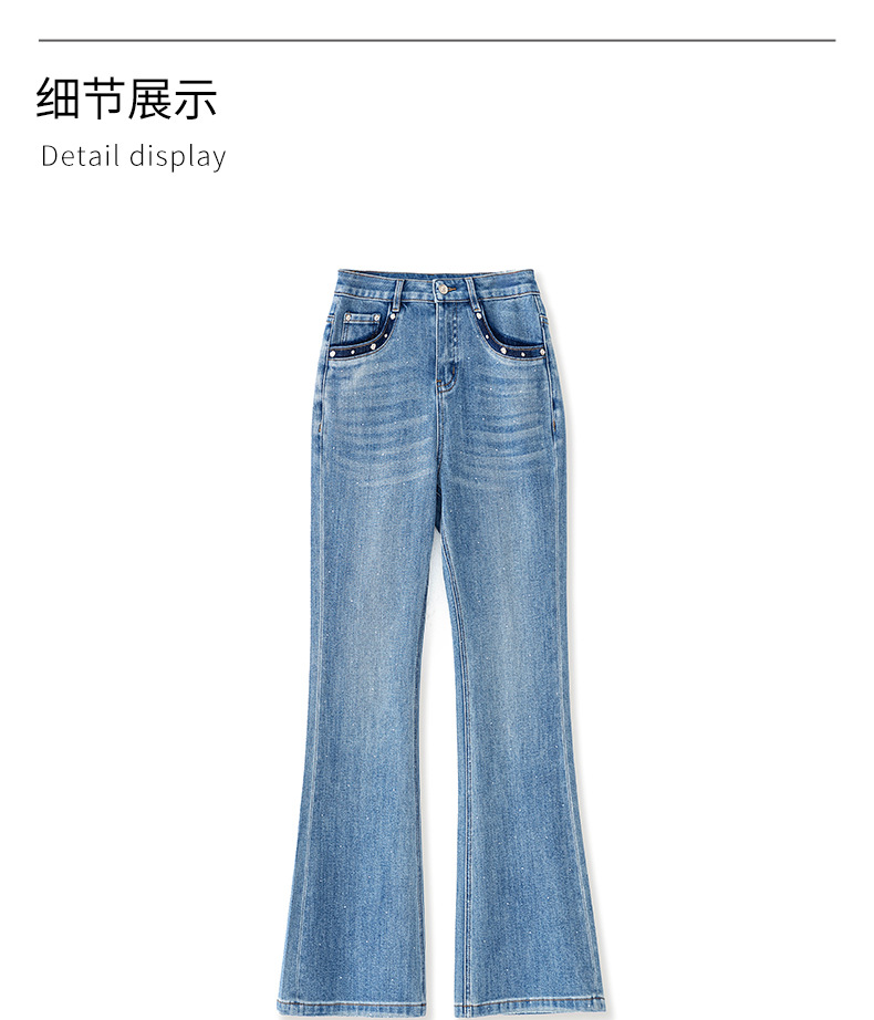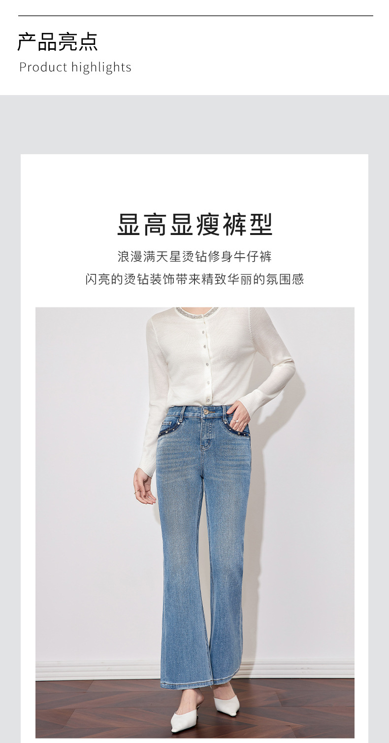 【高货wl】全新升级【铂金会员266/天猫359/差价93】(40044) 洛诗琳重工轻奢烫钻牛仔裤2025春季高腰弹力显瘦微喇裤