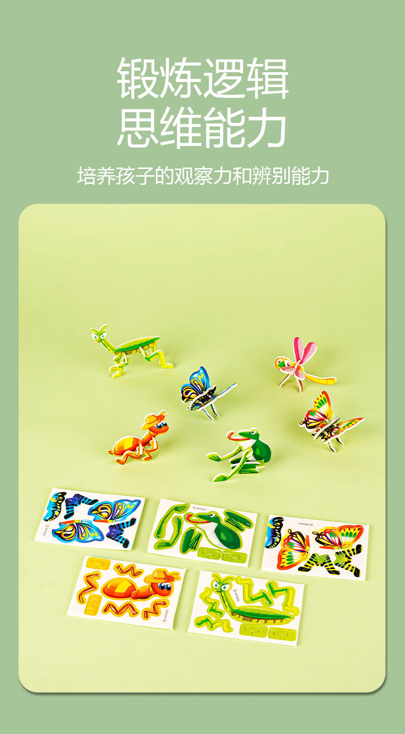 【趣味昆虫立体拼图,让孩子从小学会做选择】立体3D纸质拼图 儿童创意昆虫拼图 DIY幼儿园早教手工 拼装益智玩具-QQ