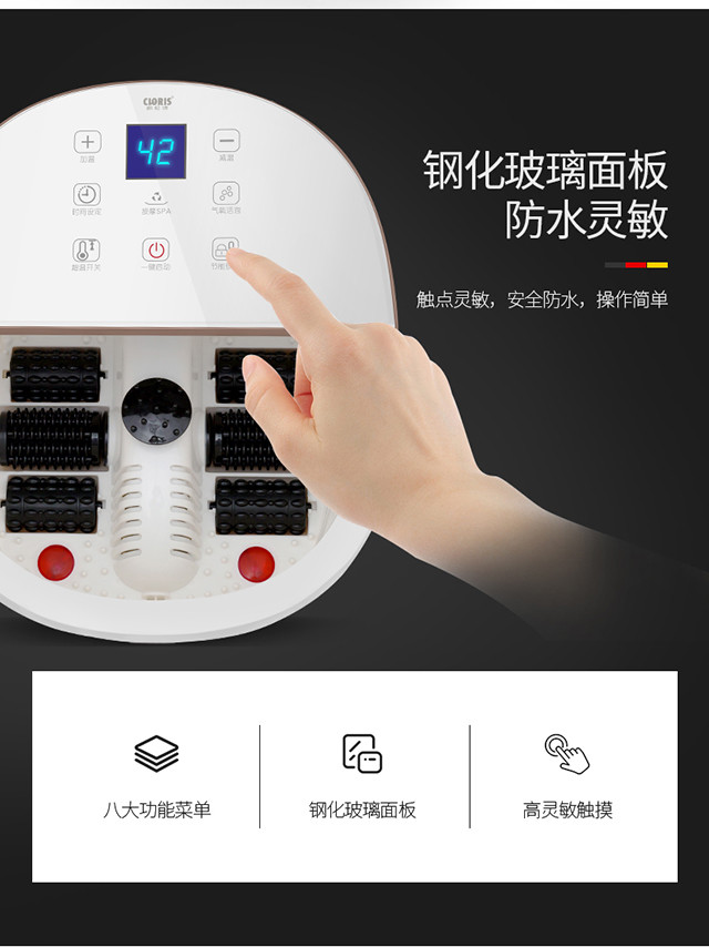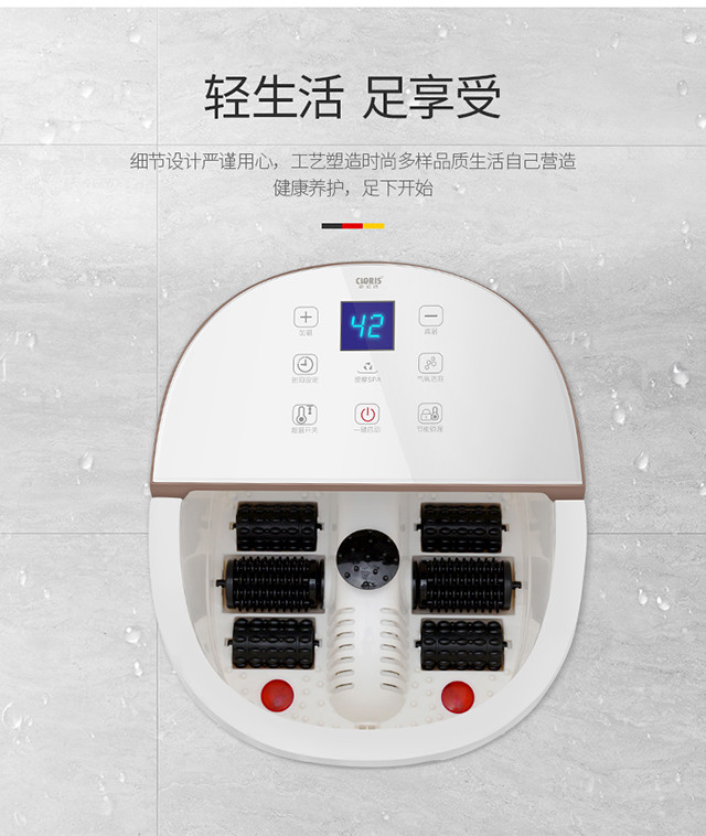 德国凯伦诗(CLORIS)足浴盆电动按摩洗脚盆泡脚盆 全自动恒温加热防漏电 脚底按摩器 父亲节礼物 F525白色