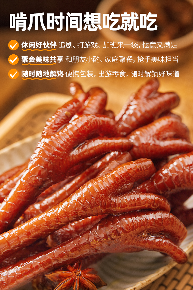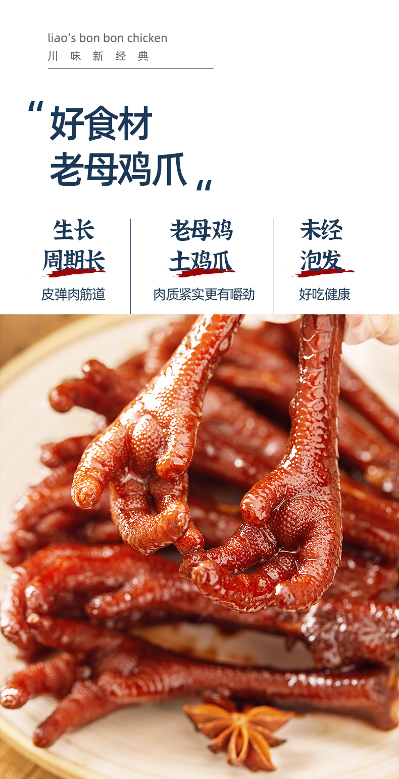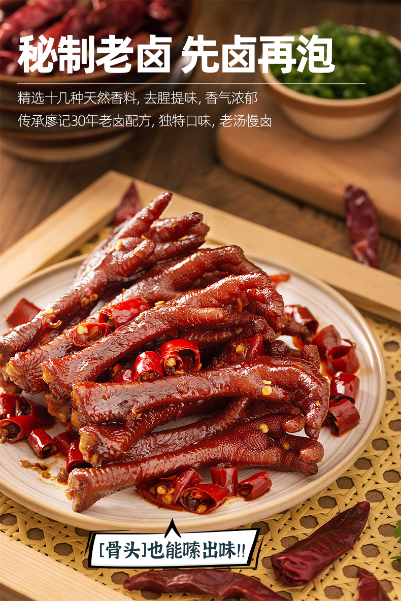 廖记棒棒鸡香辣老卤土鸡爪200g无泡发卤味网红休闲解馋零食即食小吃鸡肉零食卤香土鸡爪200g