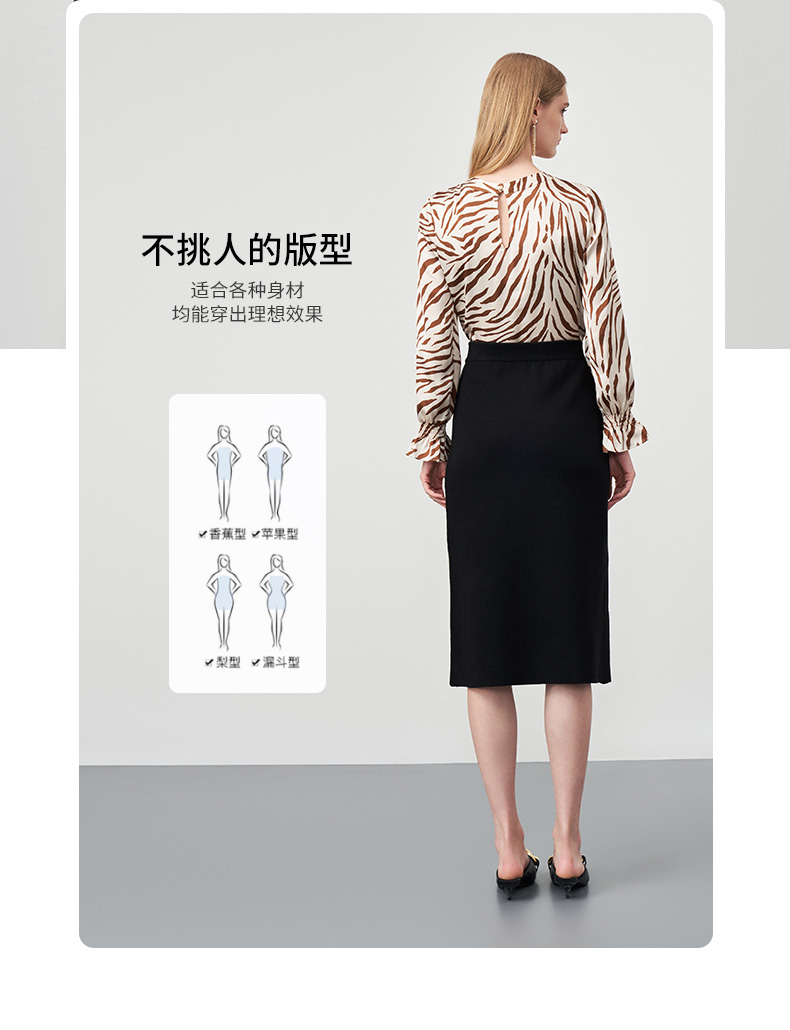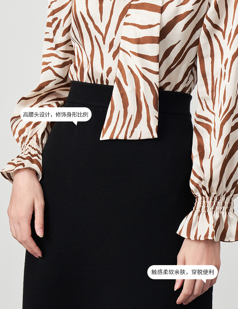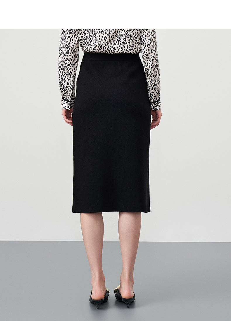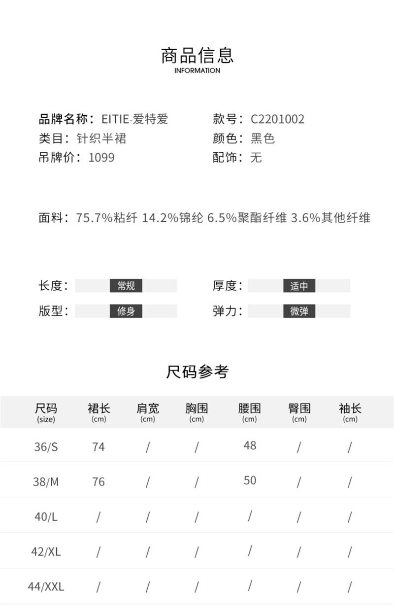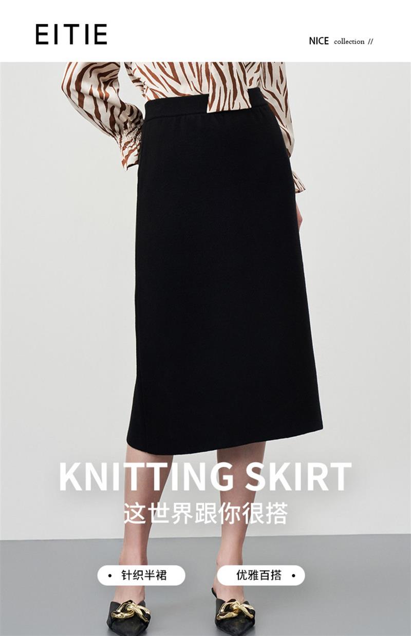 EITIE爱特爱秋季新款舒适通勤ol黑色高腰显瘦百搭针织半身裙C2201002