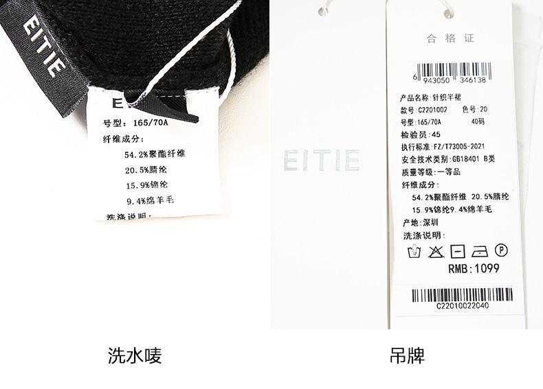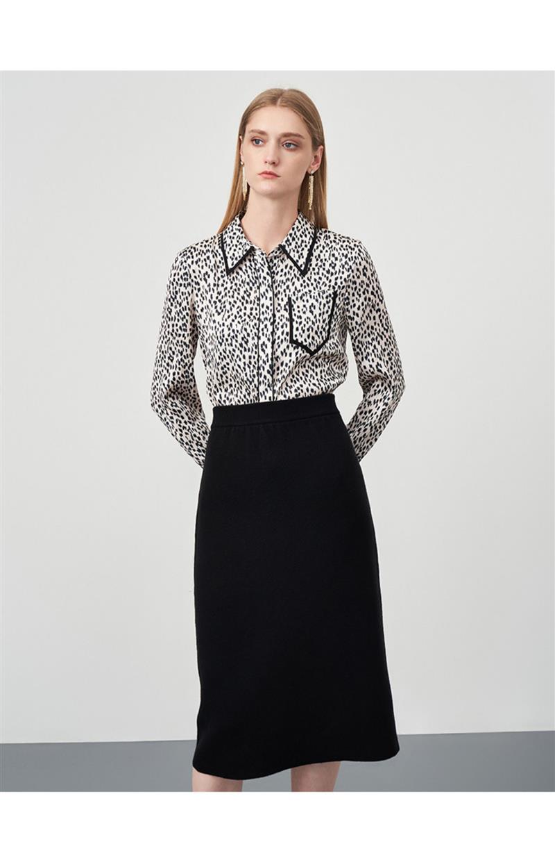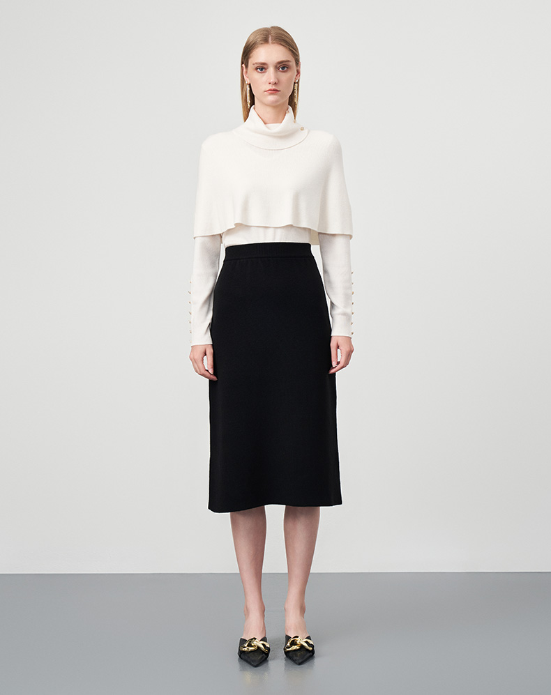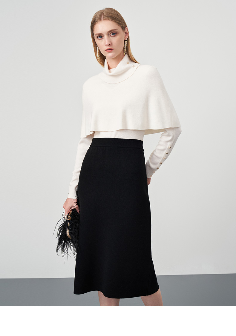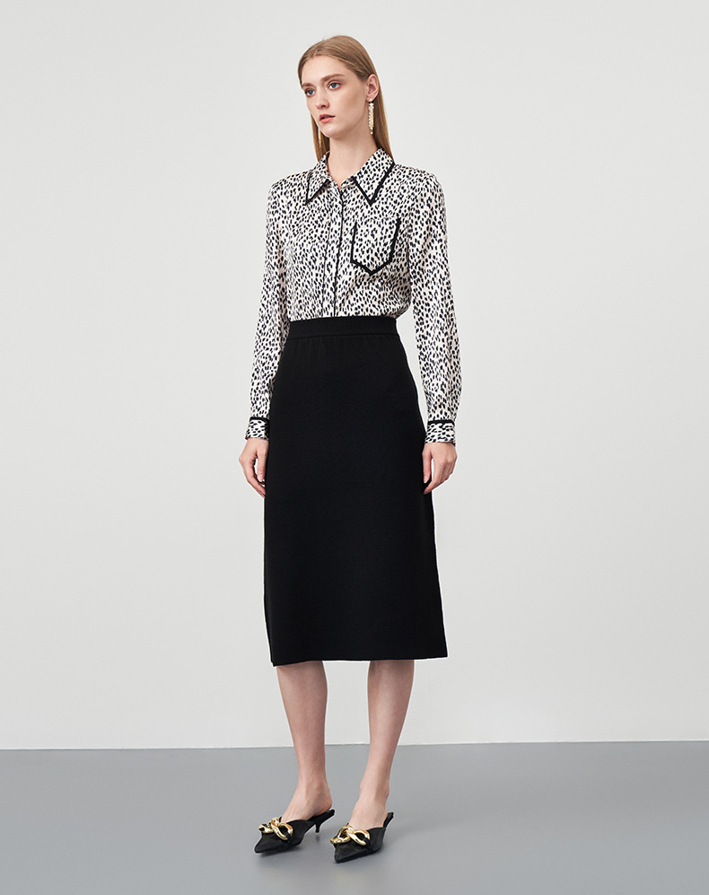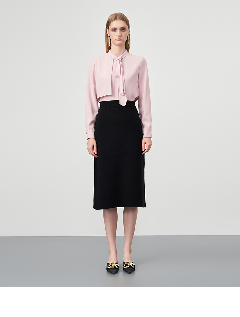 EITIE爱特爱秋季新款舒适通勤ol黑色高腰显瘦百搭针织半身裙C2201002