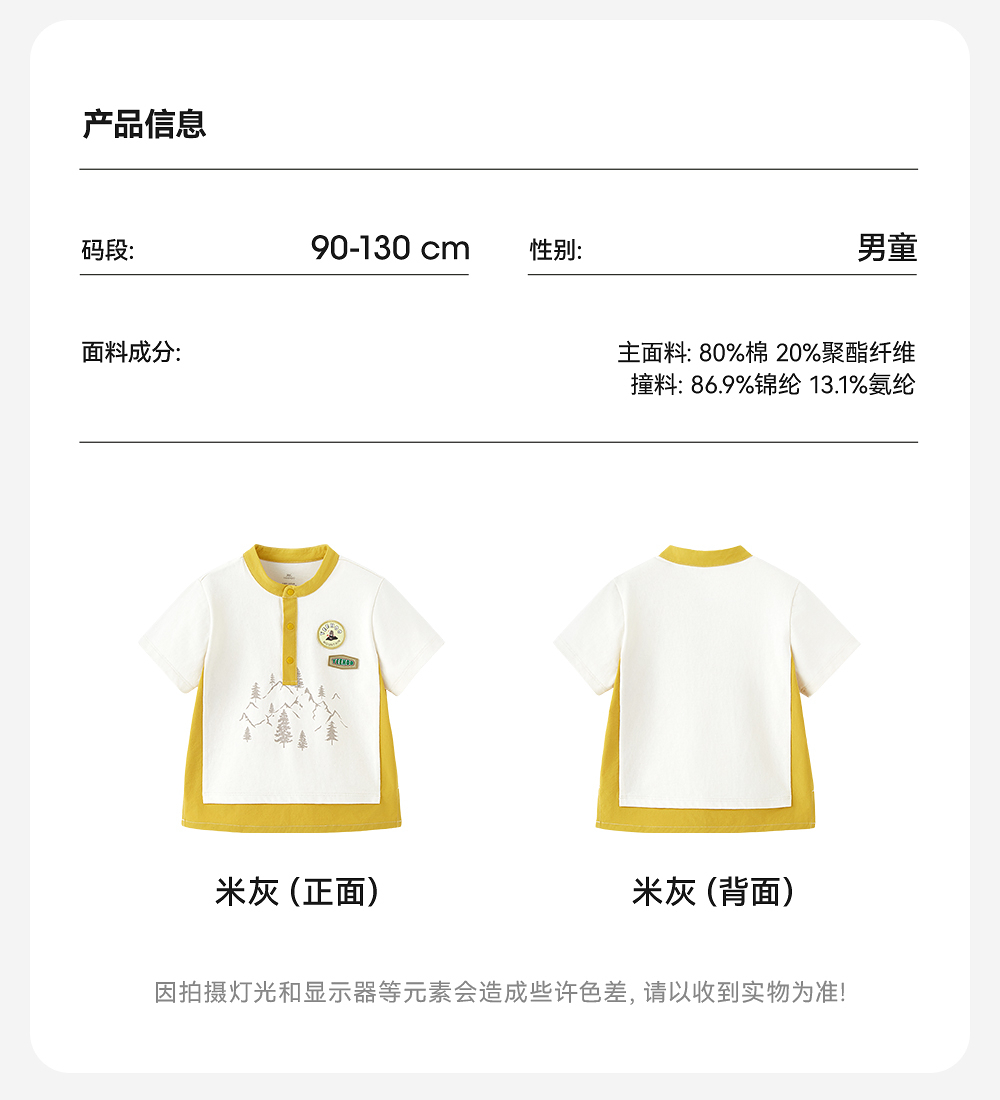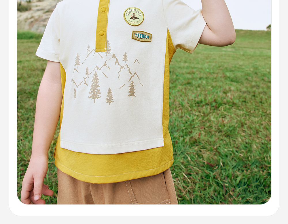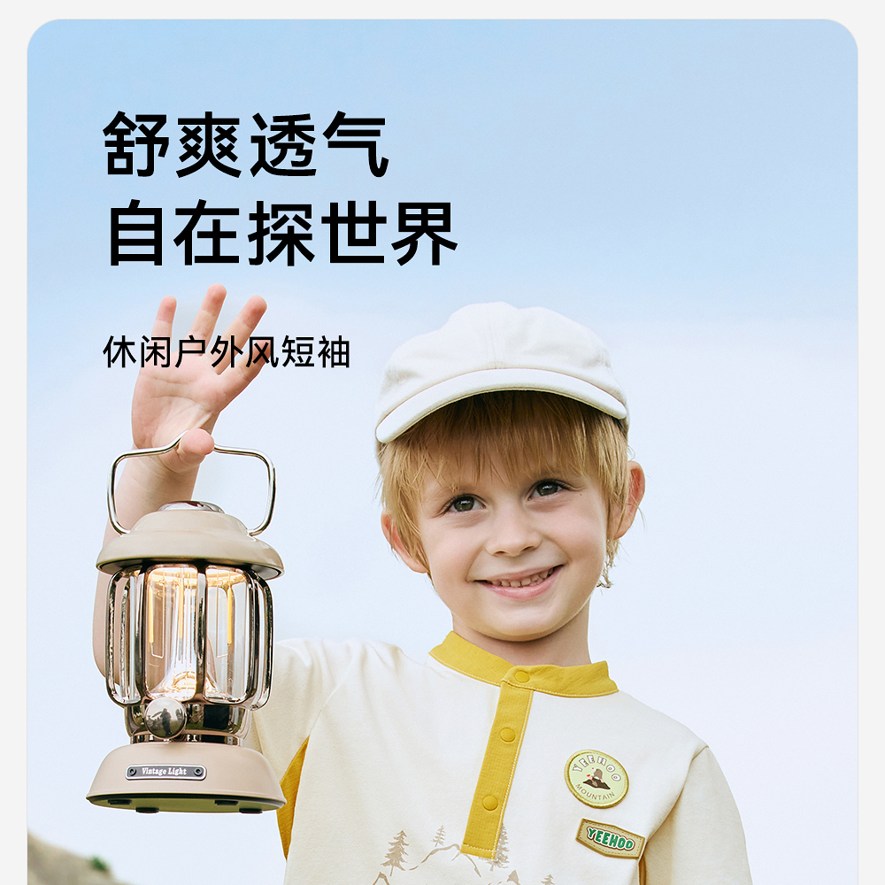 英氏儿童T恤夏季短袖透气上衣男童户外休闲T恤百搭2025新款短T恤