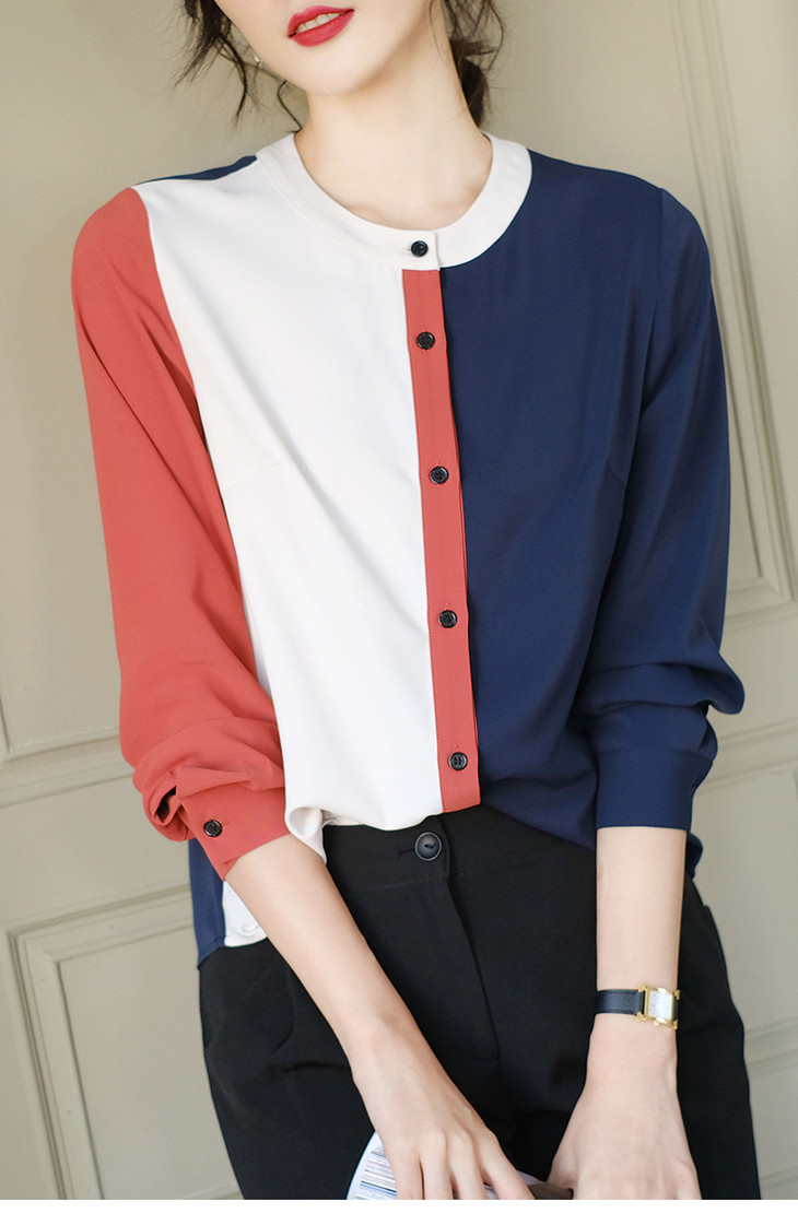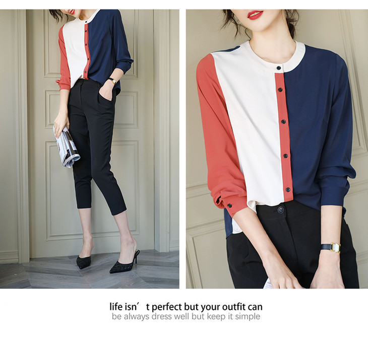 2020秋季新款雪纺洋气撞色衬衫YY-衬衫
