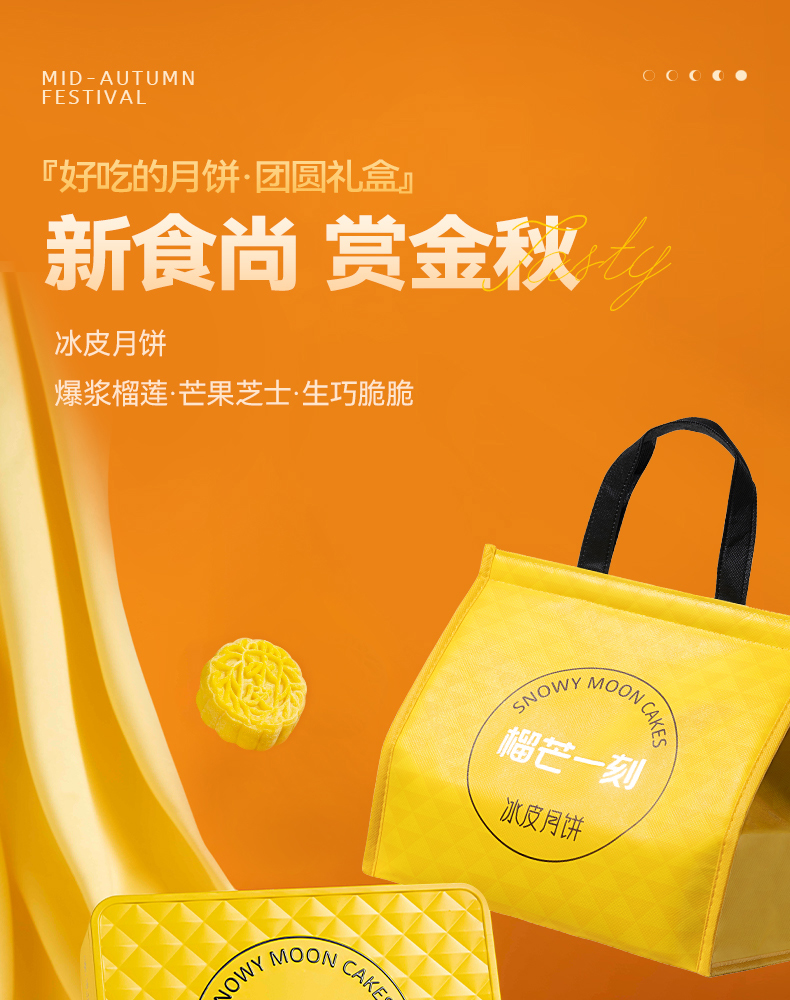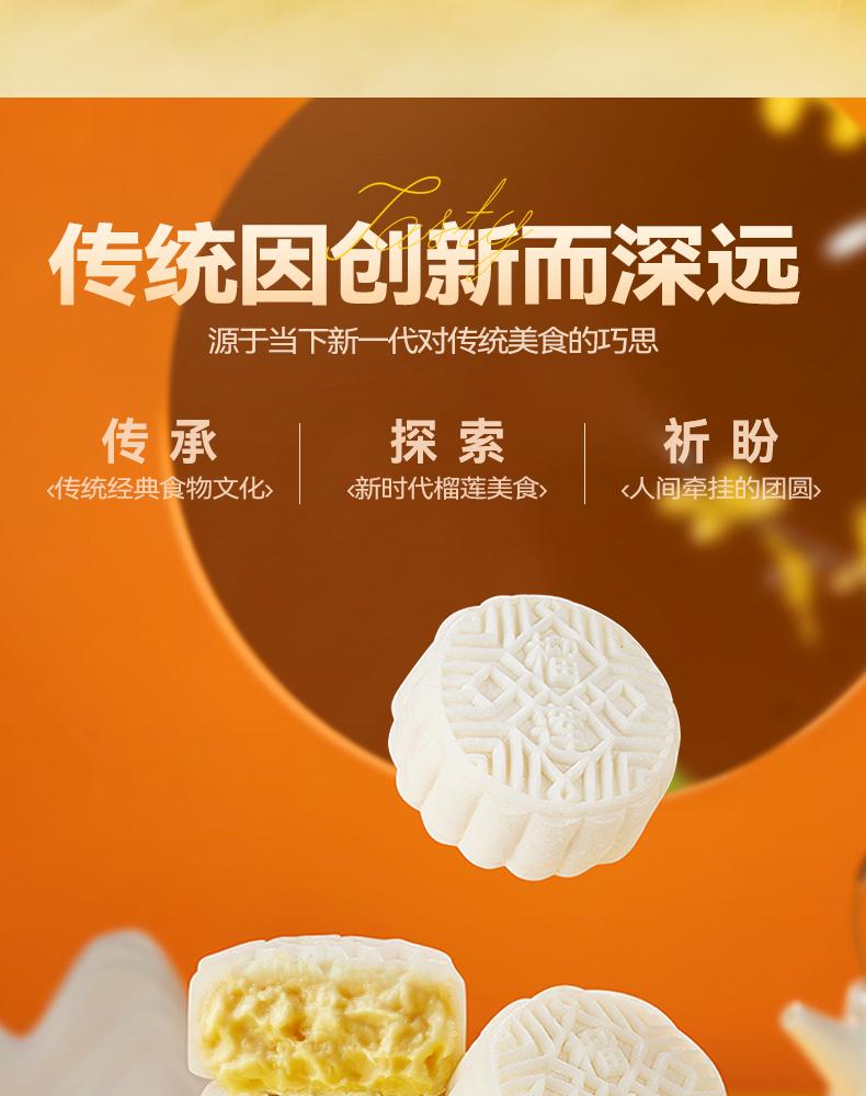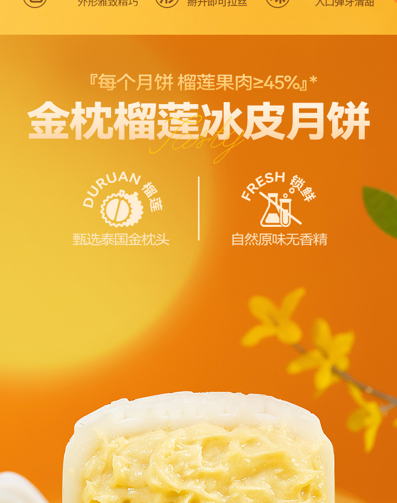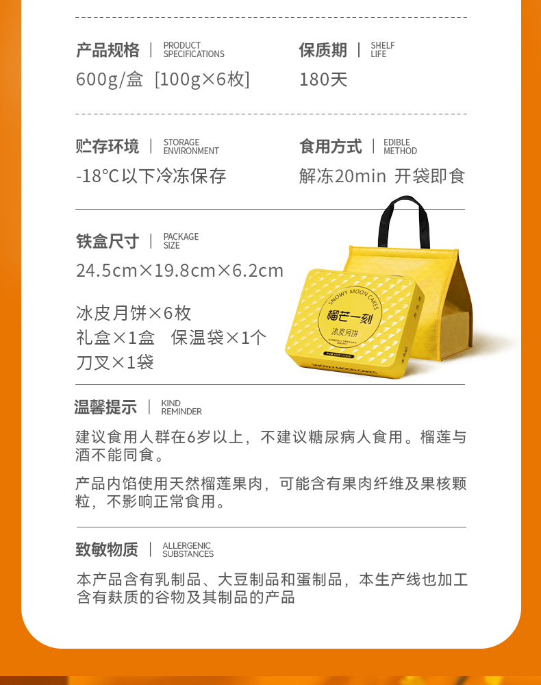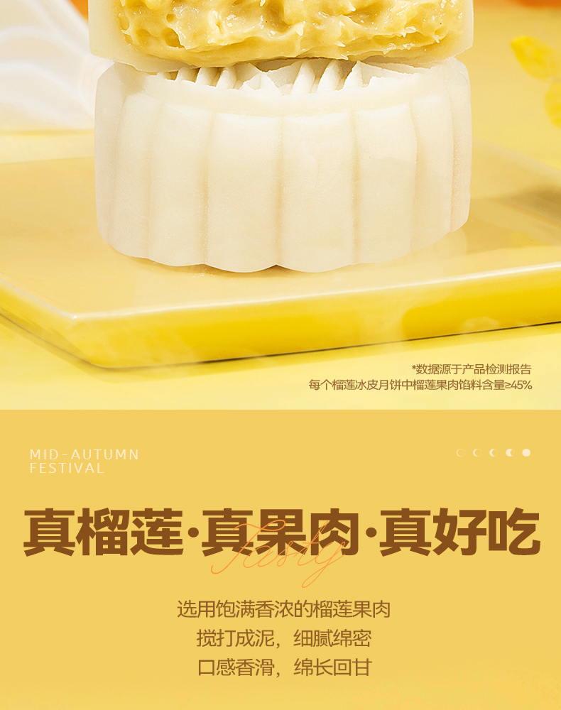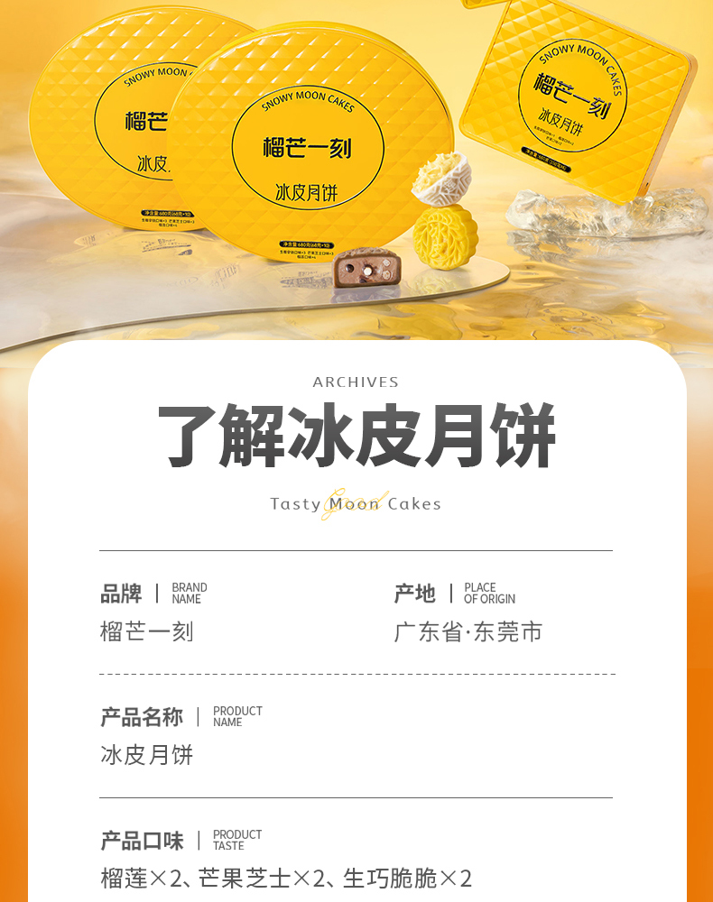 【榴芒一刻】金枕榴莲冰皮月饼600克(100克*6)
