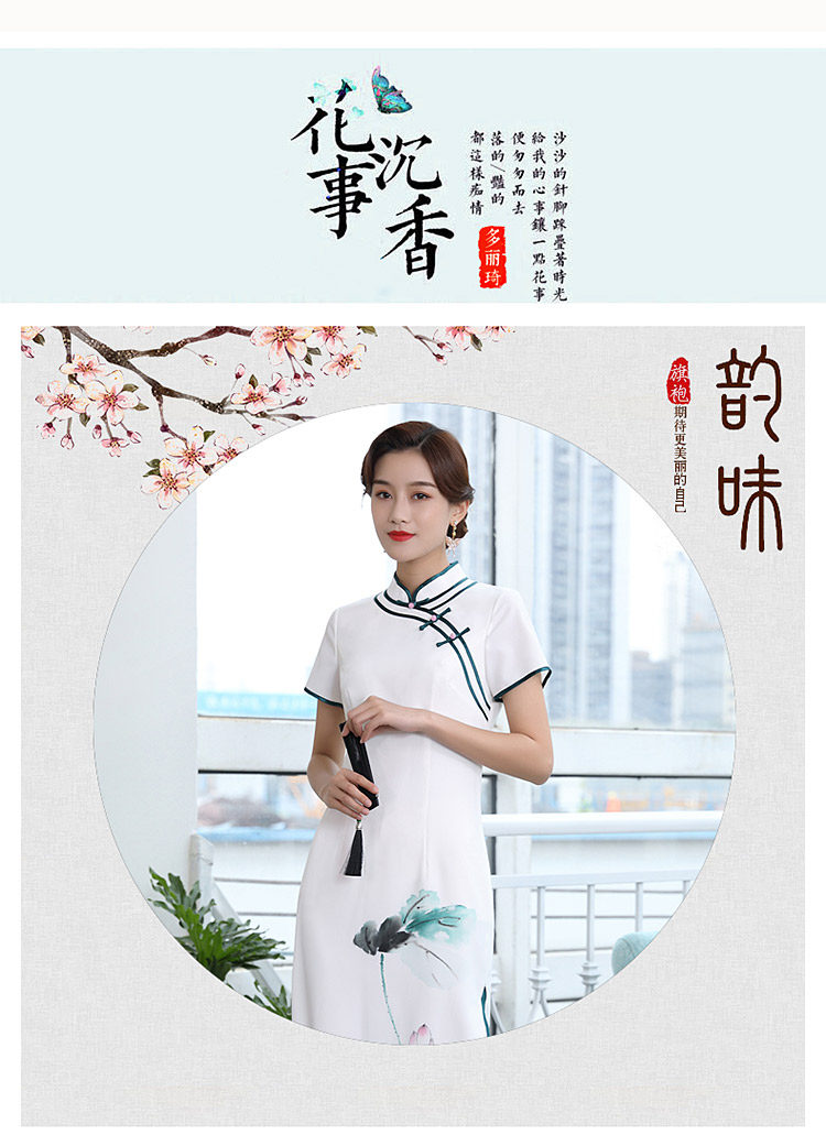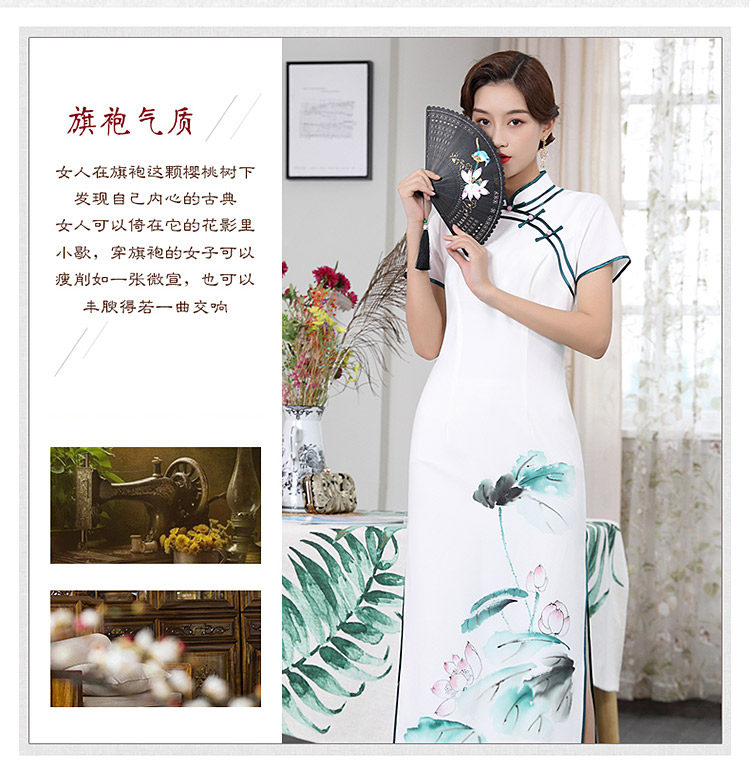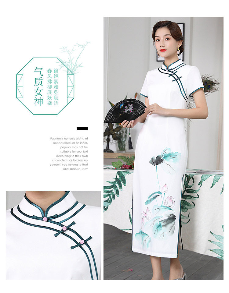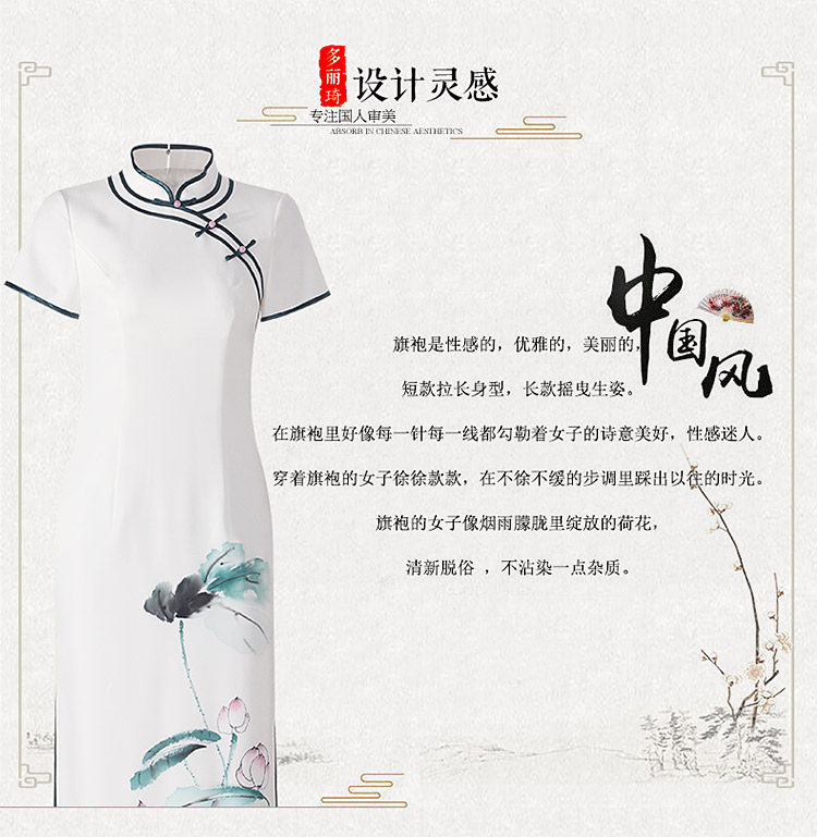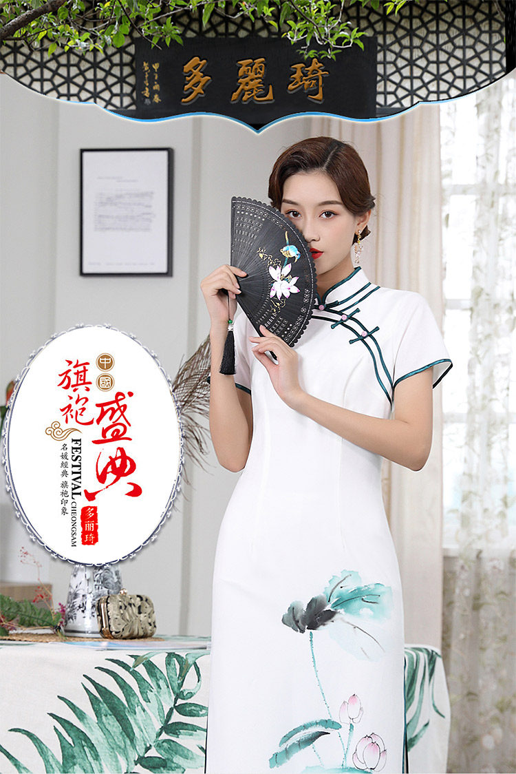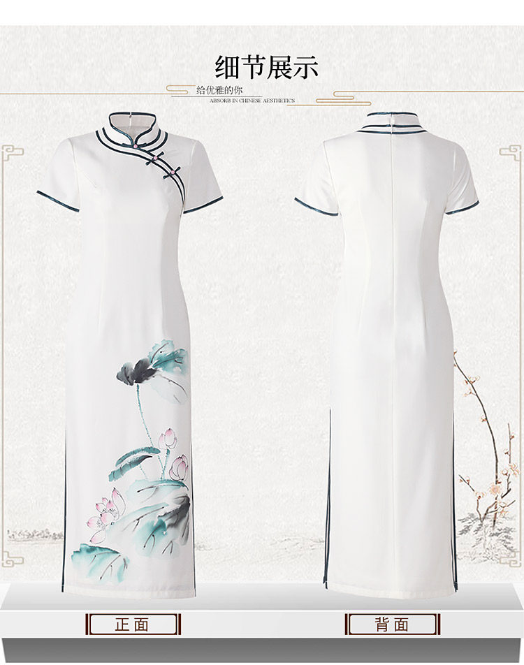 DLQ-A2519白色日常走秀高端演出服真丝旗袍裙(可定制)