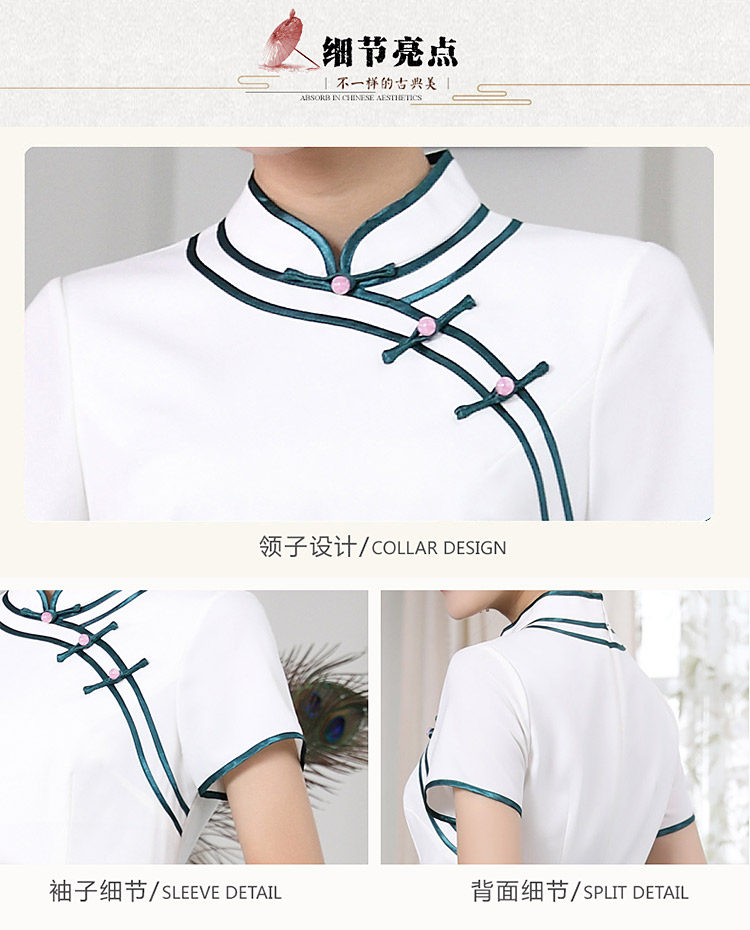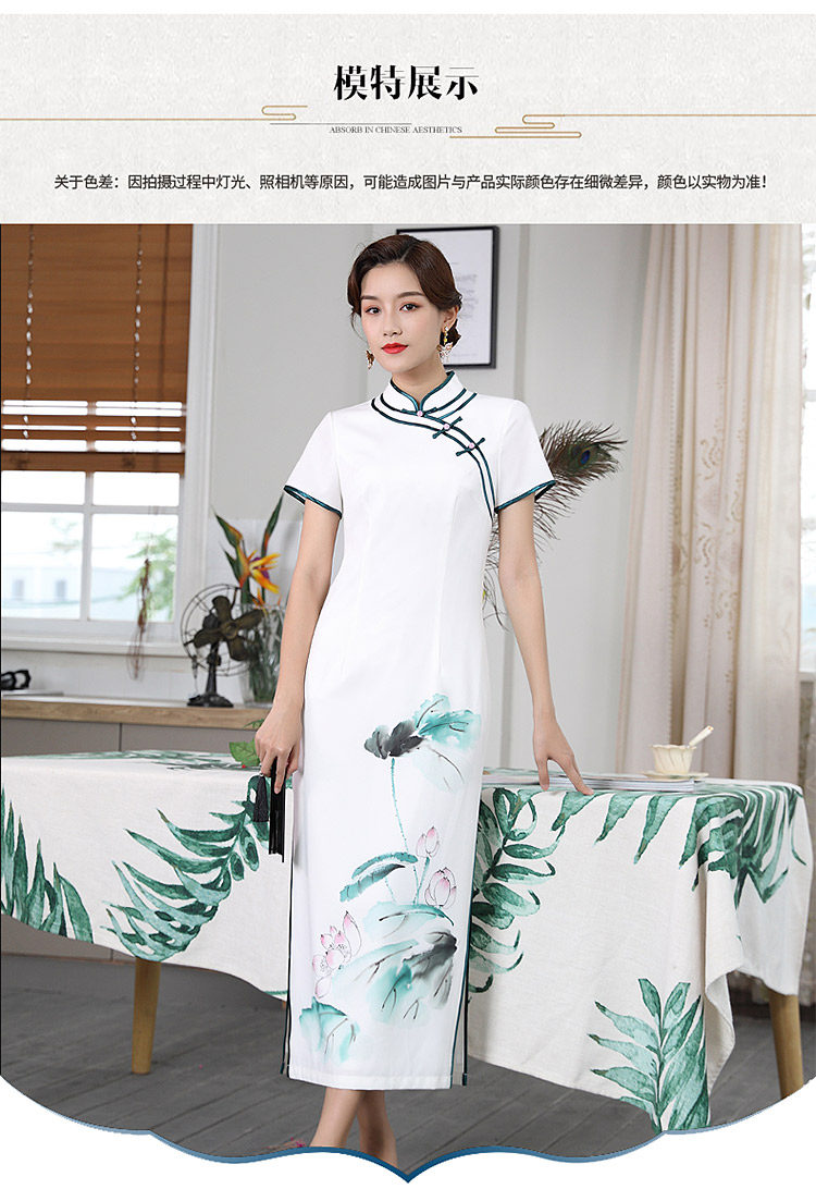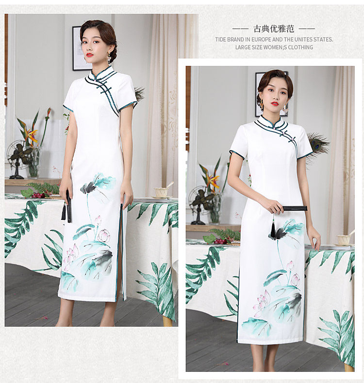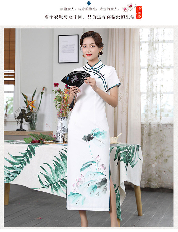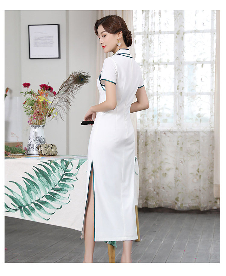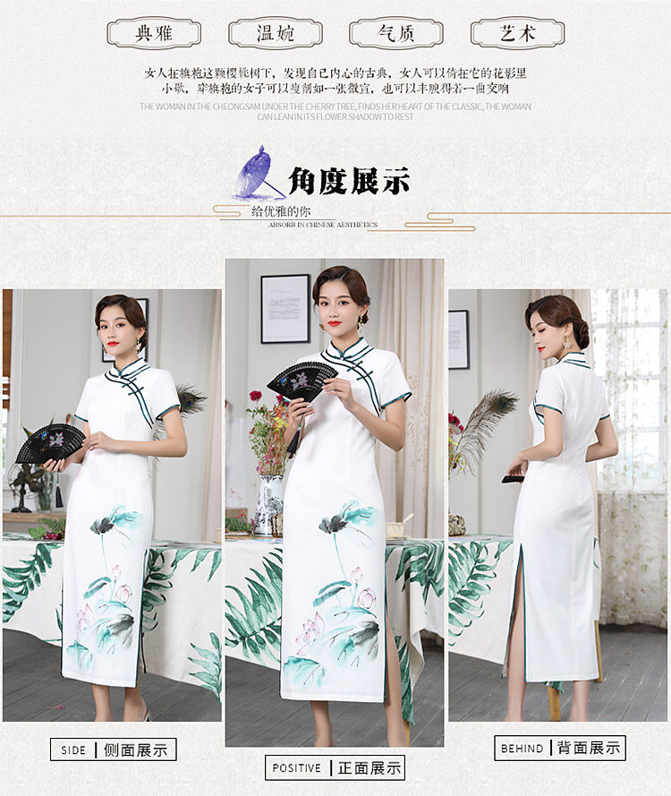 DLQ-A2519白色日常走秀高端演出服真丝旗袍裙(可定制)