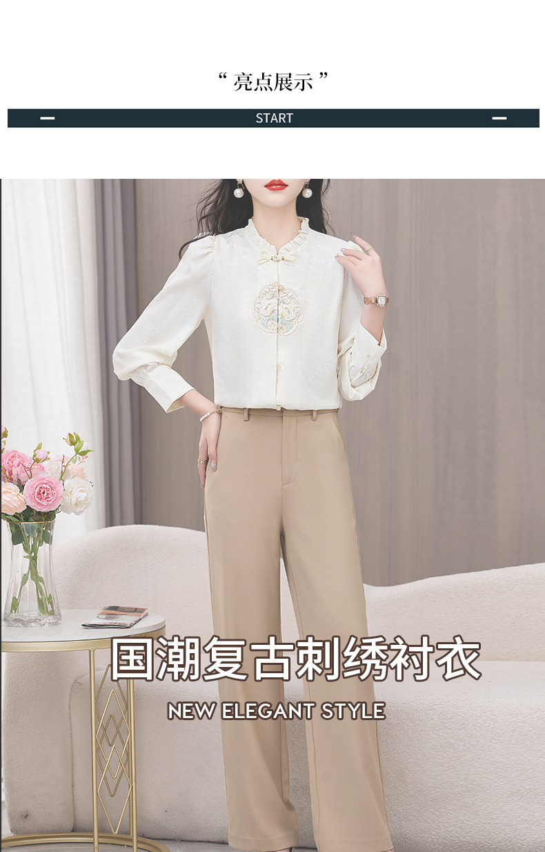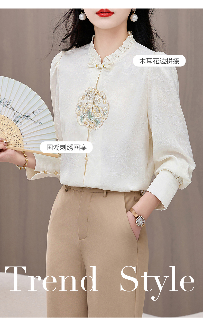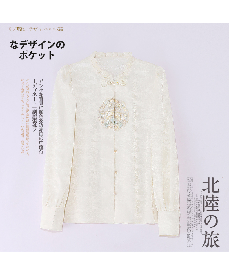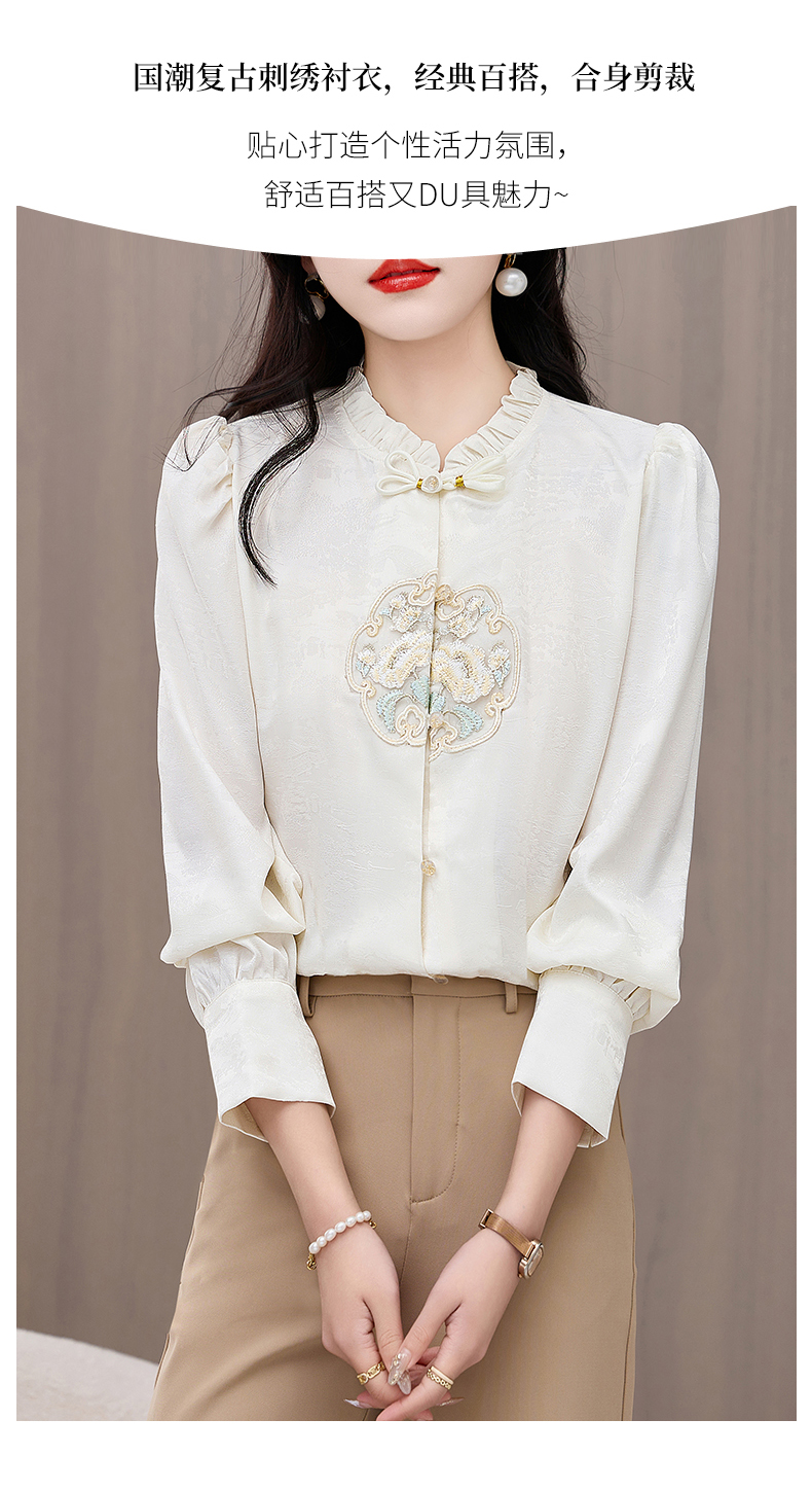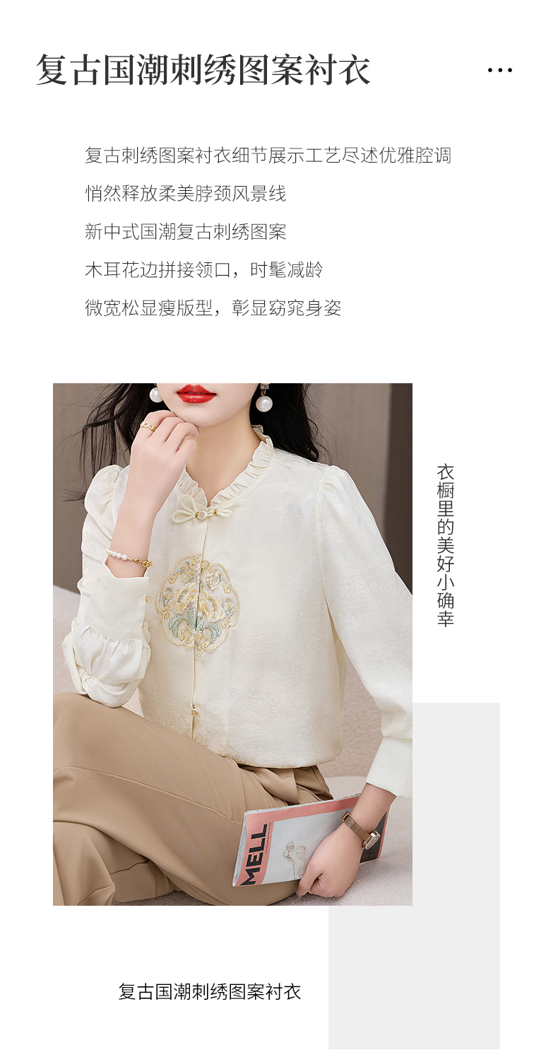 娃娃领长袖衬衫,女复古设计感小众春季新款宽松衬衣HR-HRYZ9616