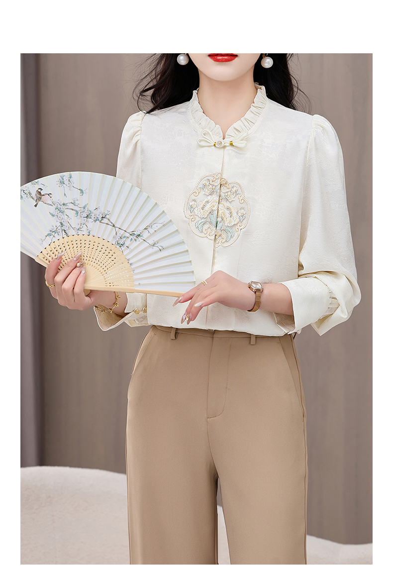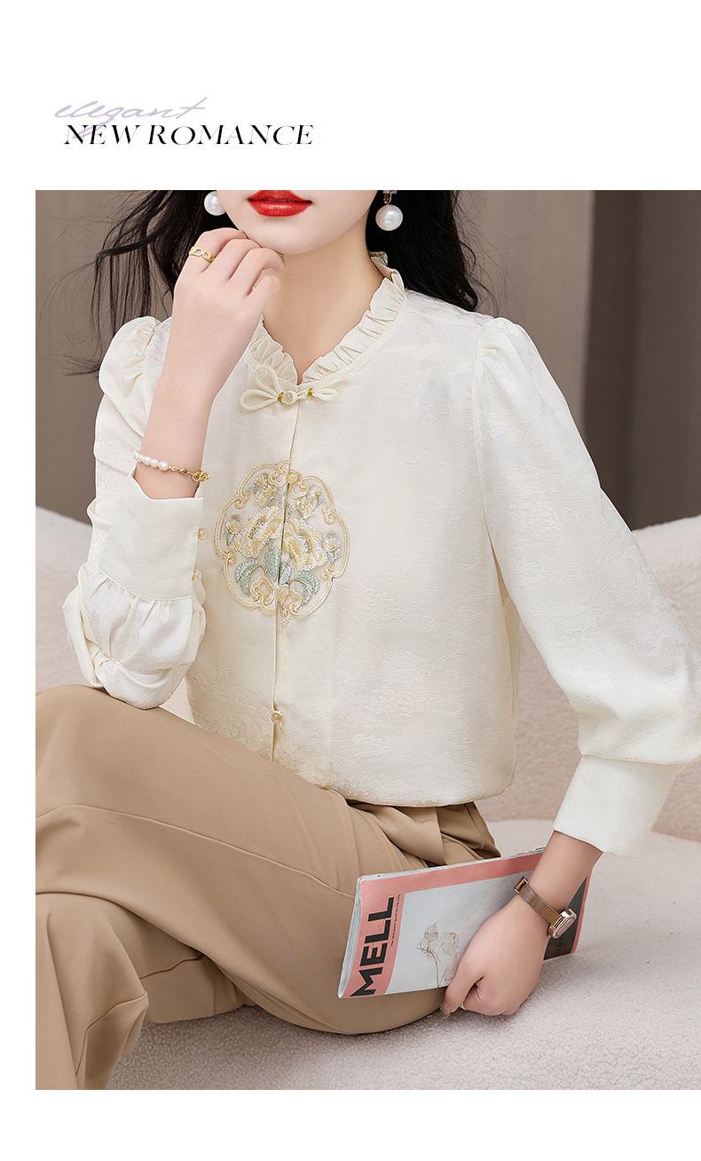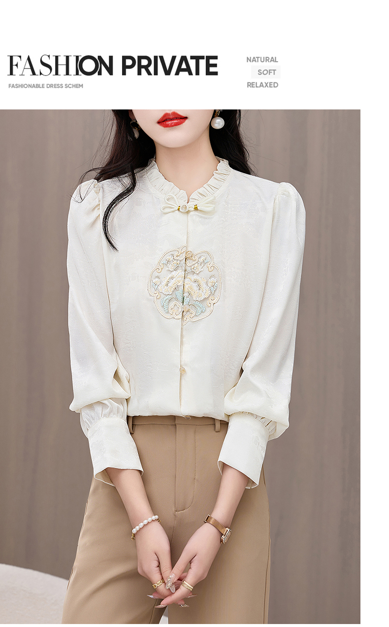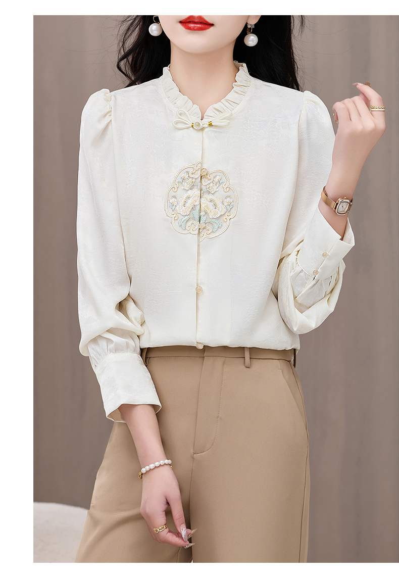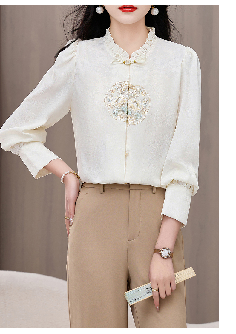 娃娃领长袖衬衫,女复古设计感小众春季新款宽松衬衣HR-HRYZ9616