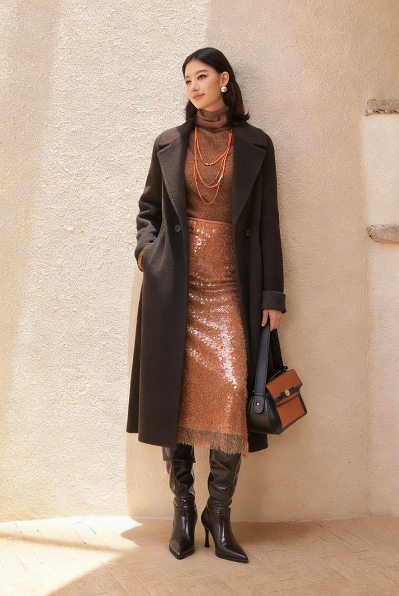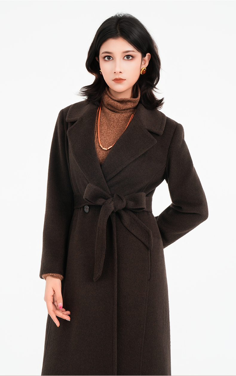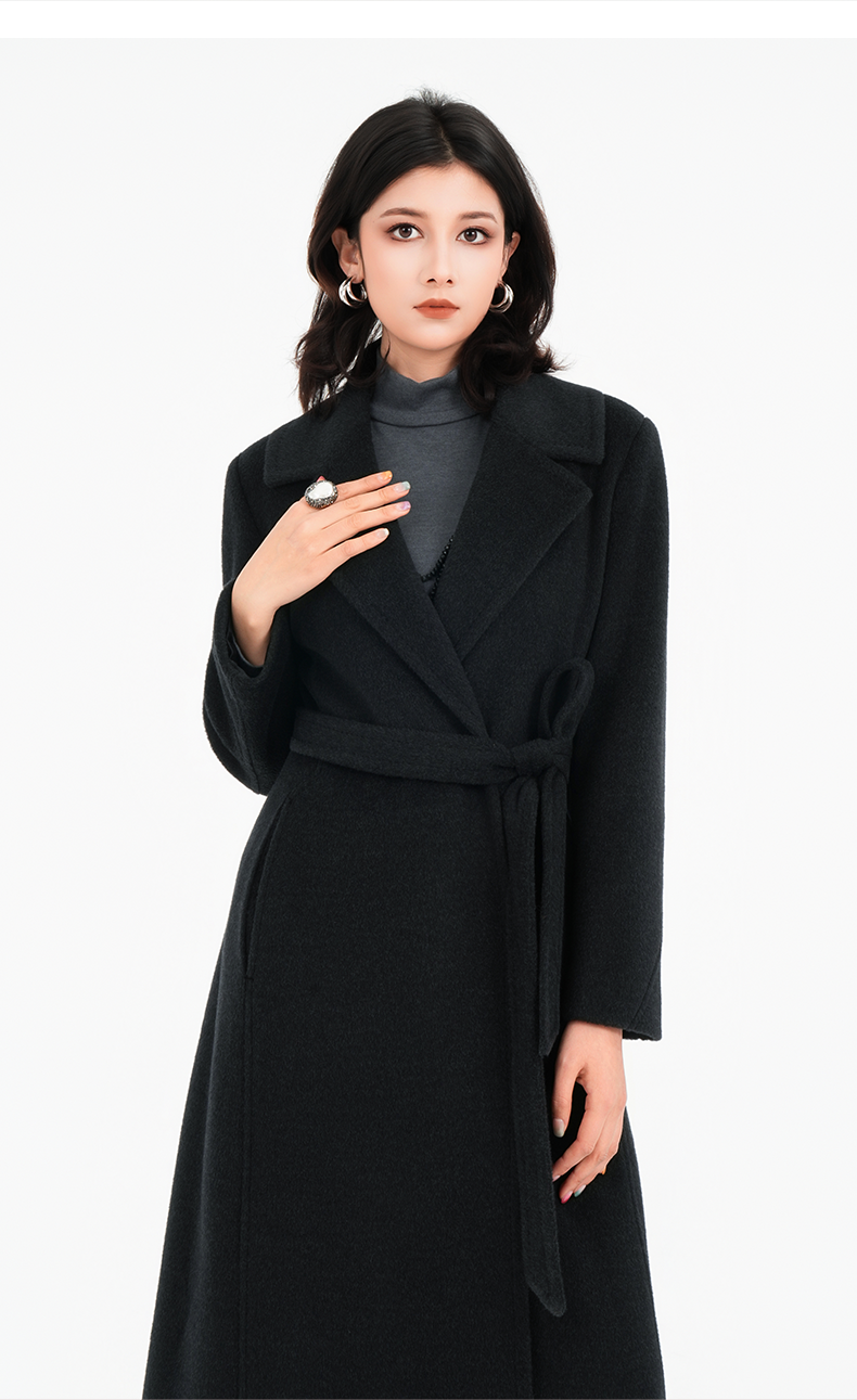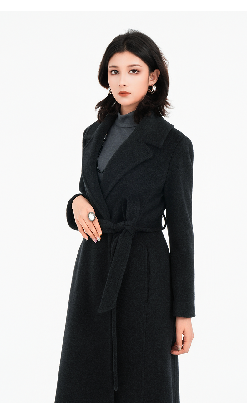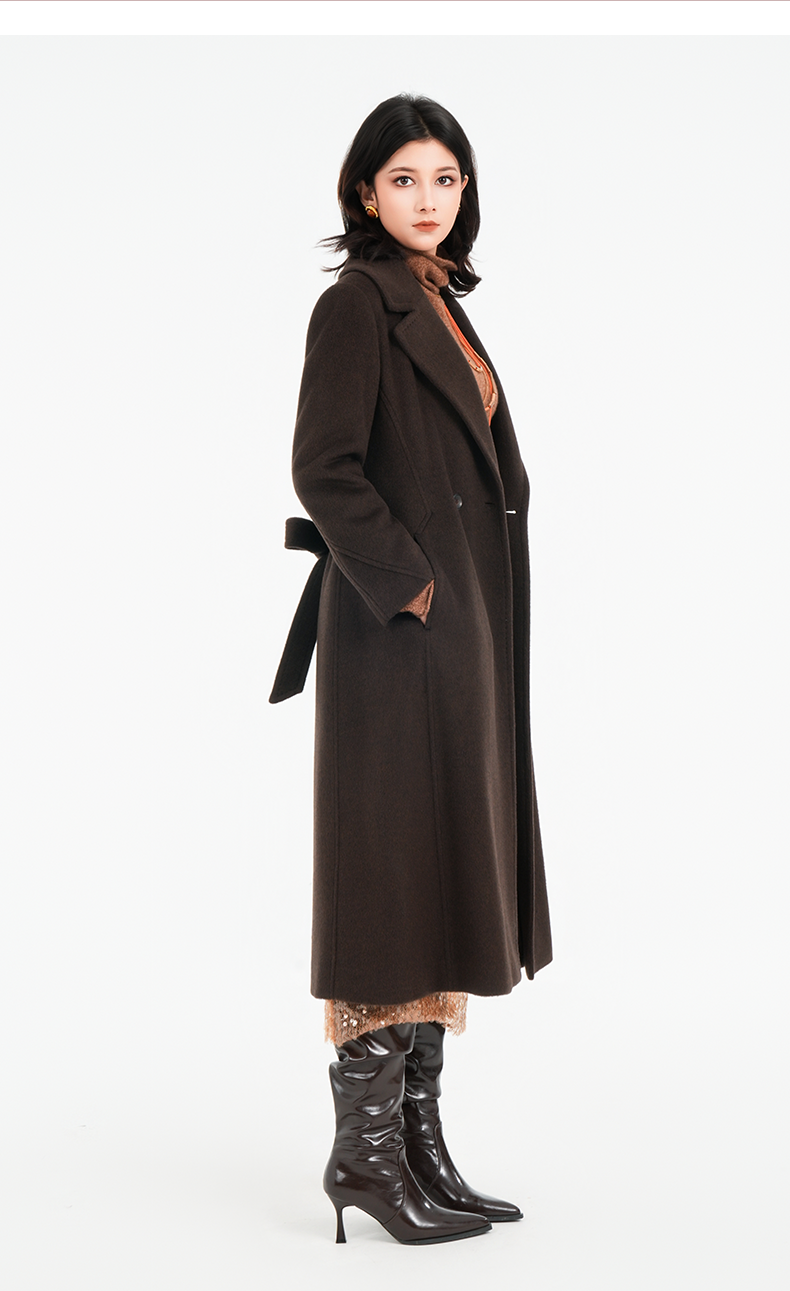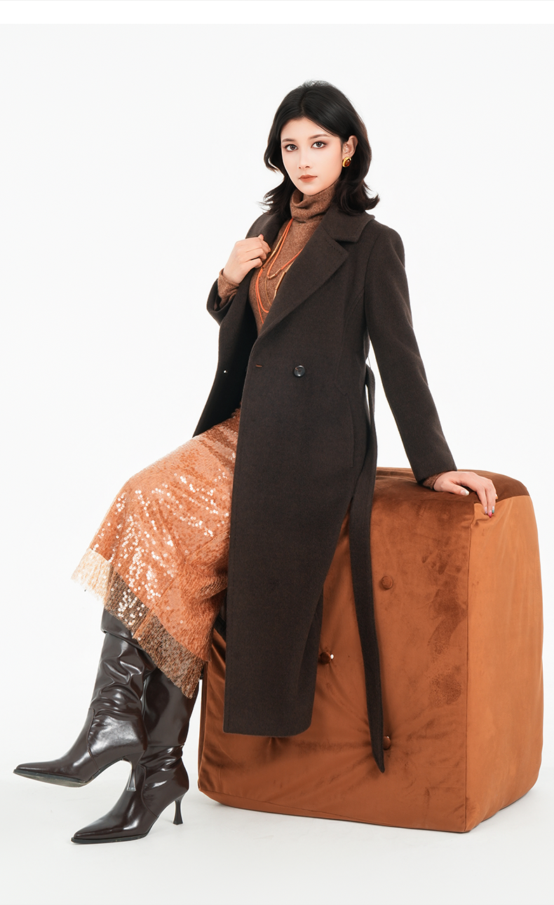 乔万尼2025冬两色可选100%绵羊毛高智感收腰长款毛呢大衣ED4A830