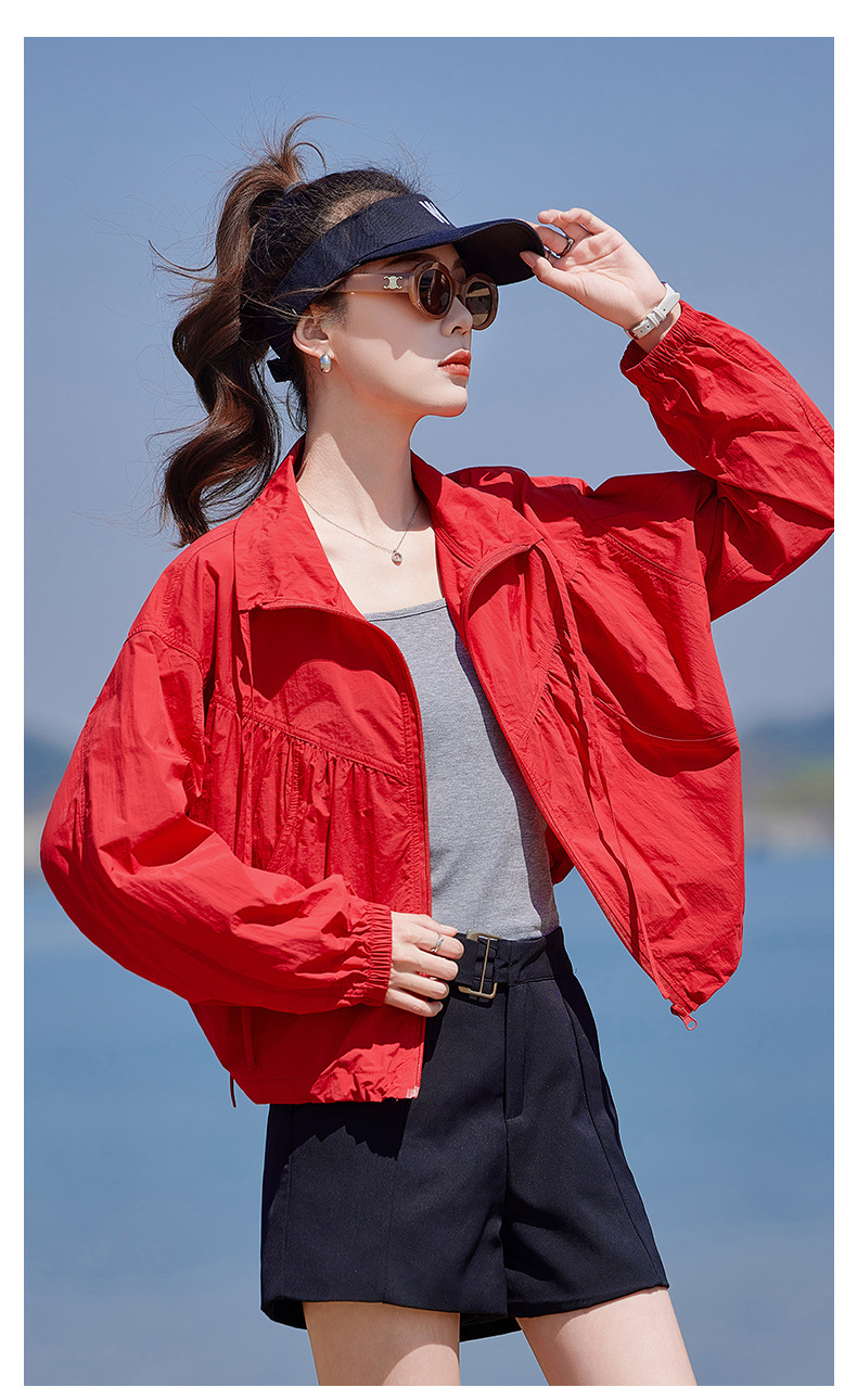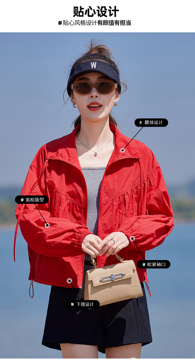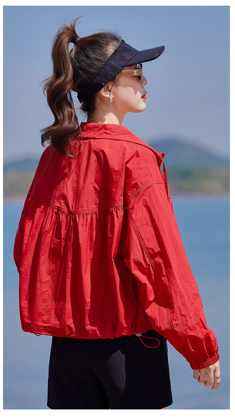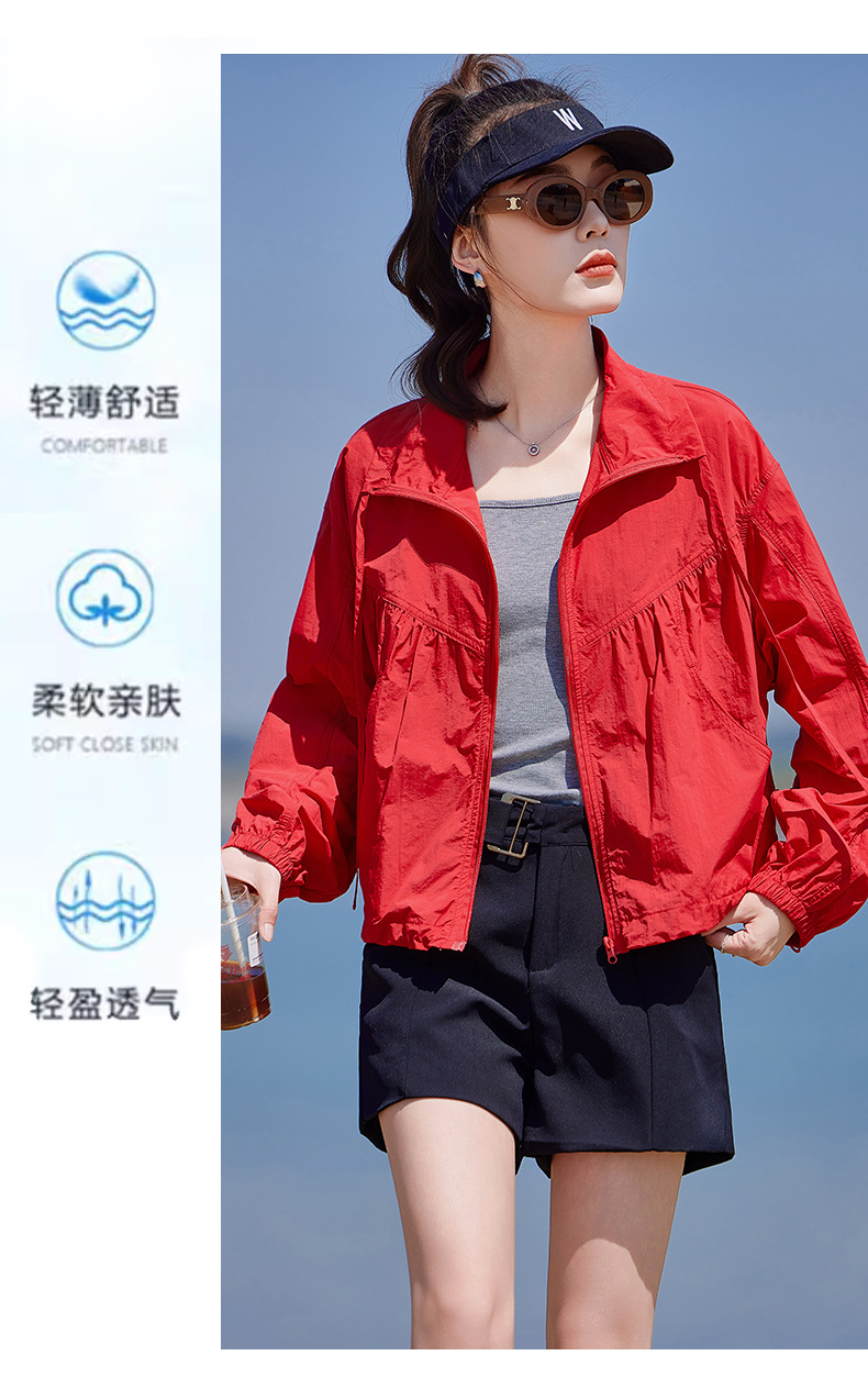 丁摩 红色宽松防晒衣女20新款夏季透气减龄休闲短外套5ZF-2527