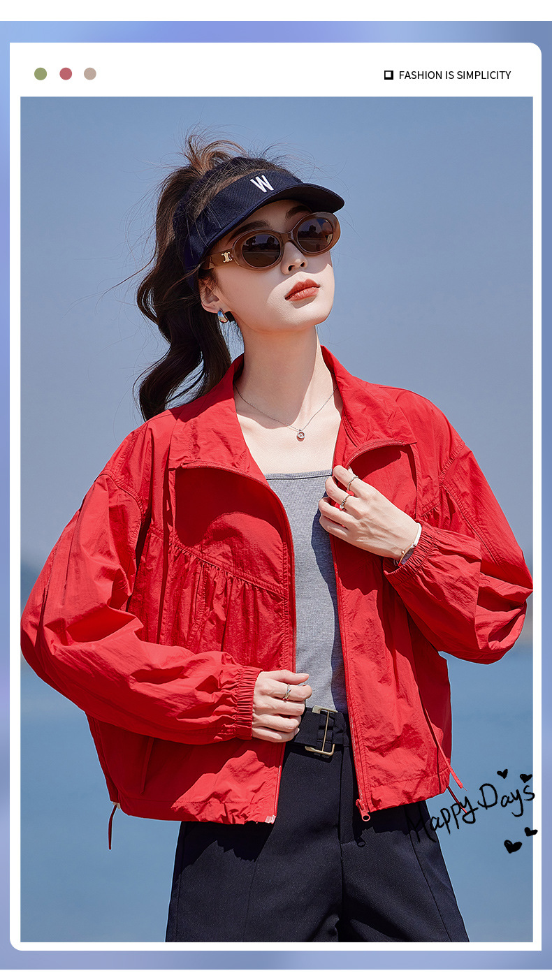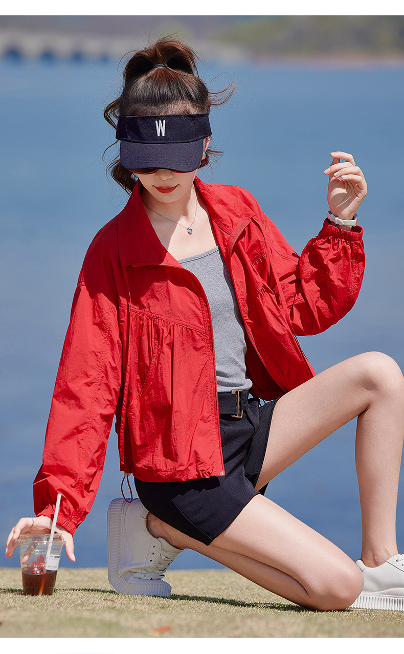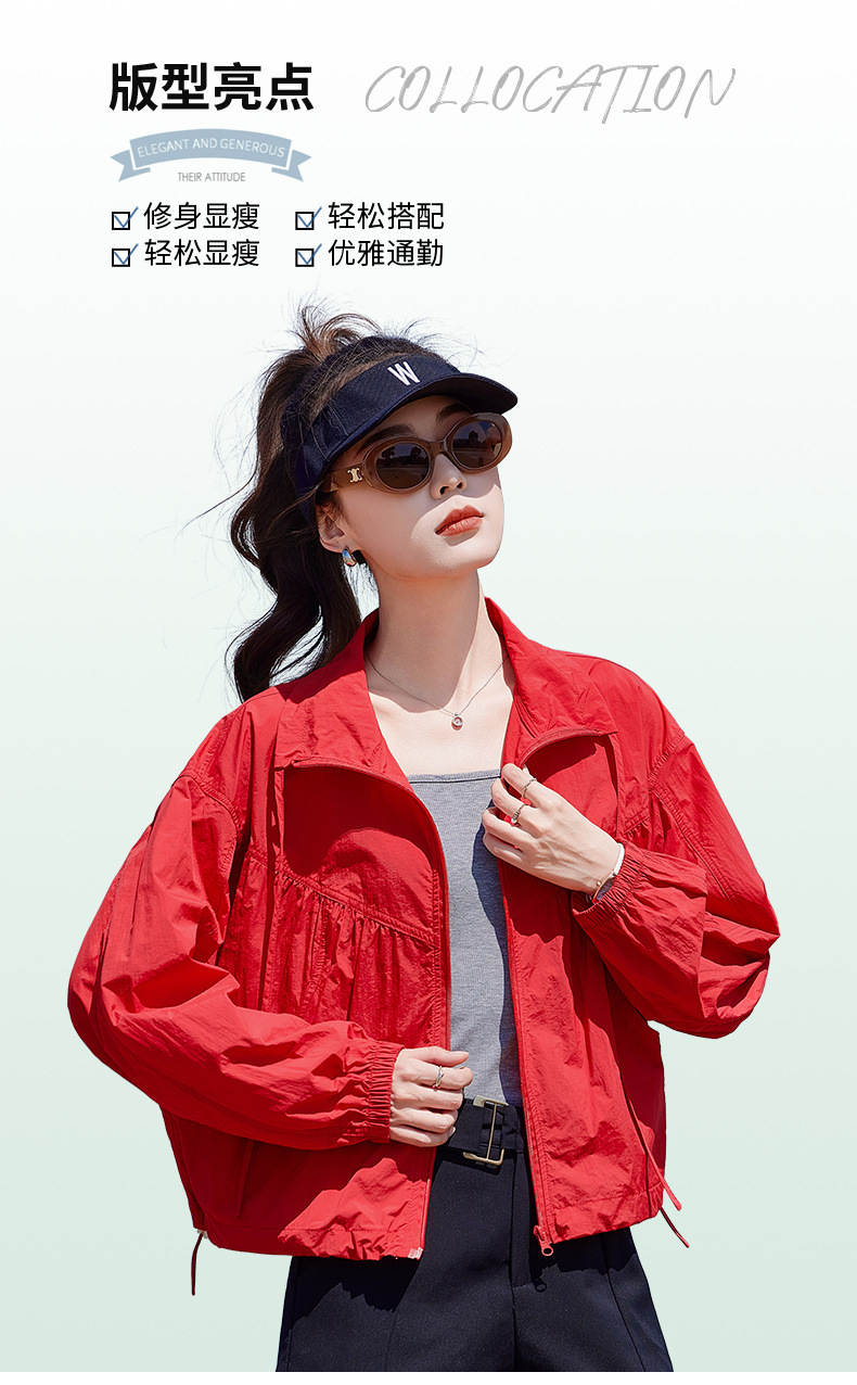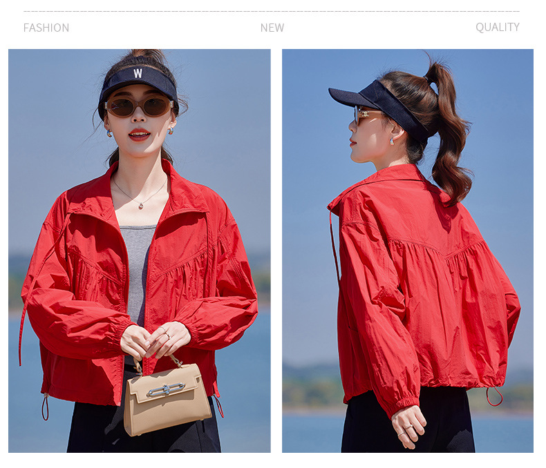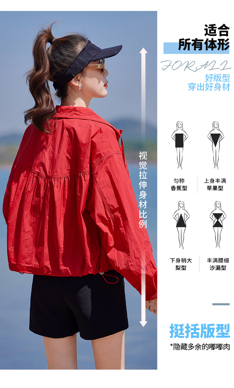 丁摩 红色宽松防晒衣女20新款夏季透气减龄休闲短外套5ZF-2527