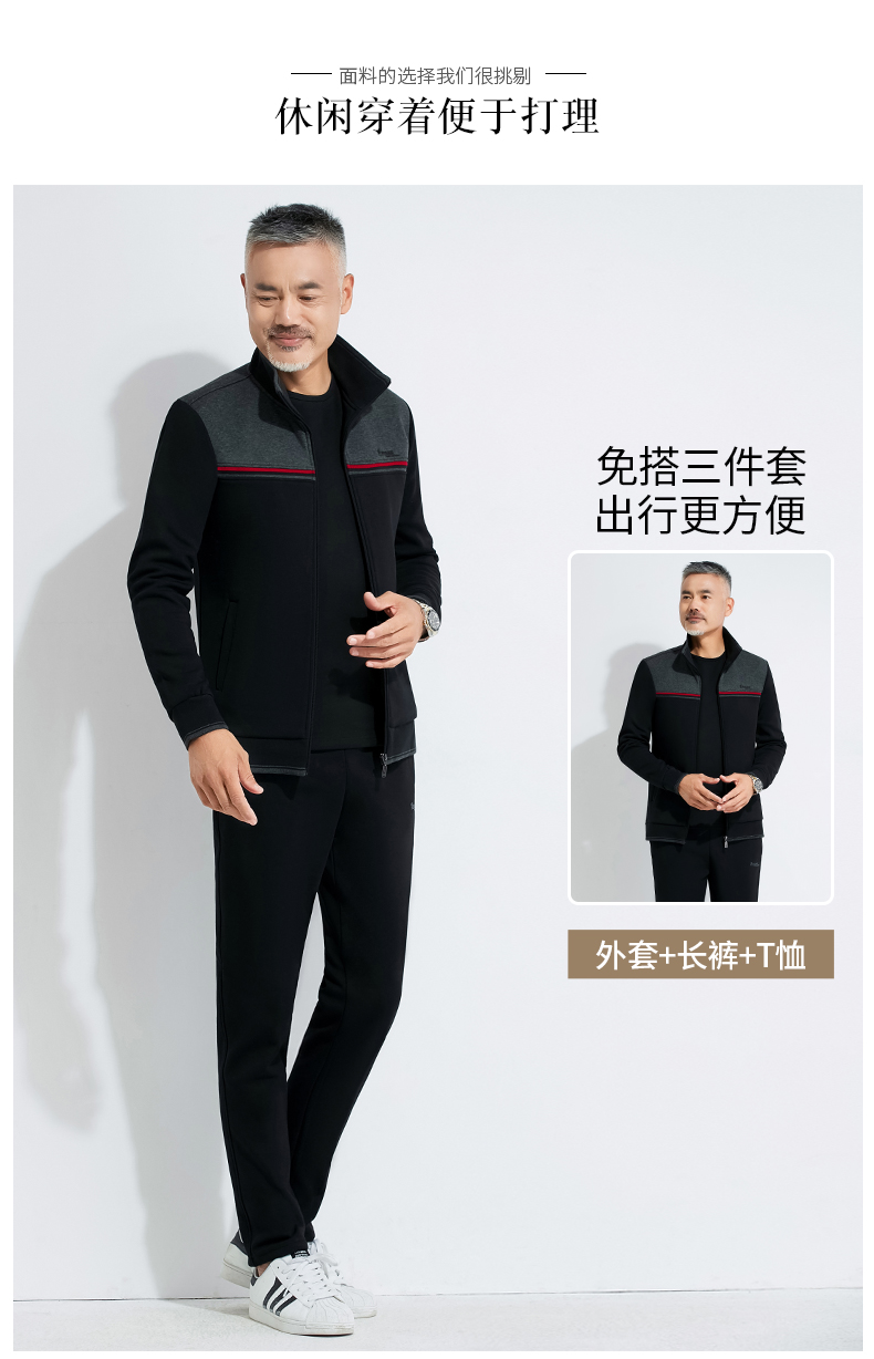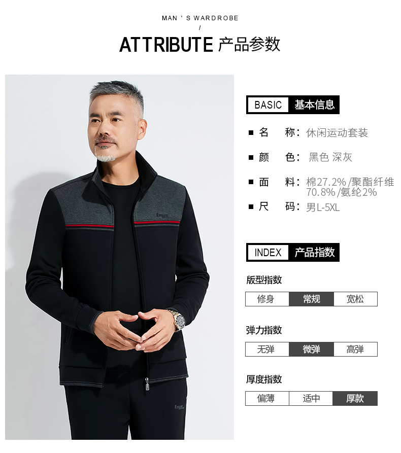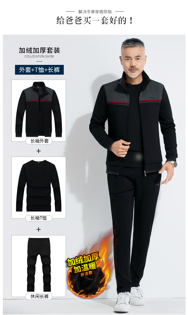SP687228-76302新款男士时尚休闲加绒加厚衬衫外套裤子三件套