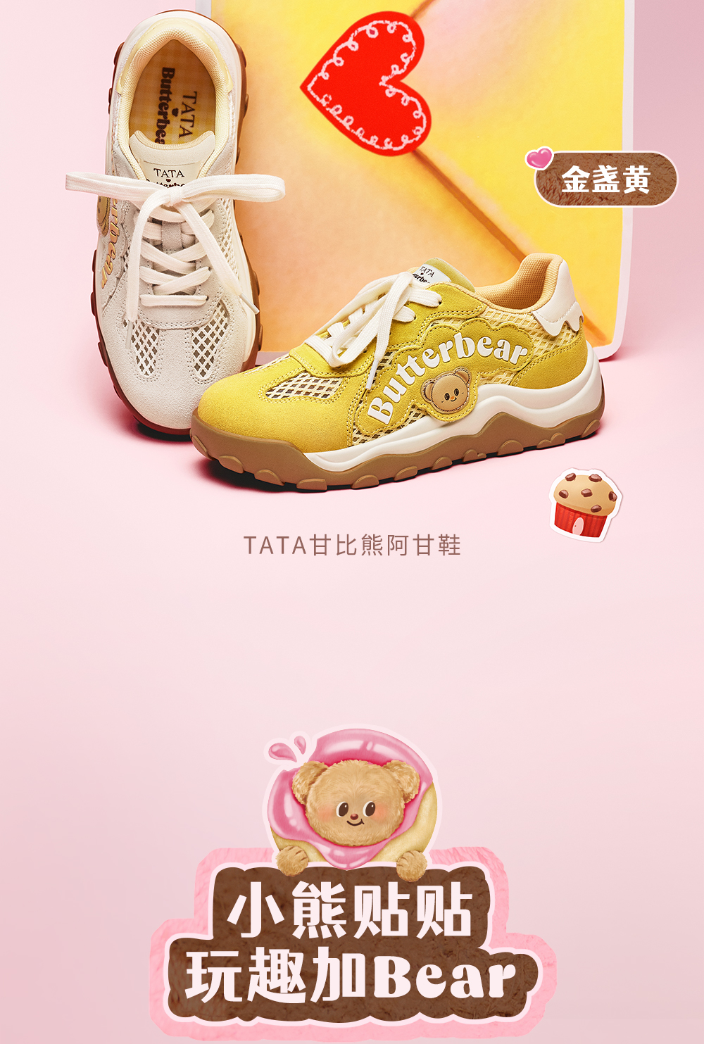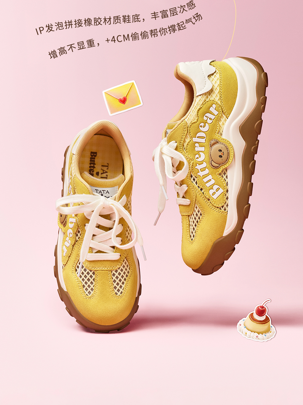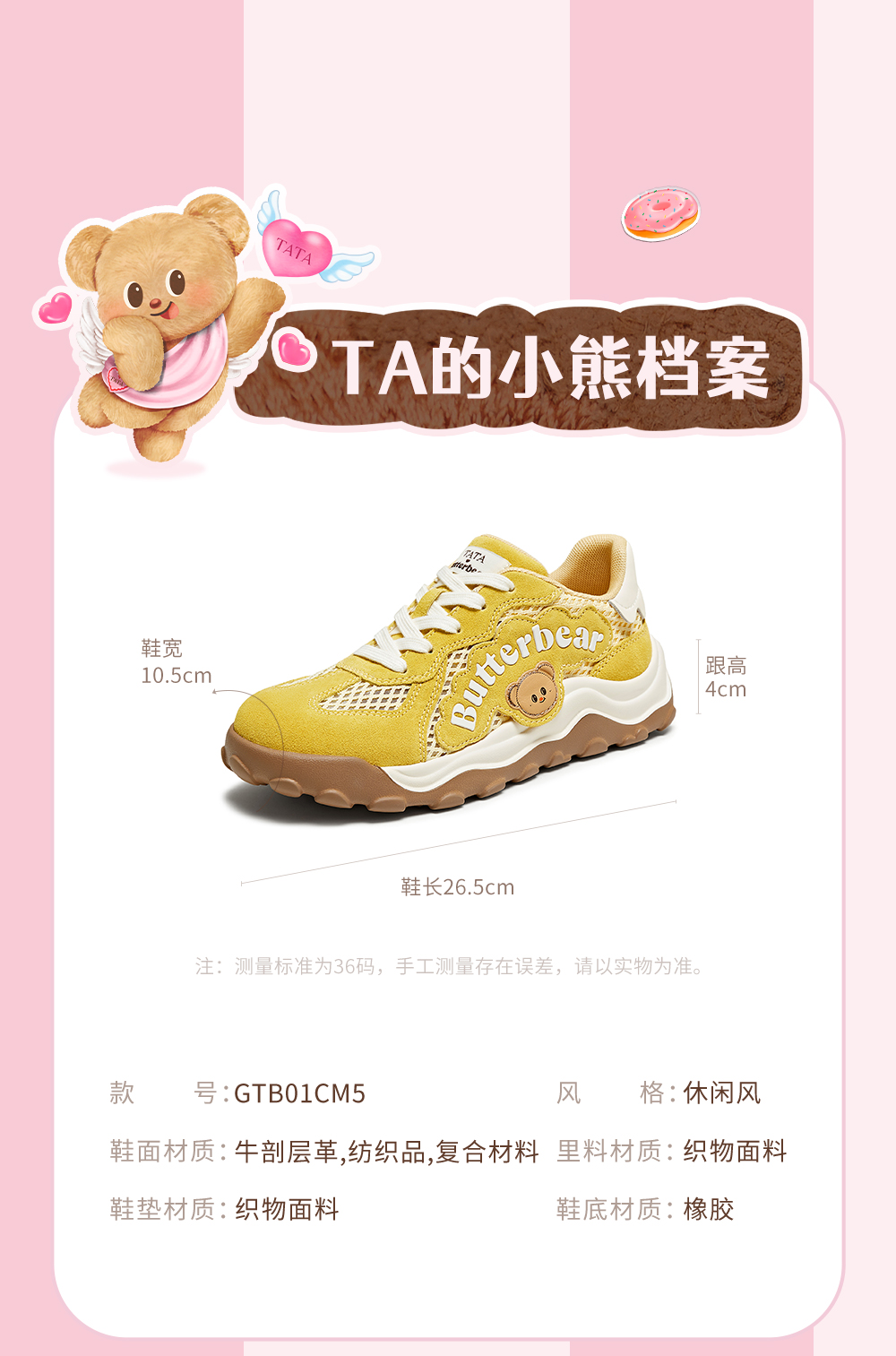 TATA他她黄油小熊联名休闲厚底板鞋女阿甘德训鞋2025新款