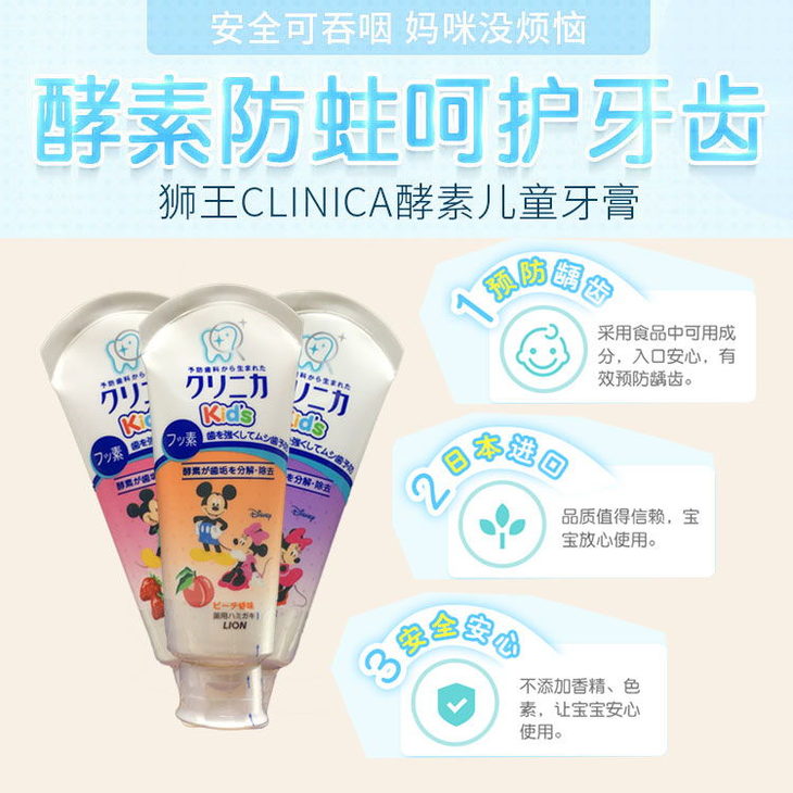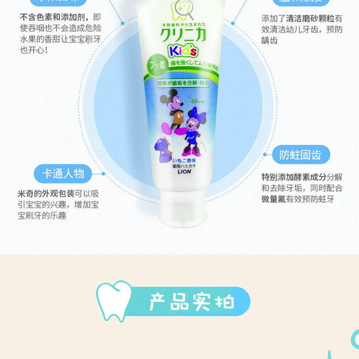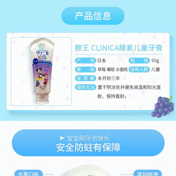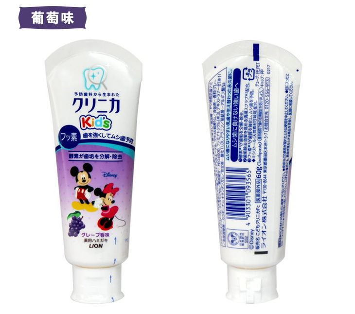 日本 狮王米奇防蛀儿童牙膏-60g(草莓味/葡萄味)