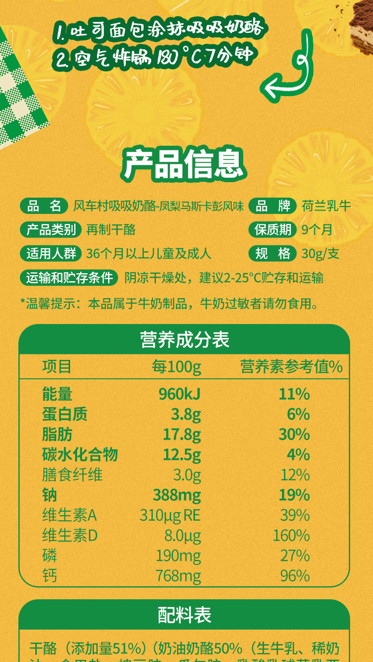 SY【限时秒杀】荷兰乳牛吸吸奶酪凤梨马斯卡彭风味30g*3支