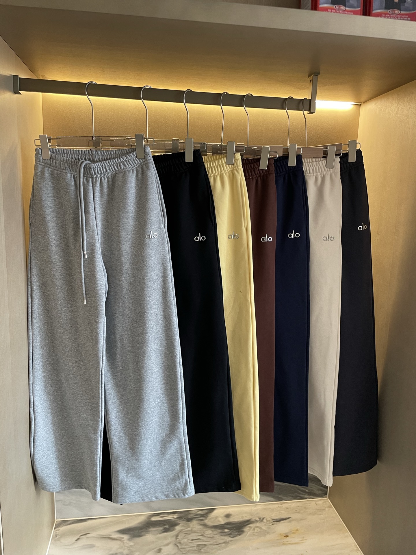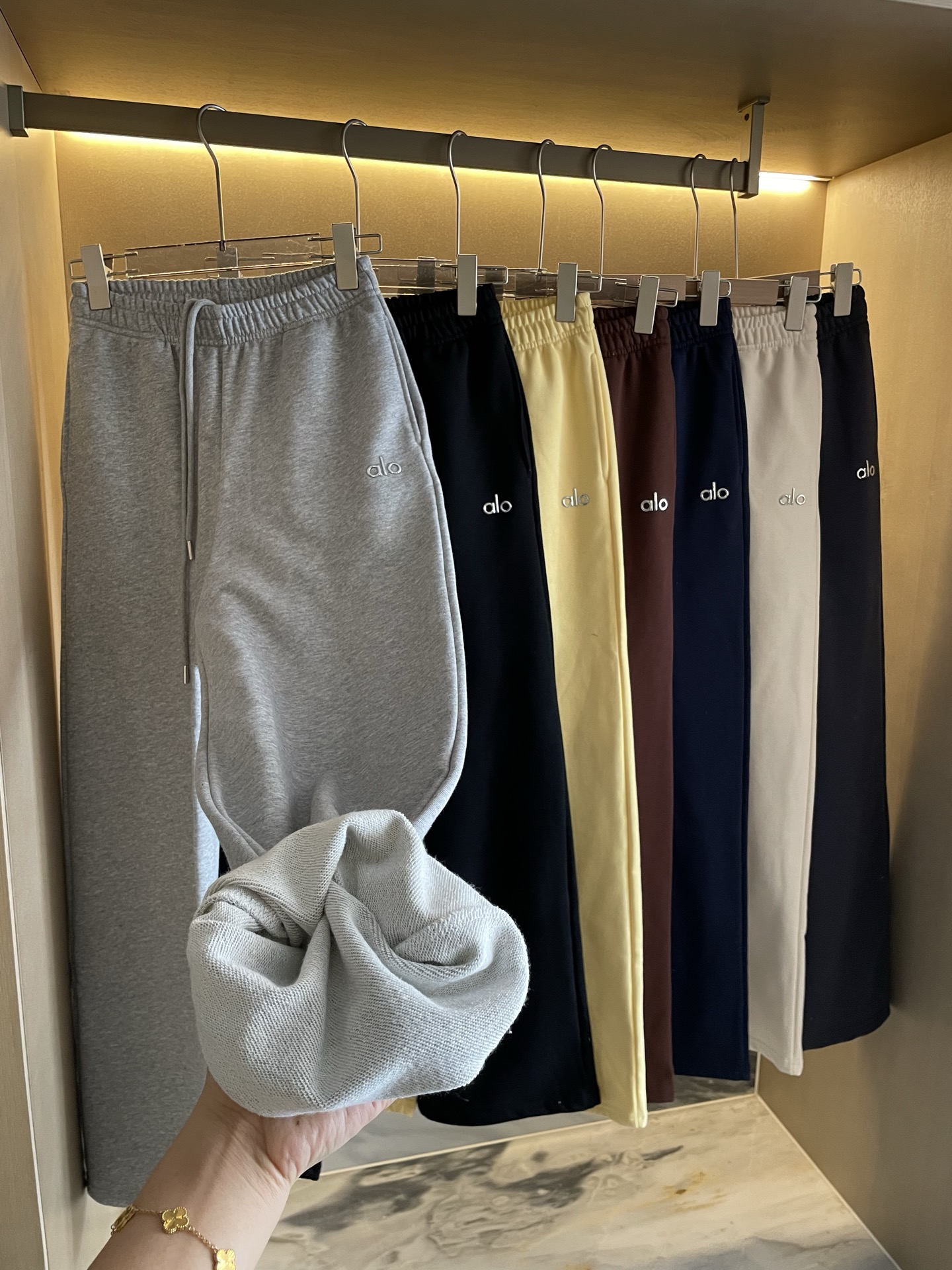秋冬季Alo字母立体标阔腿卫裤瑜伽休闲运动休闲宽松直筒长裤Alo发现了这条梦中情裤。高腰设计,提升腰线,直接打造九头身比例。直筒阔腿的剪裁,适配各种腿型,肉肉和不完美统统藏起来。