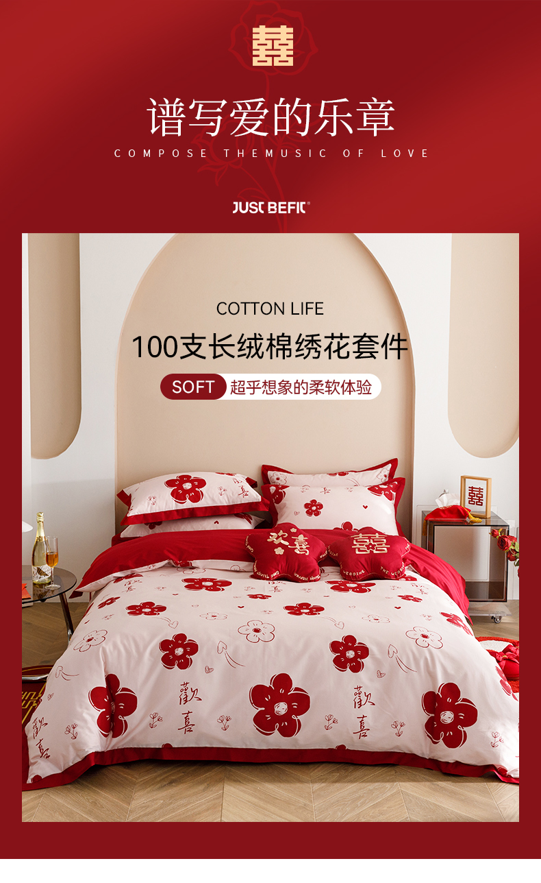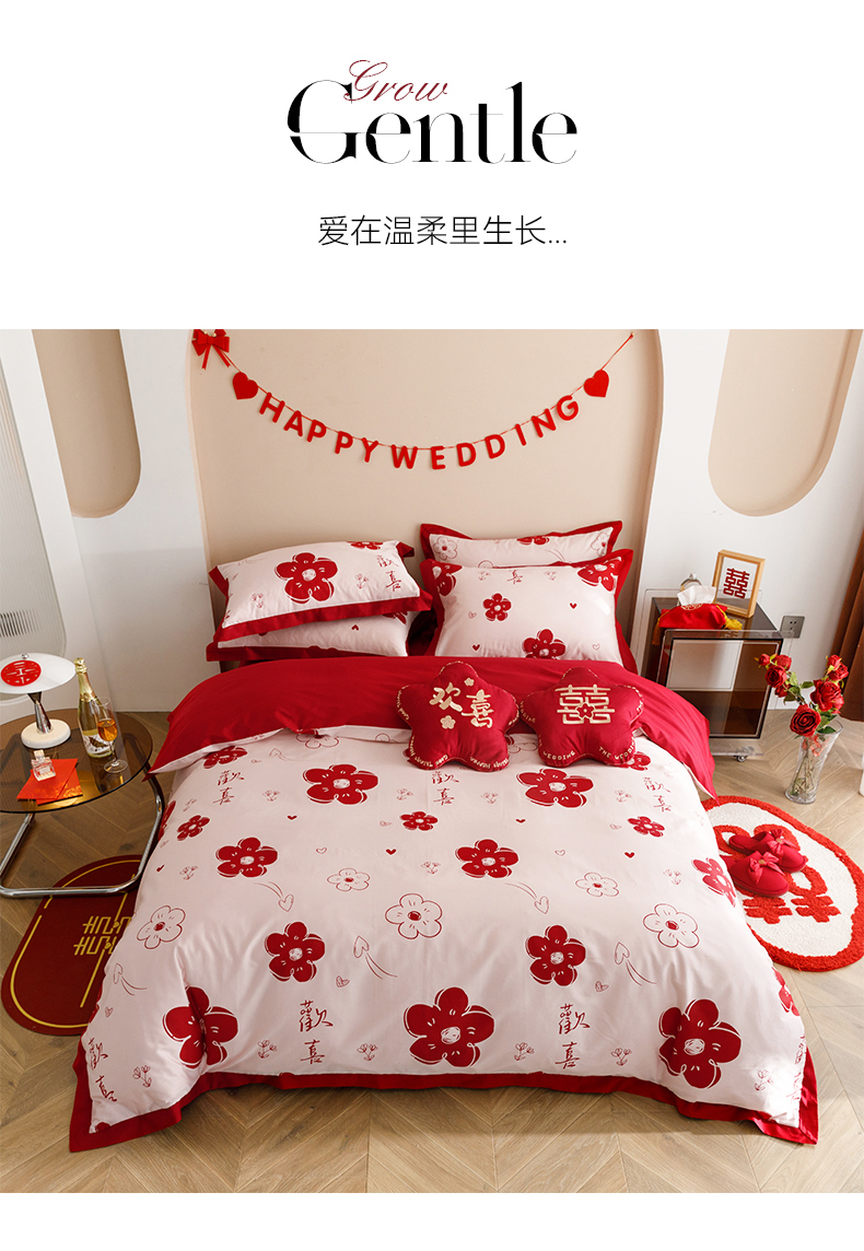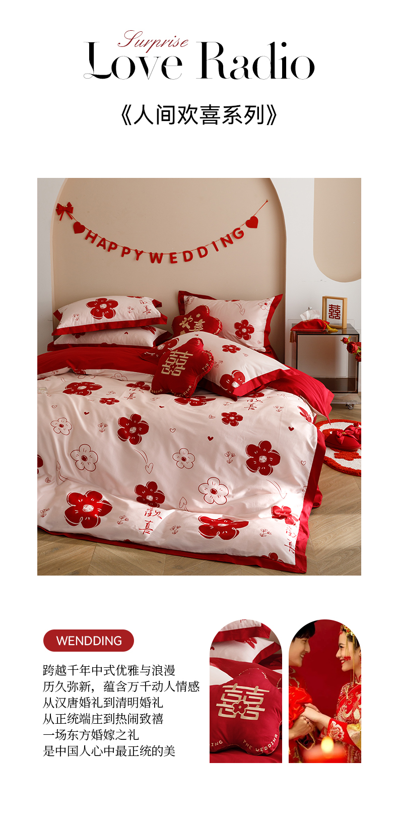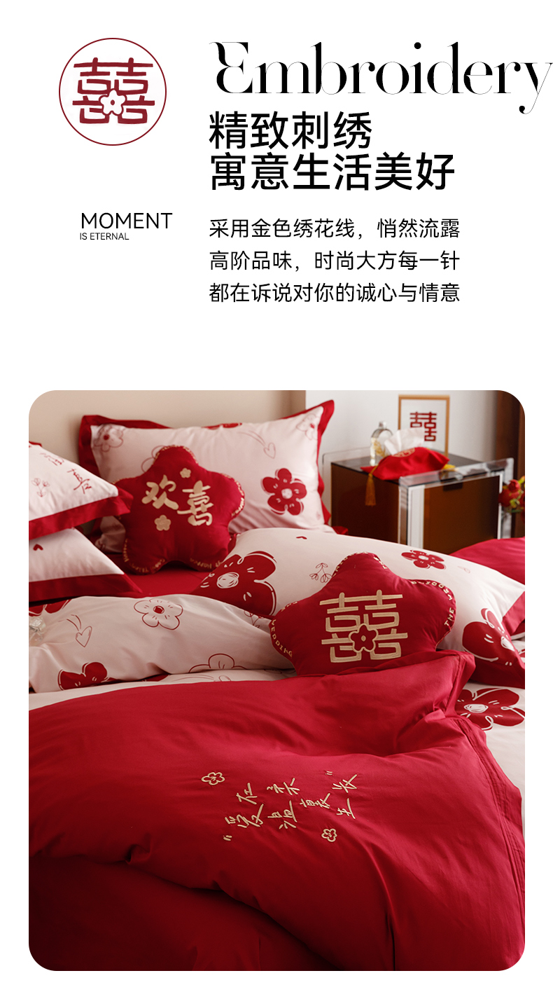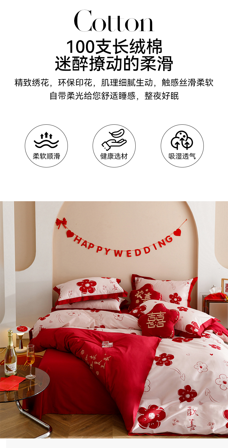 【品牌直发】加倍生活 100支长绒棉绣花婚庆四件套-人间欢喜