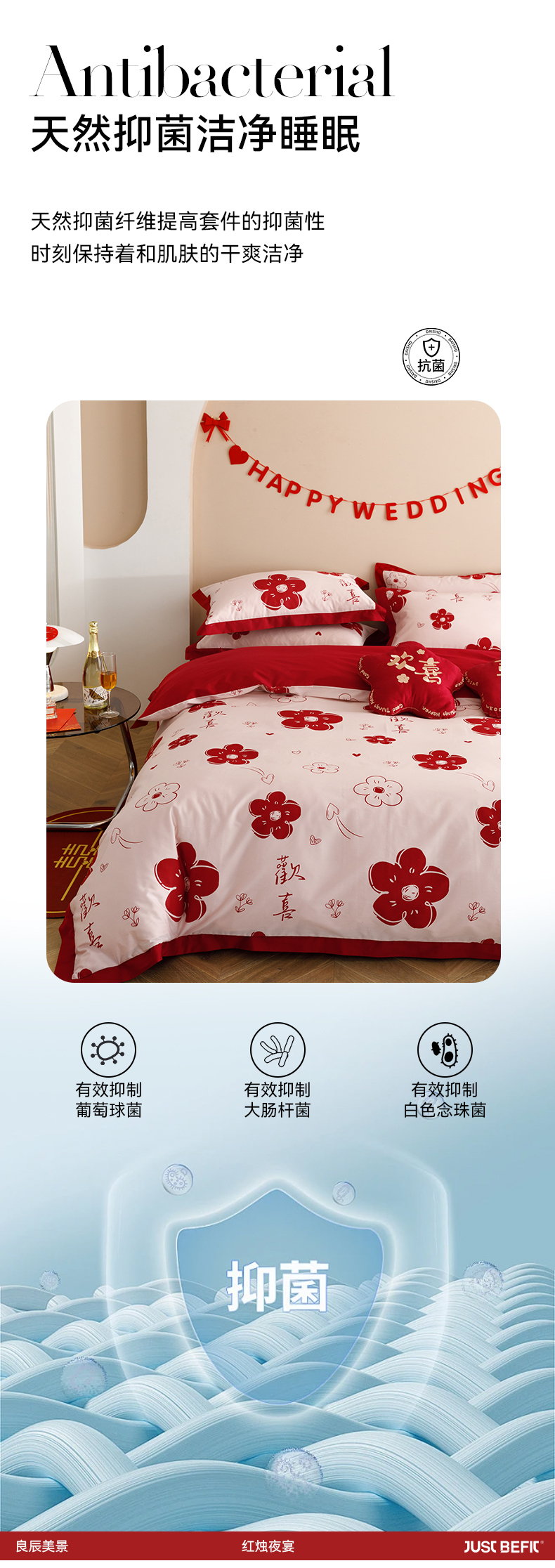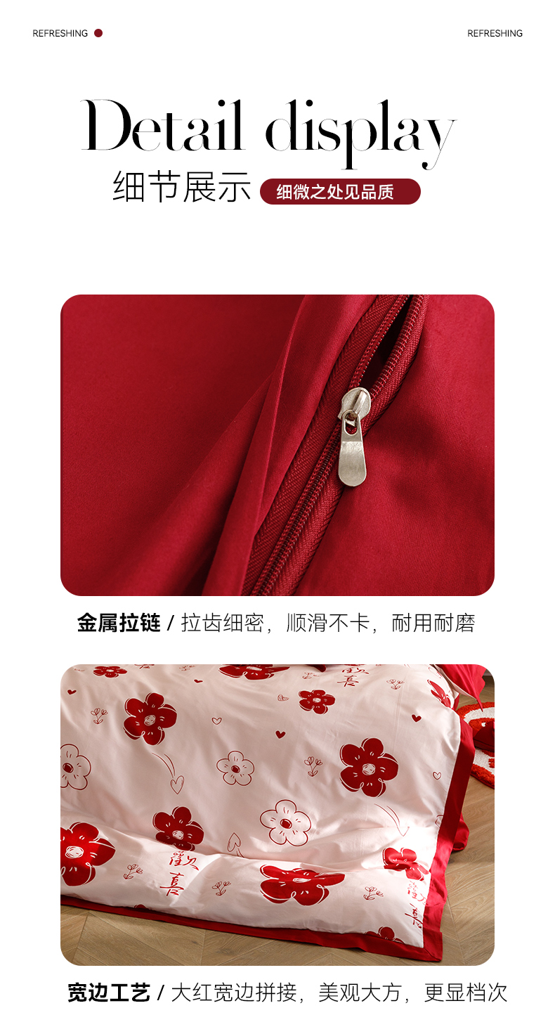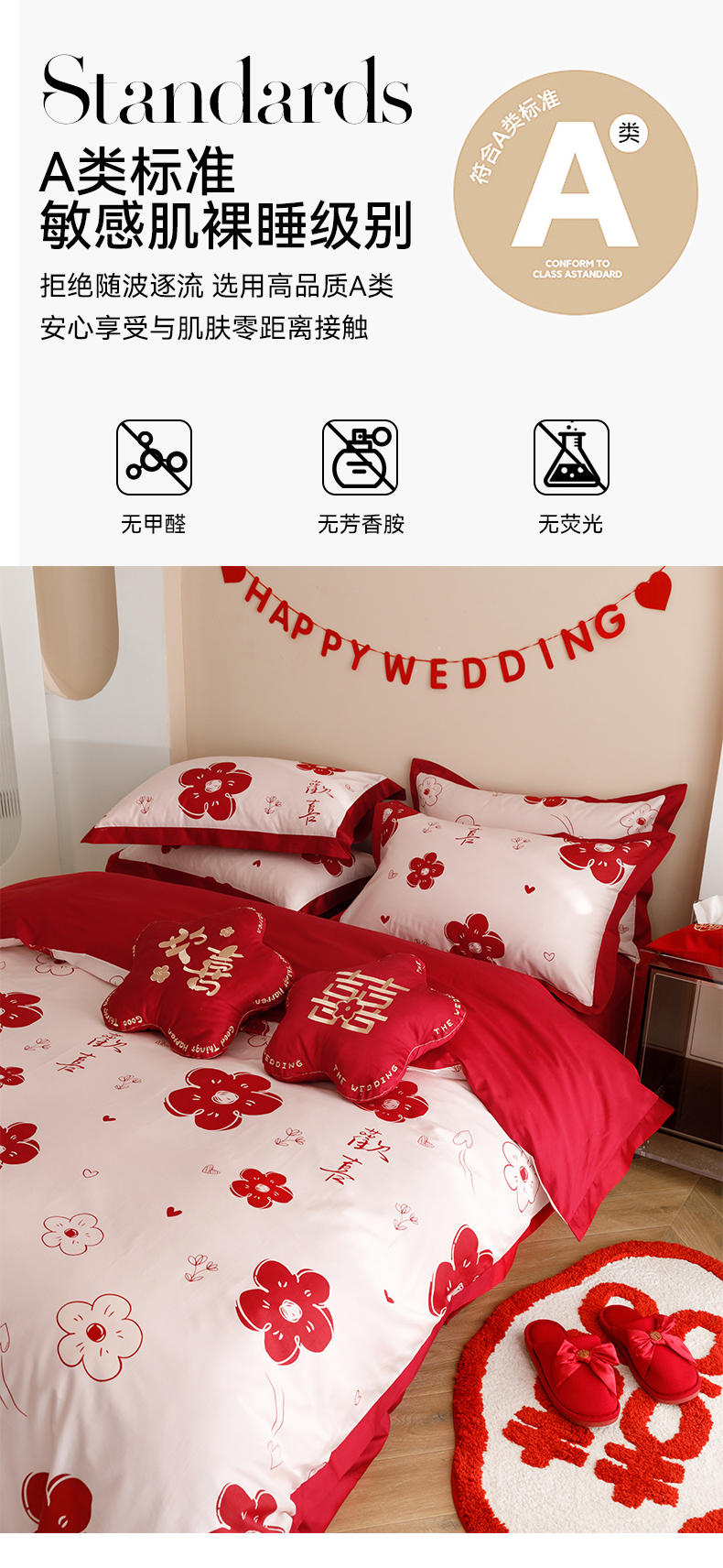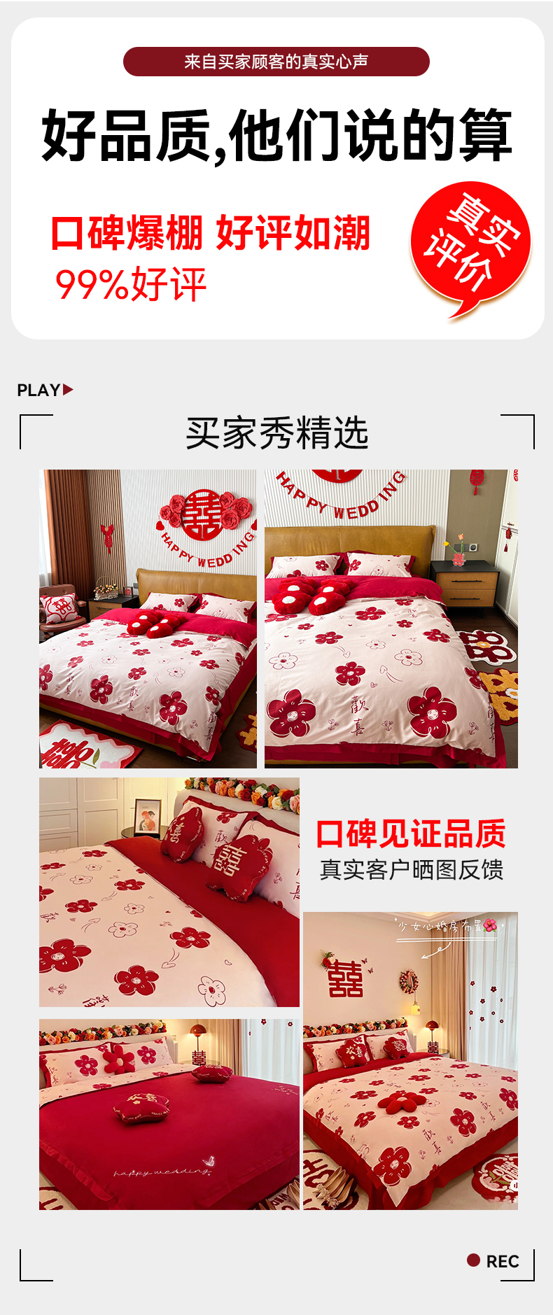 【品牌直发】加倍生活 100支长绒棉绣花婚庆四件套-人间欢喜