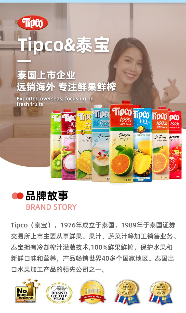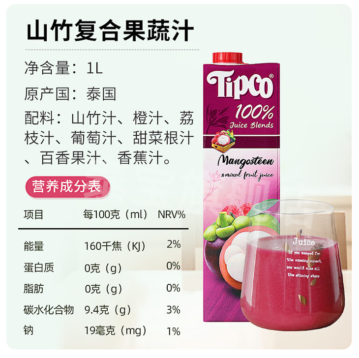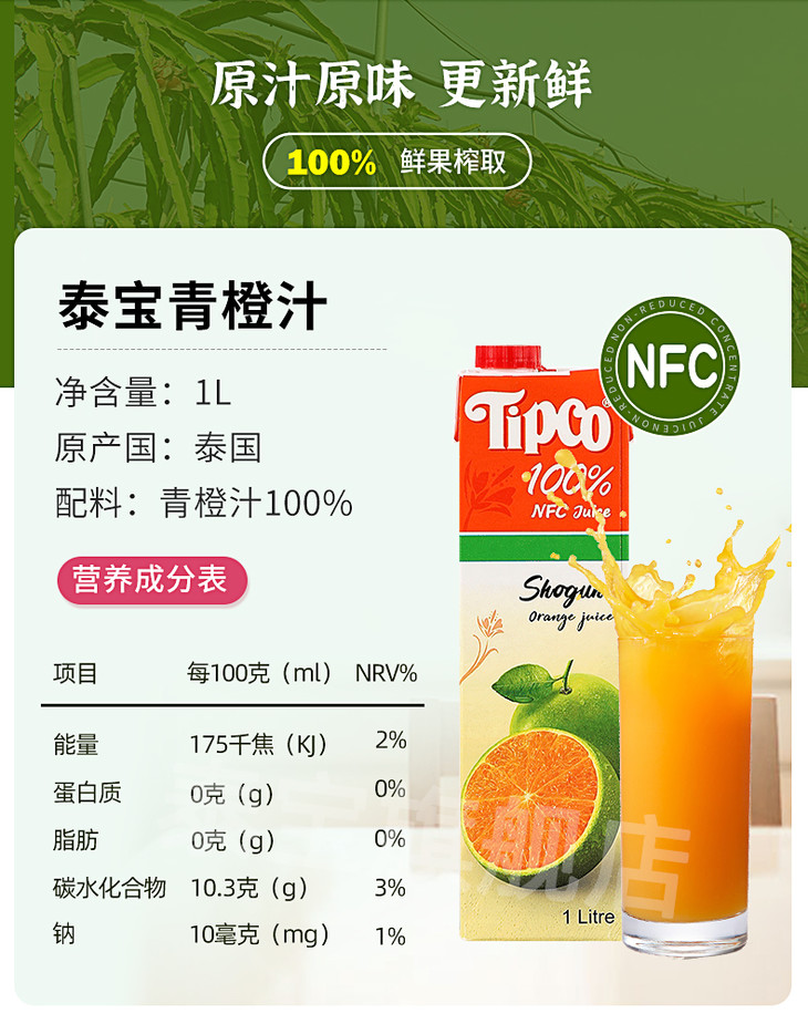 【9.29爱逛直播】1L【泰宝】橙汁/青橙汁/葡萄猕猴桃复合果汁/葡萄山竹复合果汁