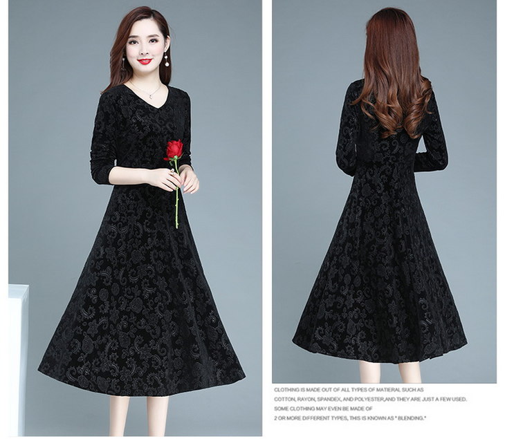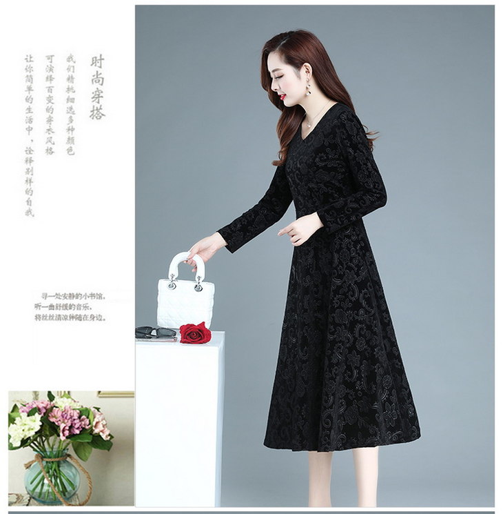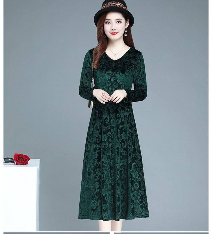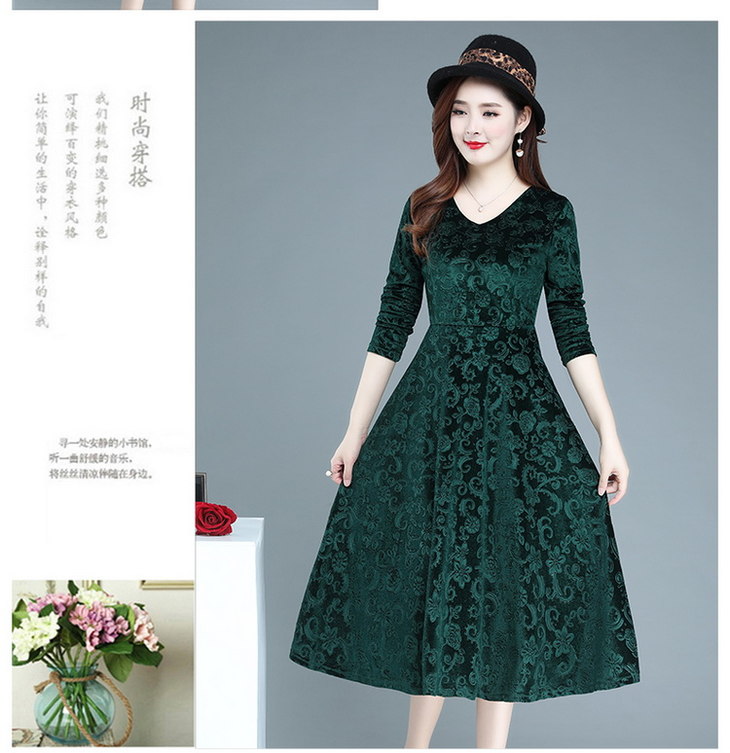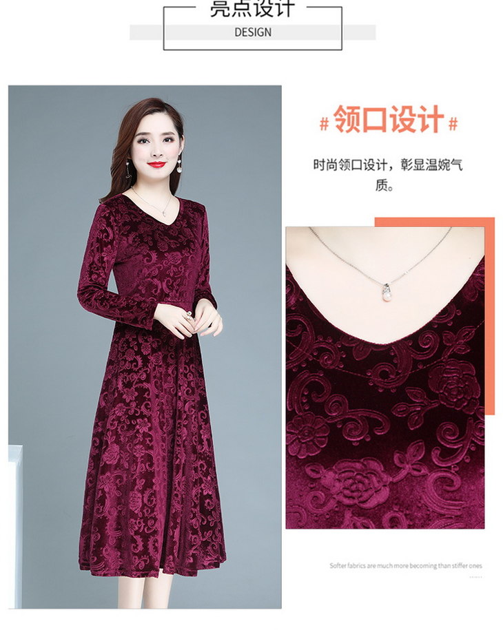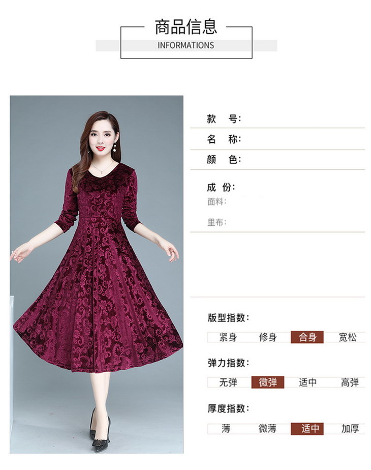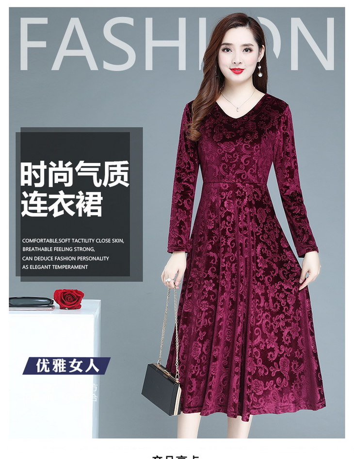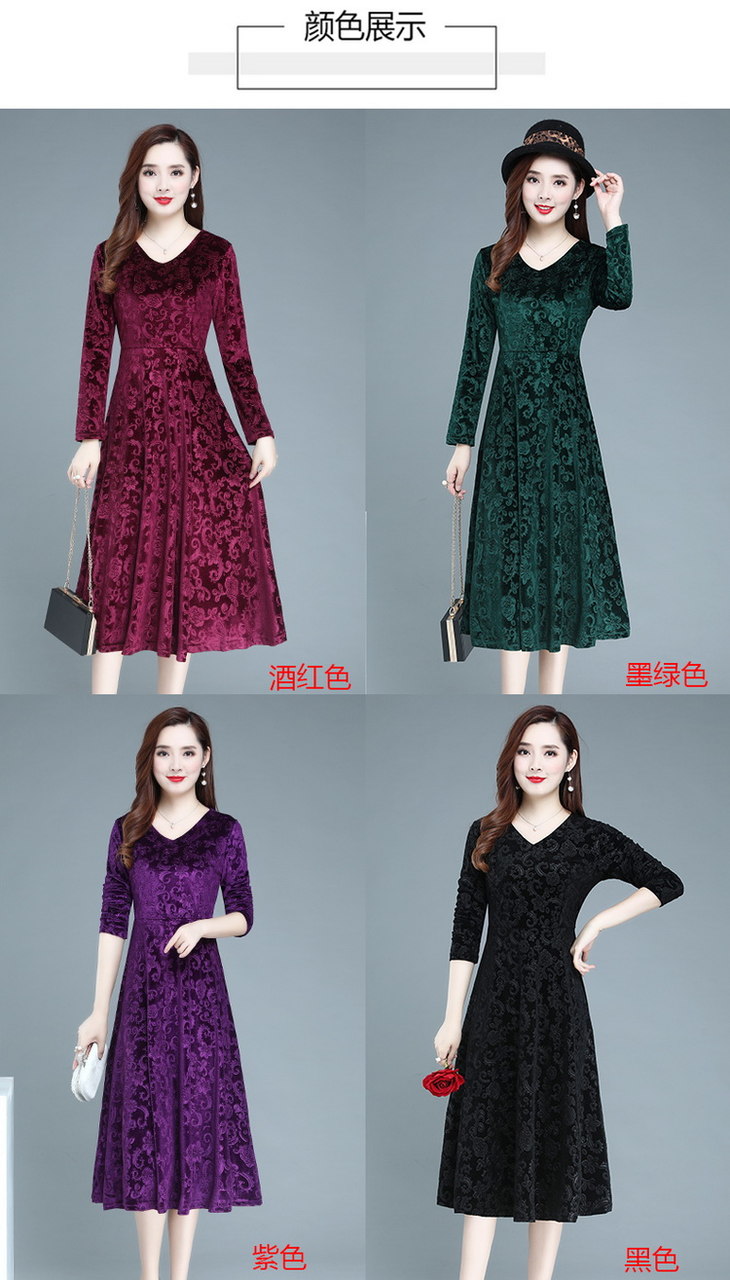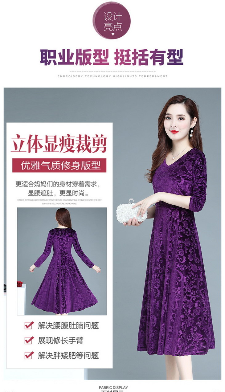 NP 纯色大码气质妈妈装金丝绒连衣裙