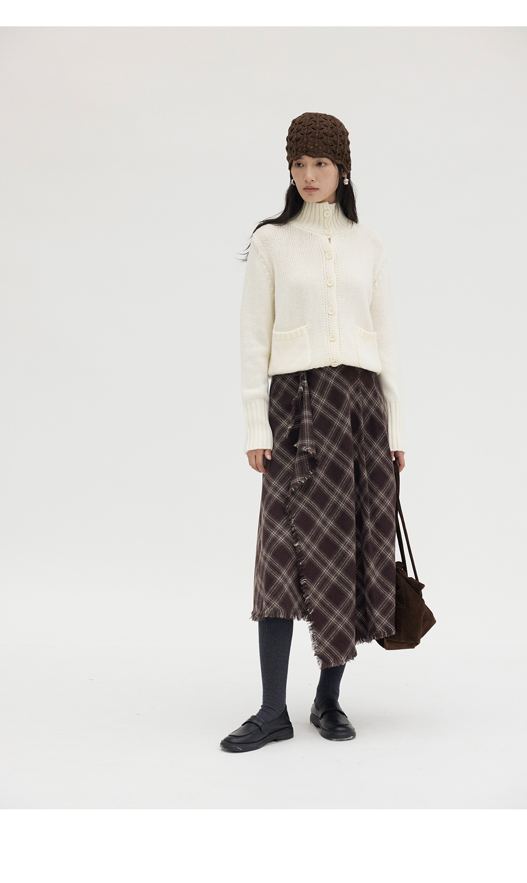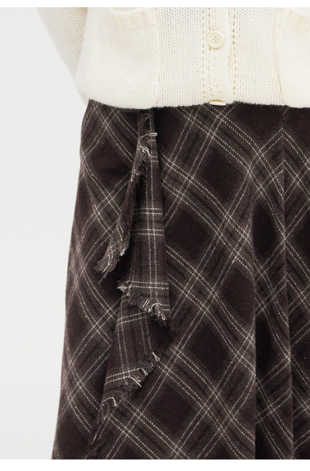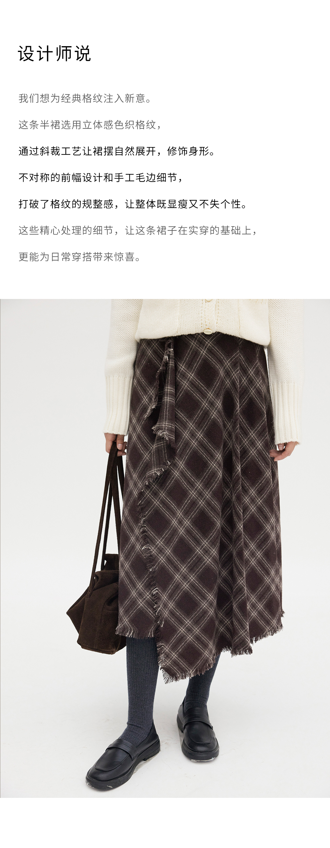 HeyDress格纹毛边不对称半裙