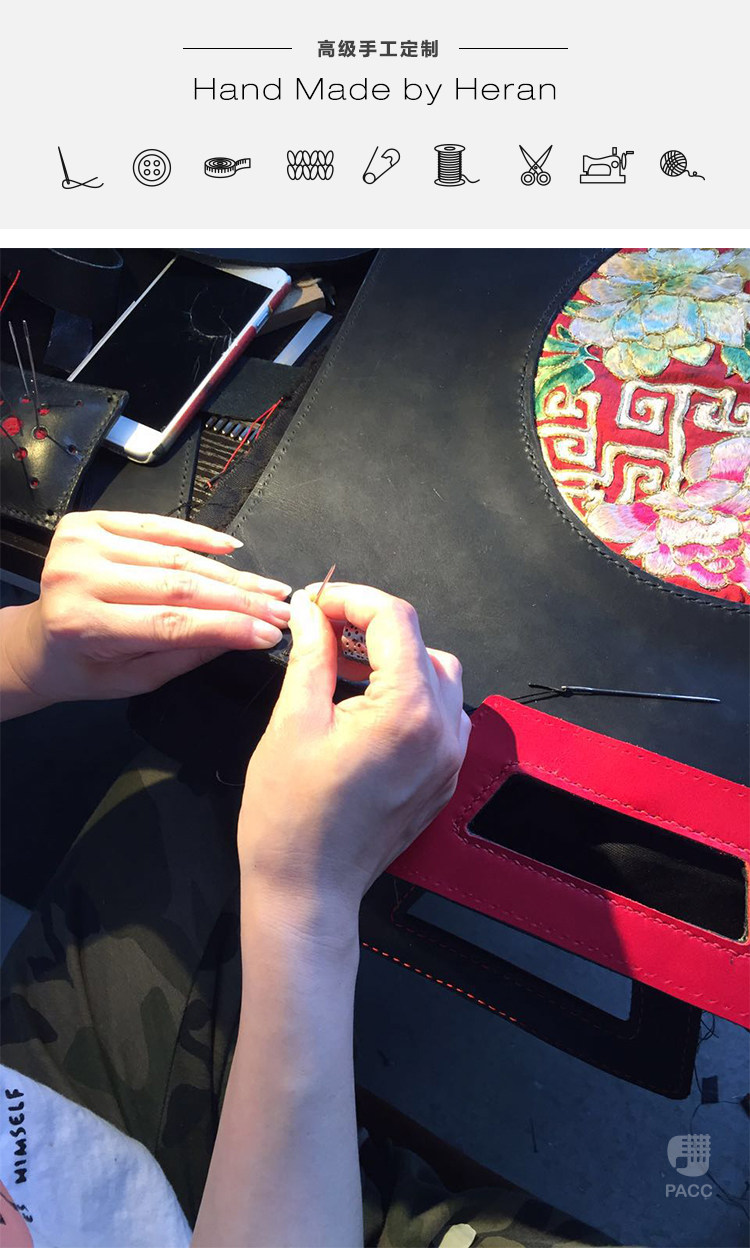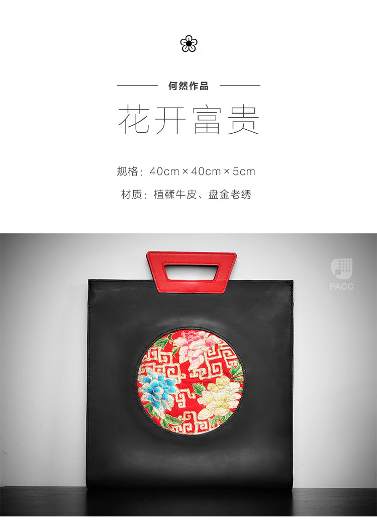艺术家独立设计师何然高级定制刺绣花开牛皮手工手包女新中式文艺