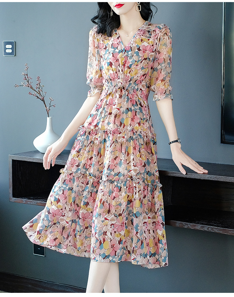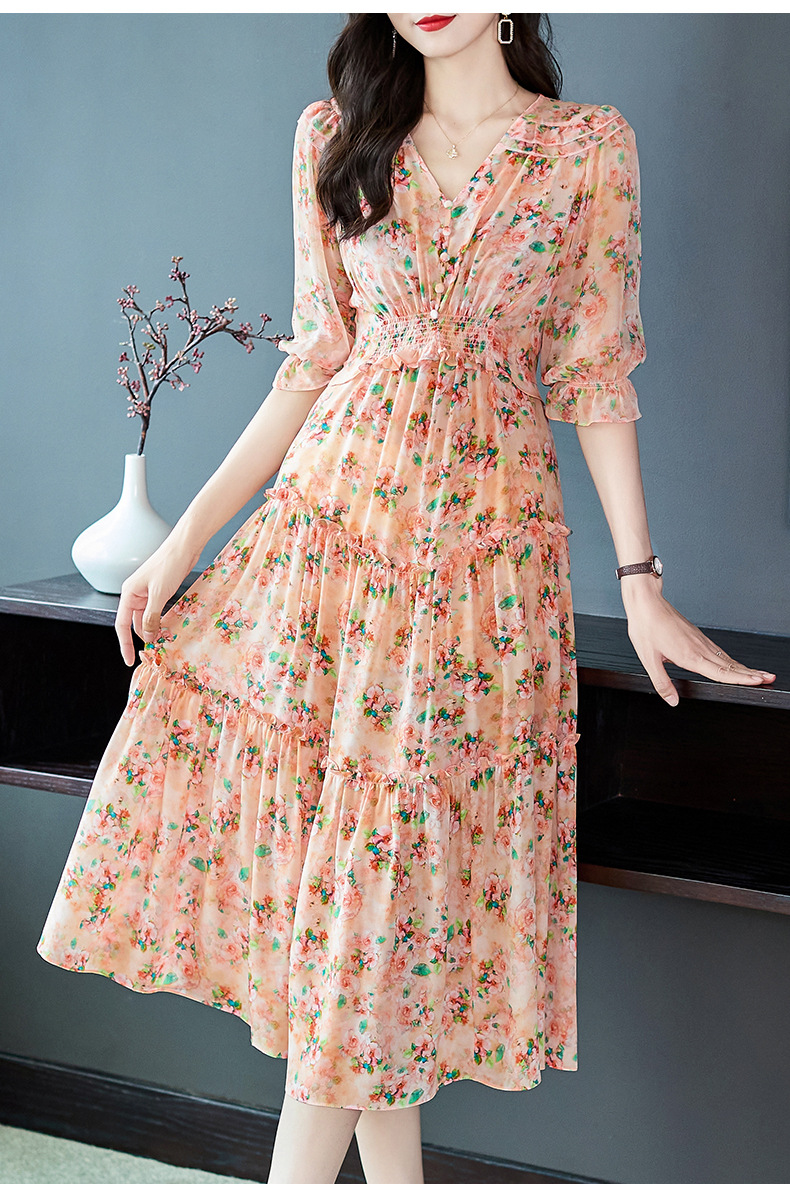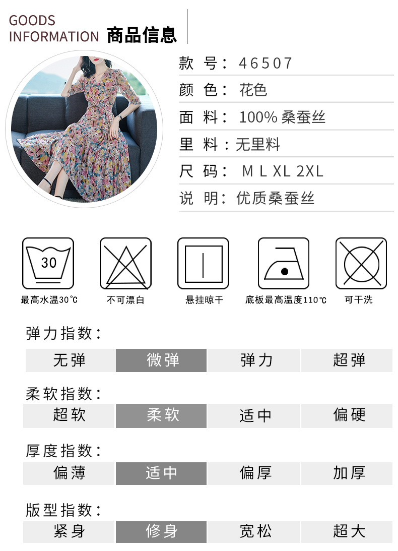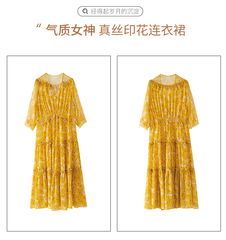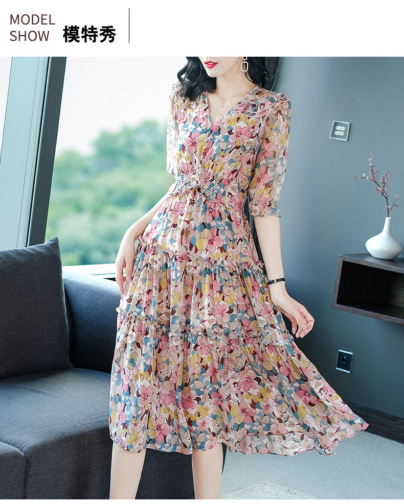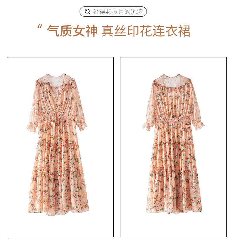 WWM-高级感女装100%桑蚕丝碎花长裙高腰真丝连衣裙夏季裙子46507
