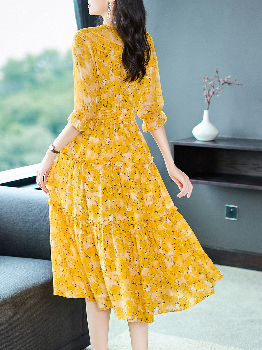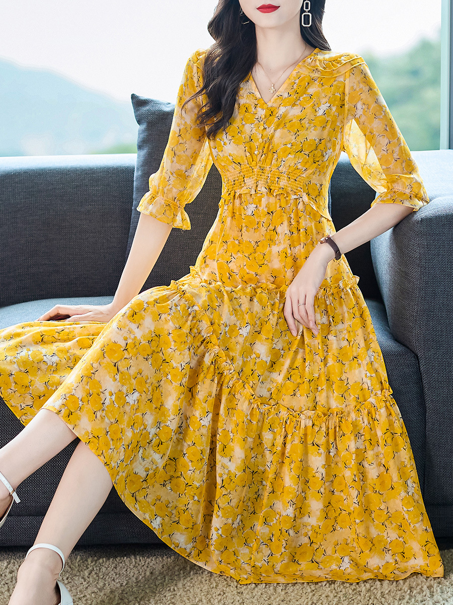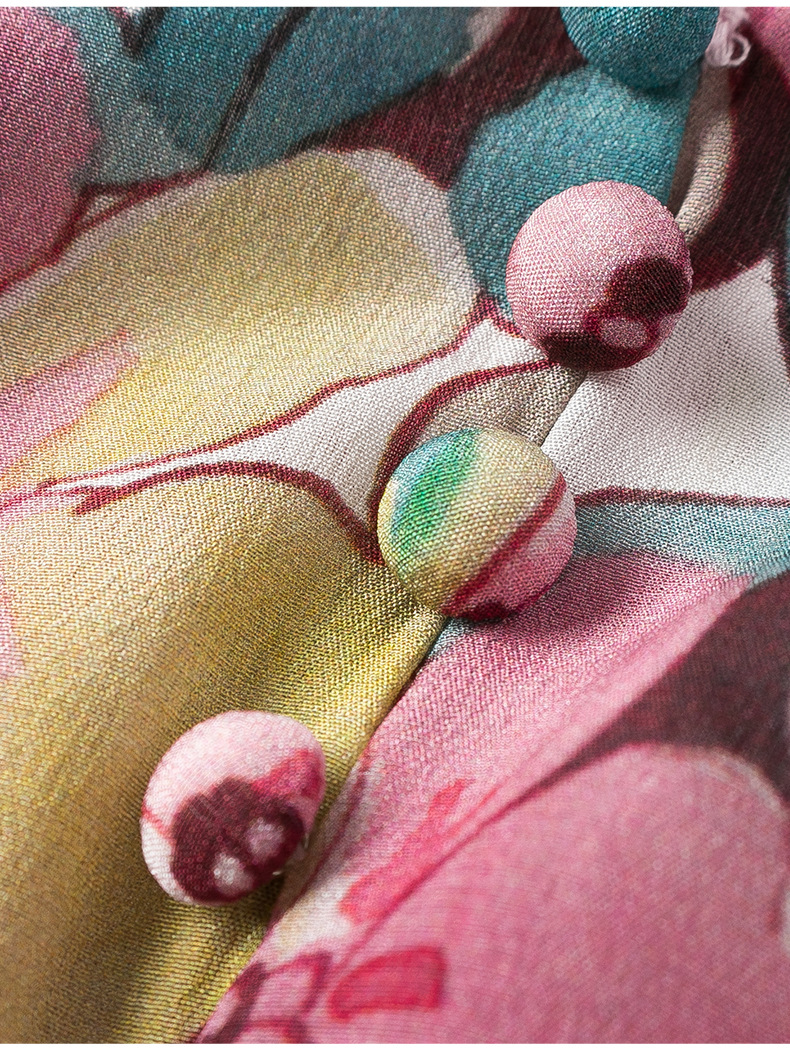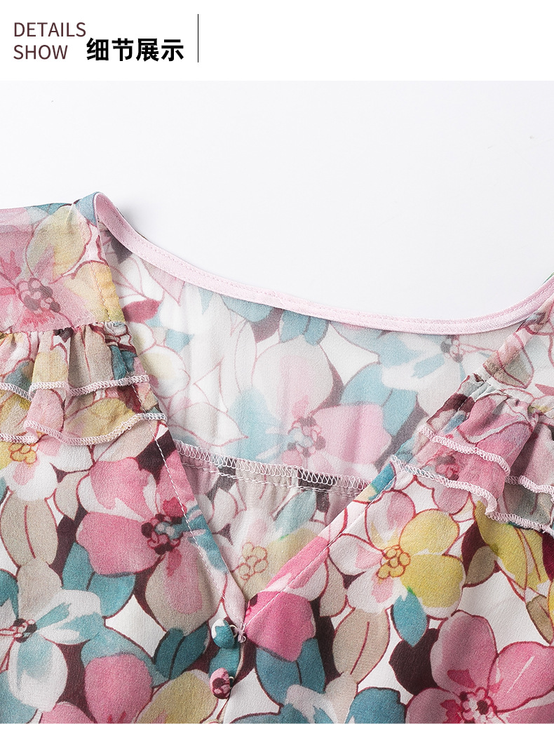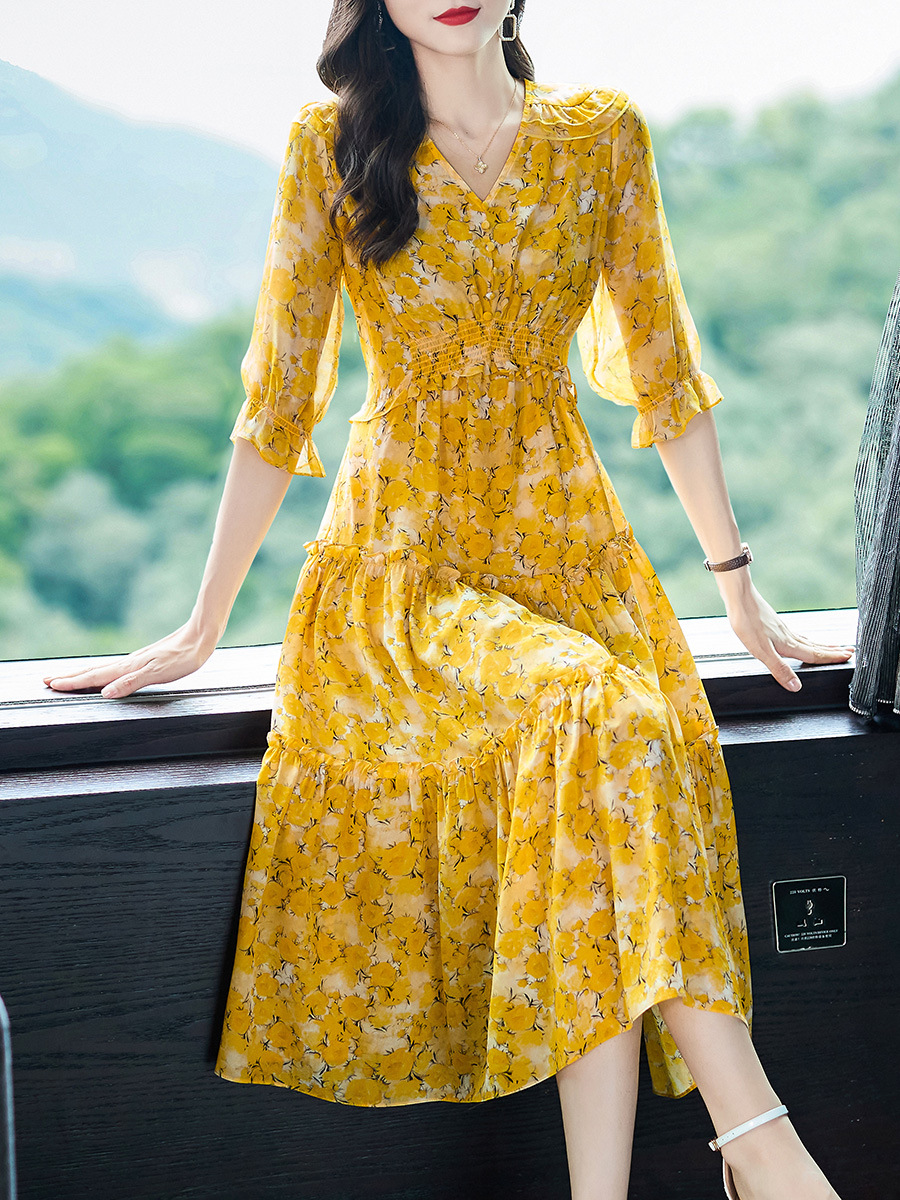 WWM-高级感女装100%桑蚕丝碎花长裙高腰真丝连衣裙夏季裙子46507