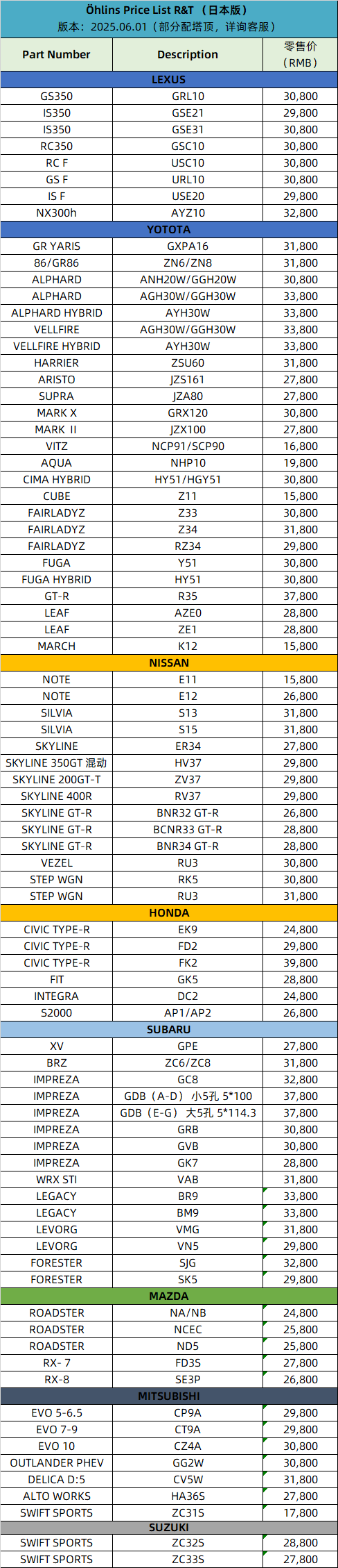 瑞典 OHLINS 避震/悬挂套件,瑞典/日本进口,总代发货/售后,CLAUTO x GUSTO中国总代理