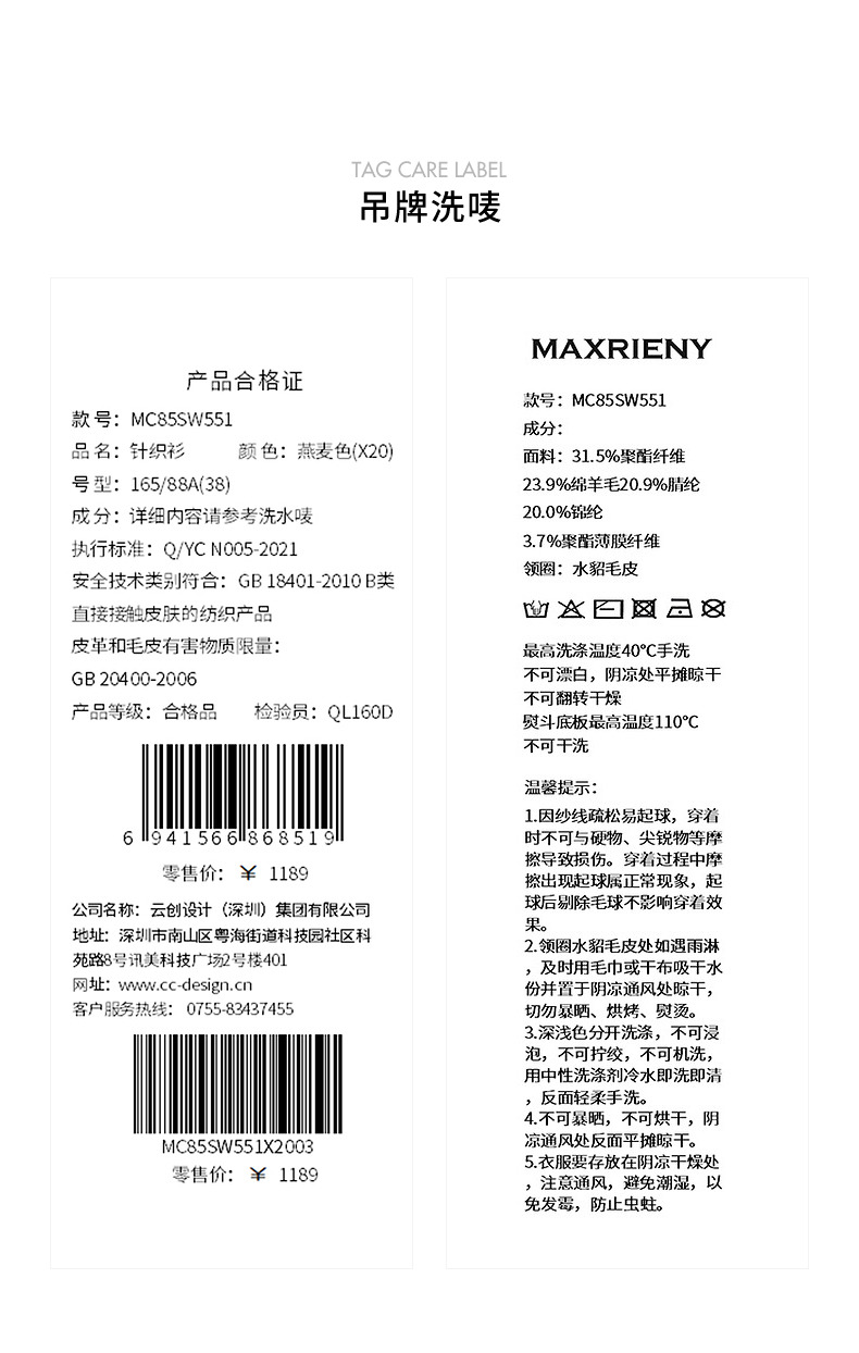 【冬日逸境-商场同款】MAXRIENY精致水貂毛领套头针织修身上衣女(货号:MC85SW551)