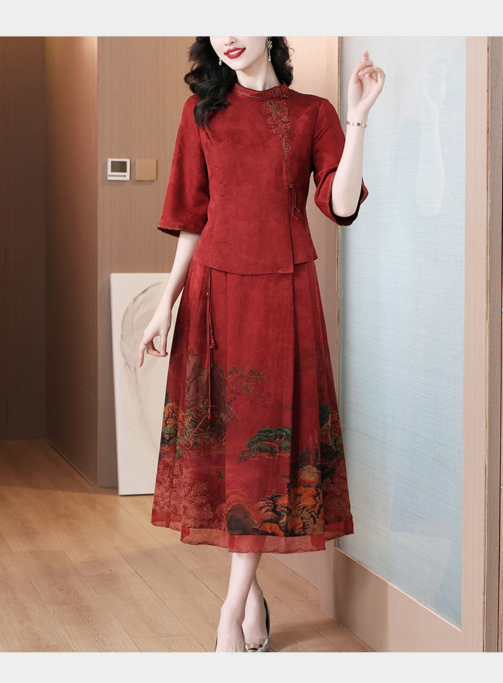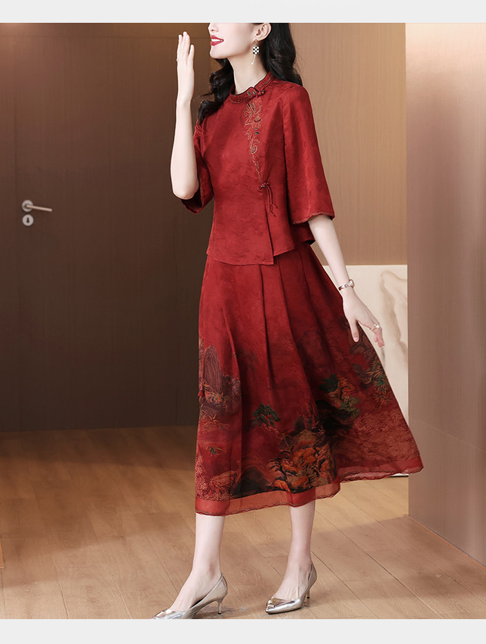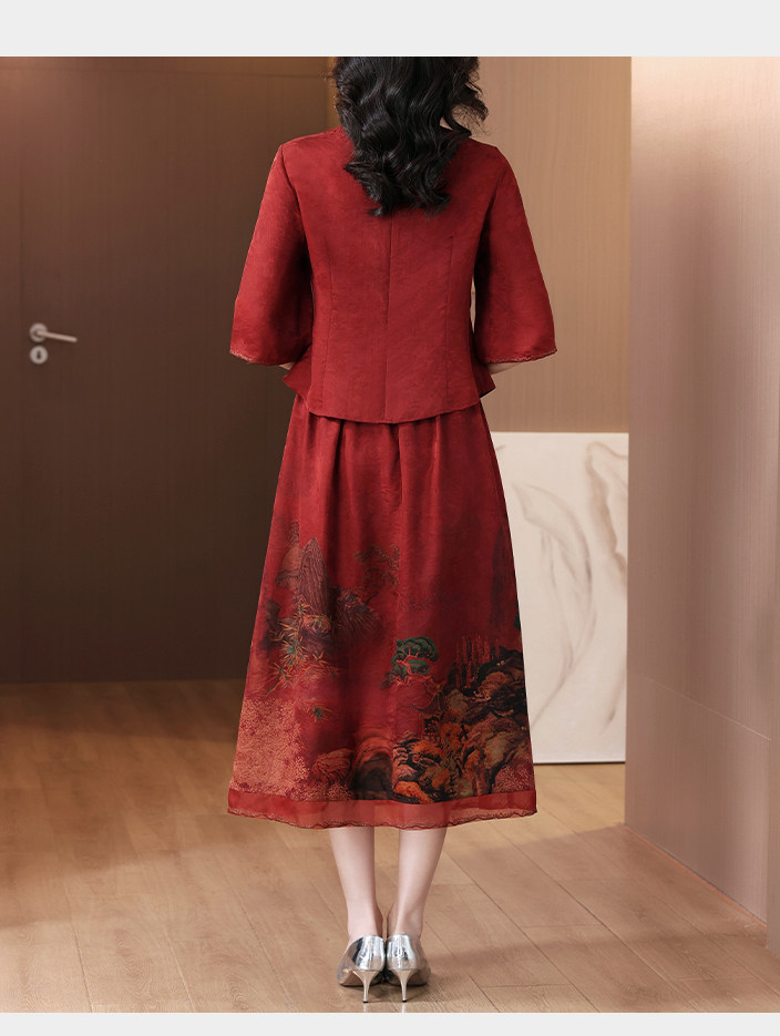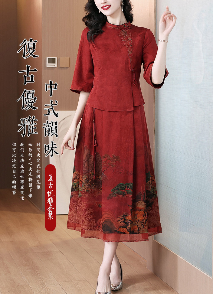 2025香云套装新中式上衣妈妈婚宴礼服高级感两件套裙装