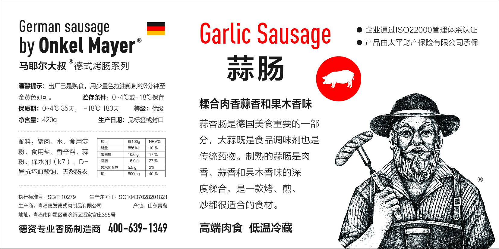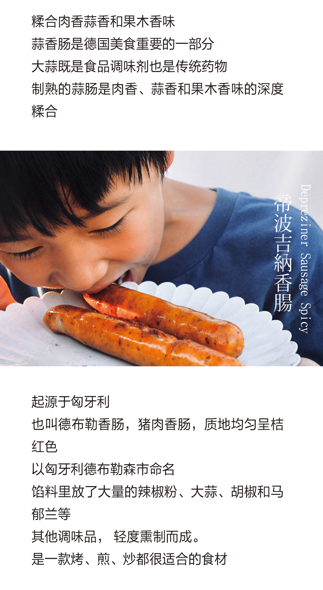 蒜香肠是德国美食重要的一部分。大蒜既是食品调味剂也是传统药物。制熟的蒜肠是肉香、蒜香和果木香味的深度糅合,是一款烤、煎、炒都很适合的食材。